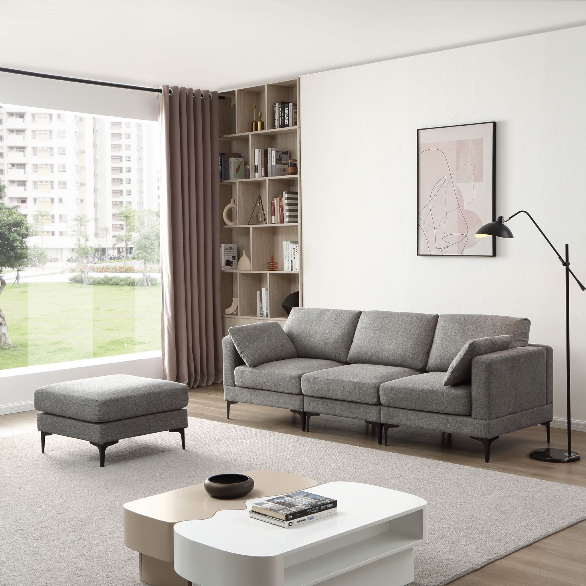 ANEK 3 Seater Dark Grey Fabric Sofa with Ottoman