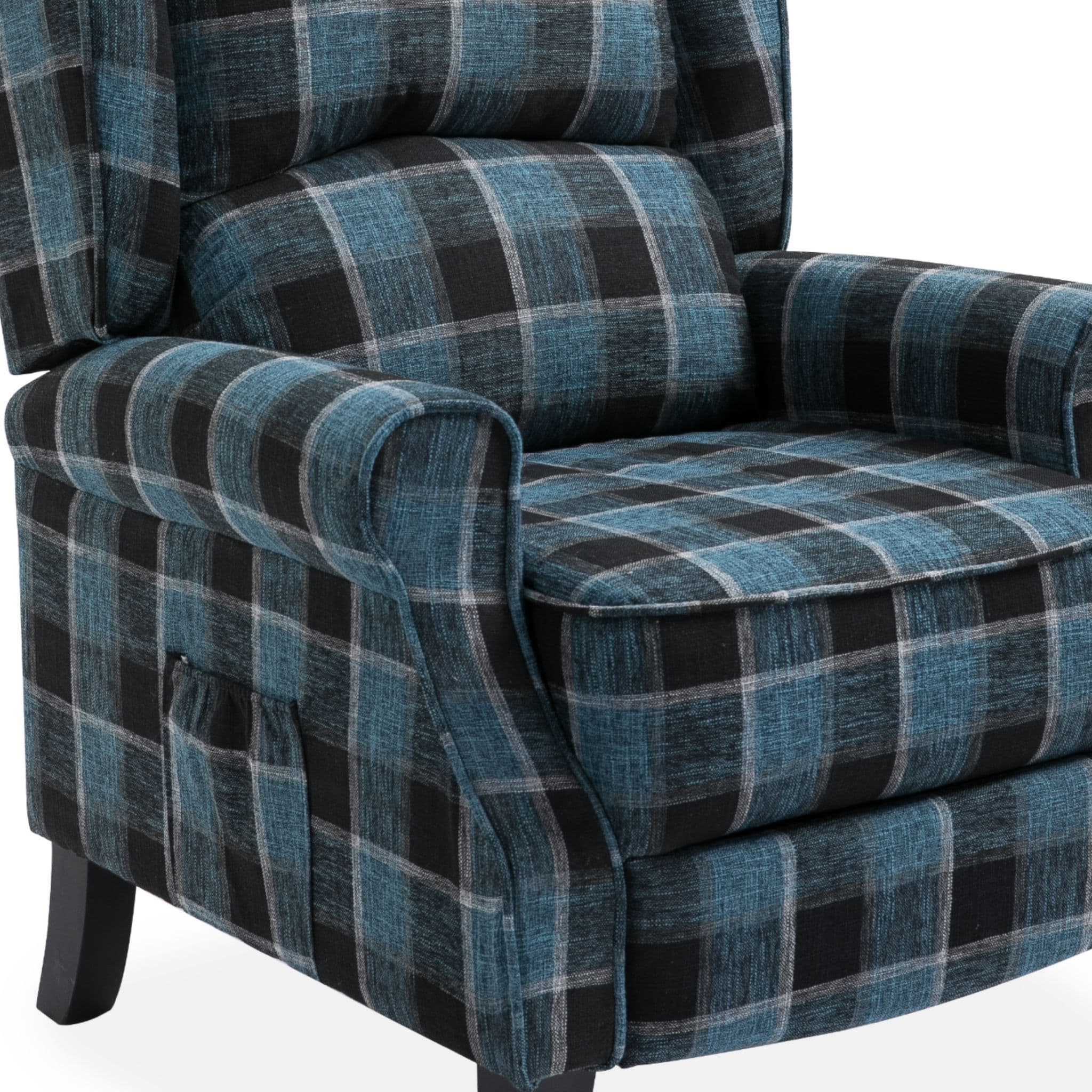 Blue Checked Fab Recliner Armchair, with wood feet