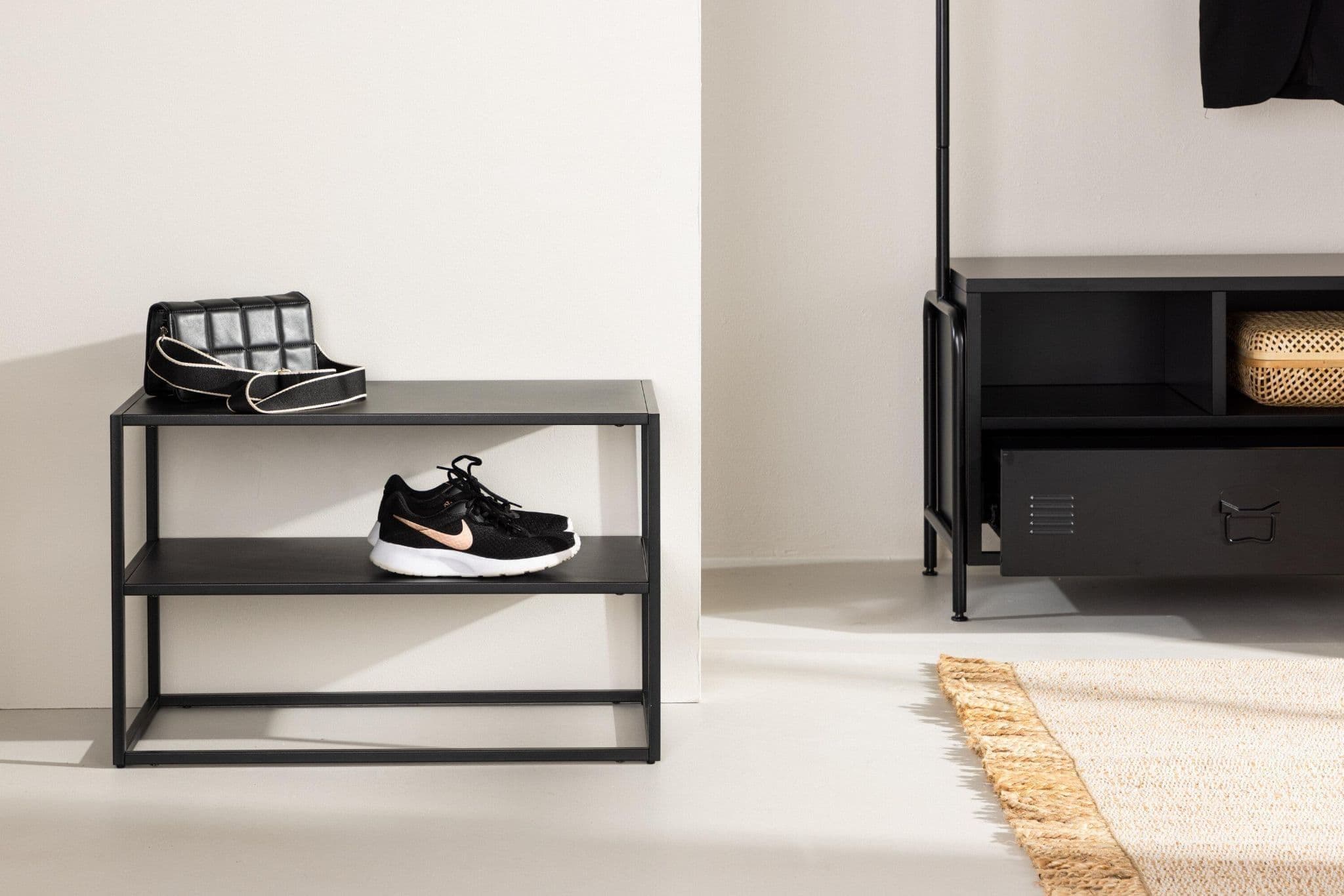 Our wonderful Scandinavian-style side table from the Curitiba series! If you're looking for the perfect balance between style and practical storage, you've come to the right place. This powder-coated side table in black metal is the ultimate solution. With its rectangular design and open shelving, it not only creates a modern impression but also provides space for sleek storage.Curitiba is both elegant and versatile. The low design and the open shelf under the top surface give you the opportunity to display your favorite items, books, and decorative objects. Keep everything within reach while maintaining a stylish and well-organized atmosphere. Moreover, the minimalist design seamlessly blends into any room in your trendy home. Whether it's the living room, bedroom, or office, this side table will elevate the aesthetics of the room.Create an inviting atmosphere in your home with this side table that combines functionality with Scandinavian elegance in the best possible way. Whether you fill the shelves with your personal favorites or use it as an elegant spot for lighting, this side table will make you feel like you've found the perfect balance between style and utility. Welcome to a more organized and beautiful home!