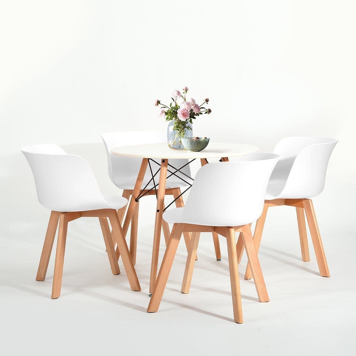 Universal, timeless, and very comfortable this chair suits private or public settings alike. Its welcoming, ergonomic form provides optimal support. The shell is polypropylene and the legs are solid wood. Designed with simplicity to work around dining tables, conference tables, offices, or canteens.