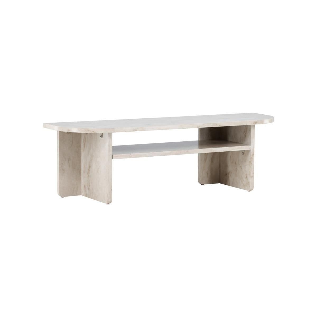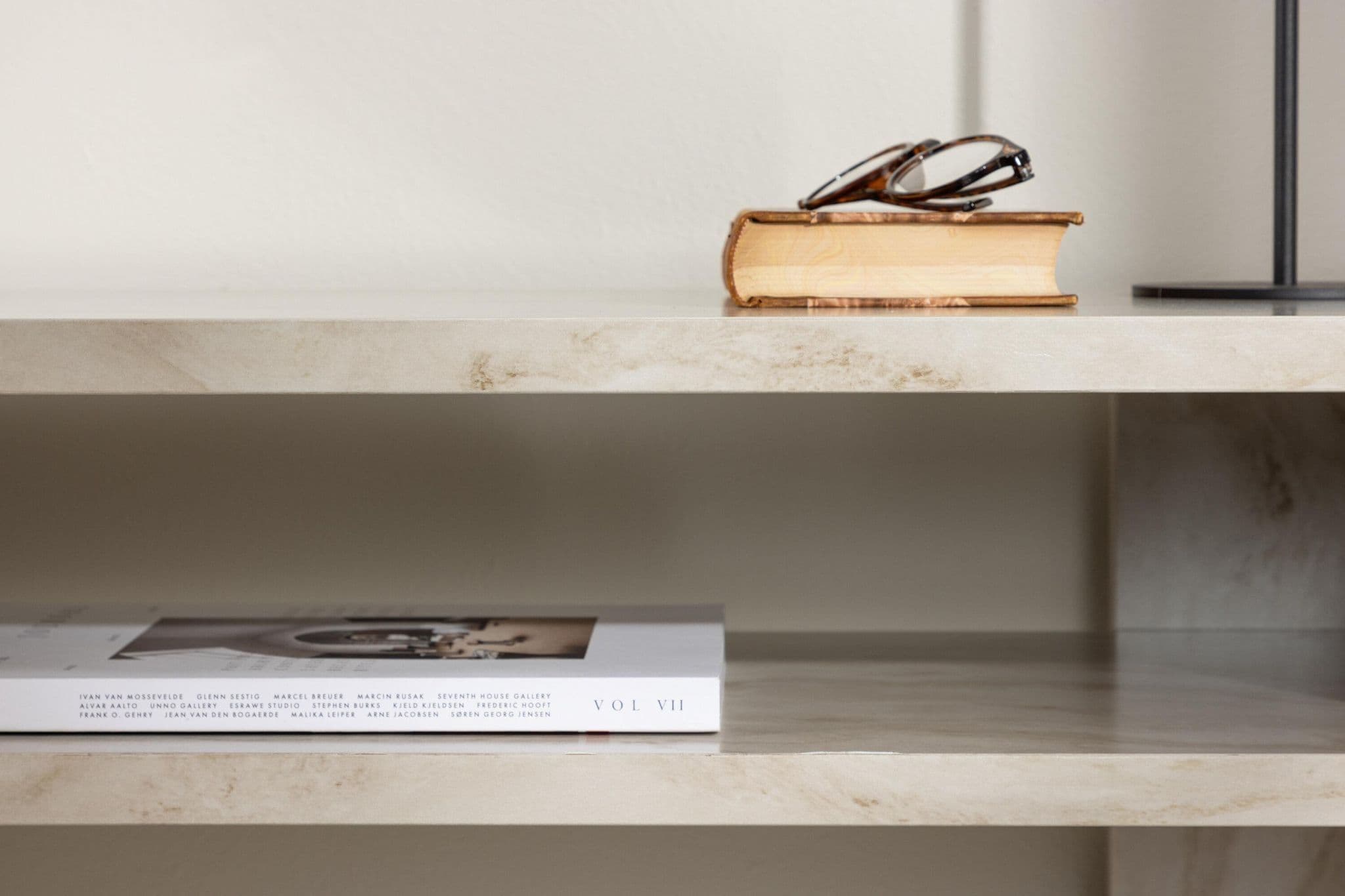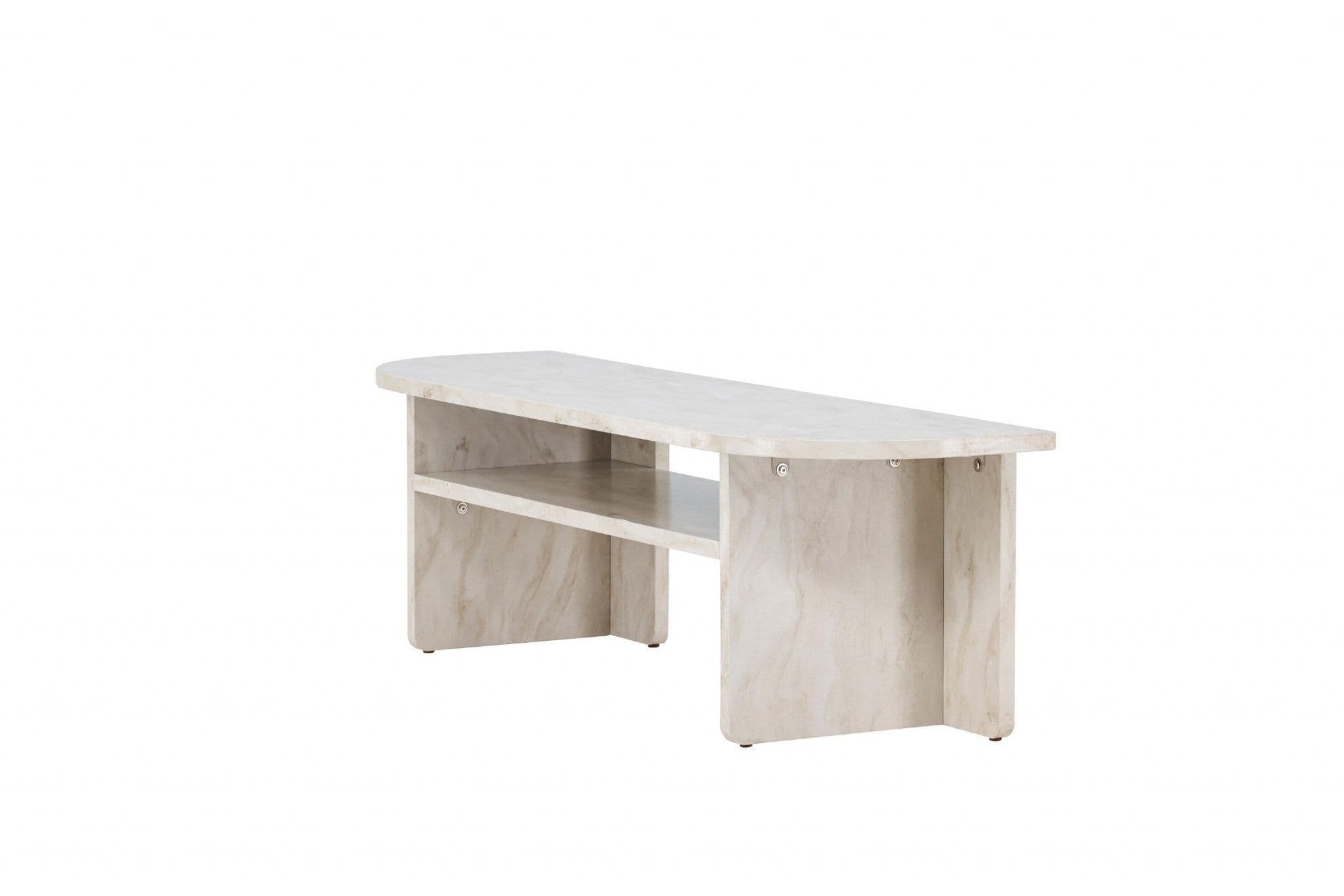 Revive your living room with the beautiful Alesund TV stand. This elegant piece of furniture is made of MDF material and features an elegant marble look in a warm beige color. With its dimensions of 40 140 42 cm, it’s perfect for accommodating your TV and other media components. The Scandinavian design of the Alesund TV stand exudes a timeless and trendy aesthetic that will complement any interior scheme. The clean and minimalist style brings a fresh and modern feel to your living room. Its practical storage solutions make it easy to organize and keep your media components, cables, and accessories in order. You can effortlessly showcase your favorite decorations or family photos on its generous surface. Let the Alesund TV stand become the focal point of your living room and enjoy its Scandinavian charm and functionality. Create a warm and inviting atmosphere with this trendy piece of furniture.