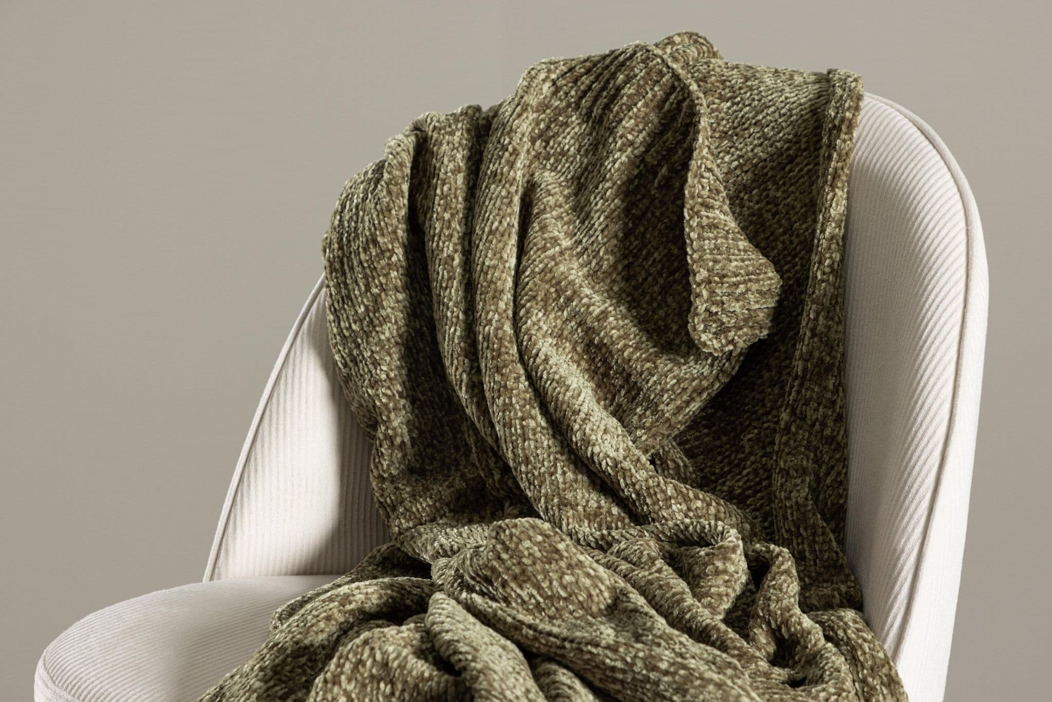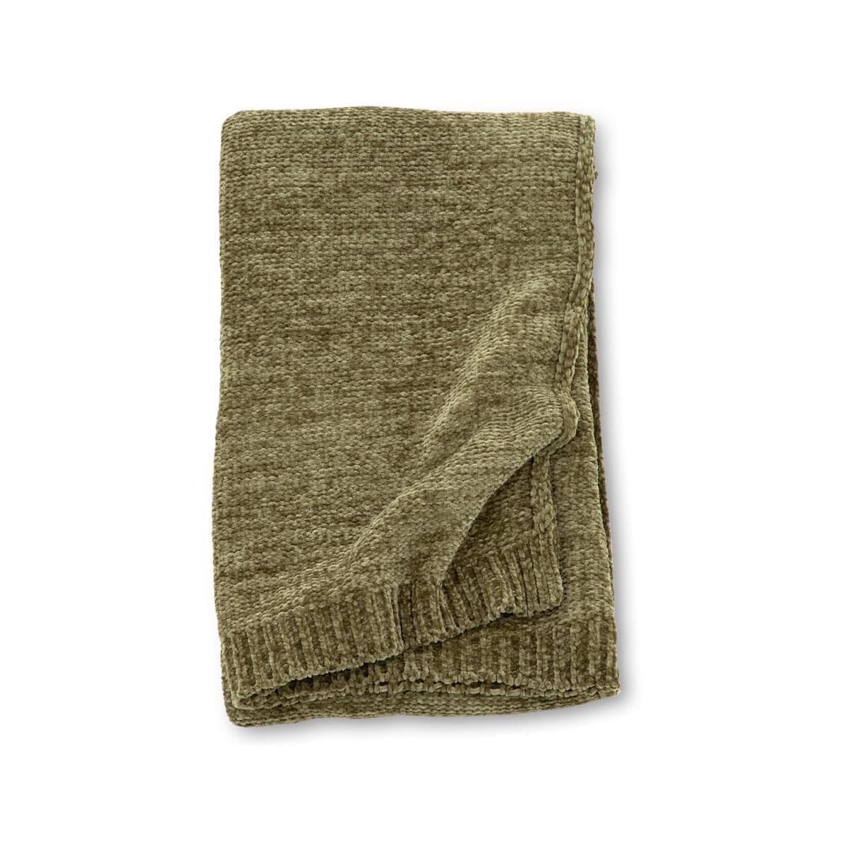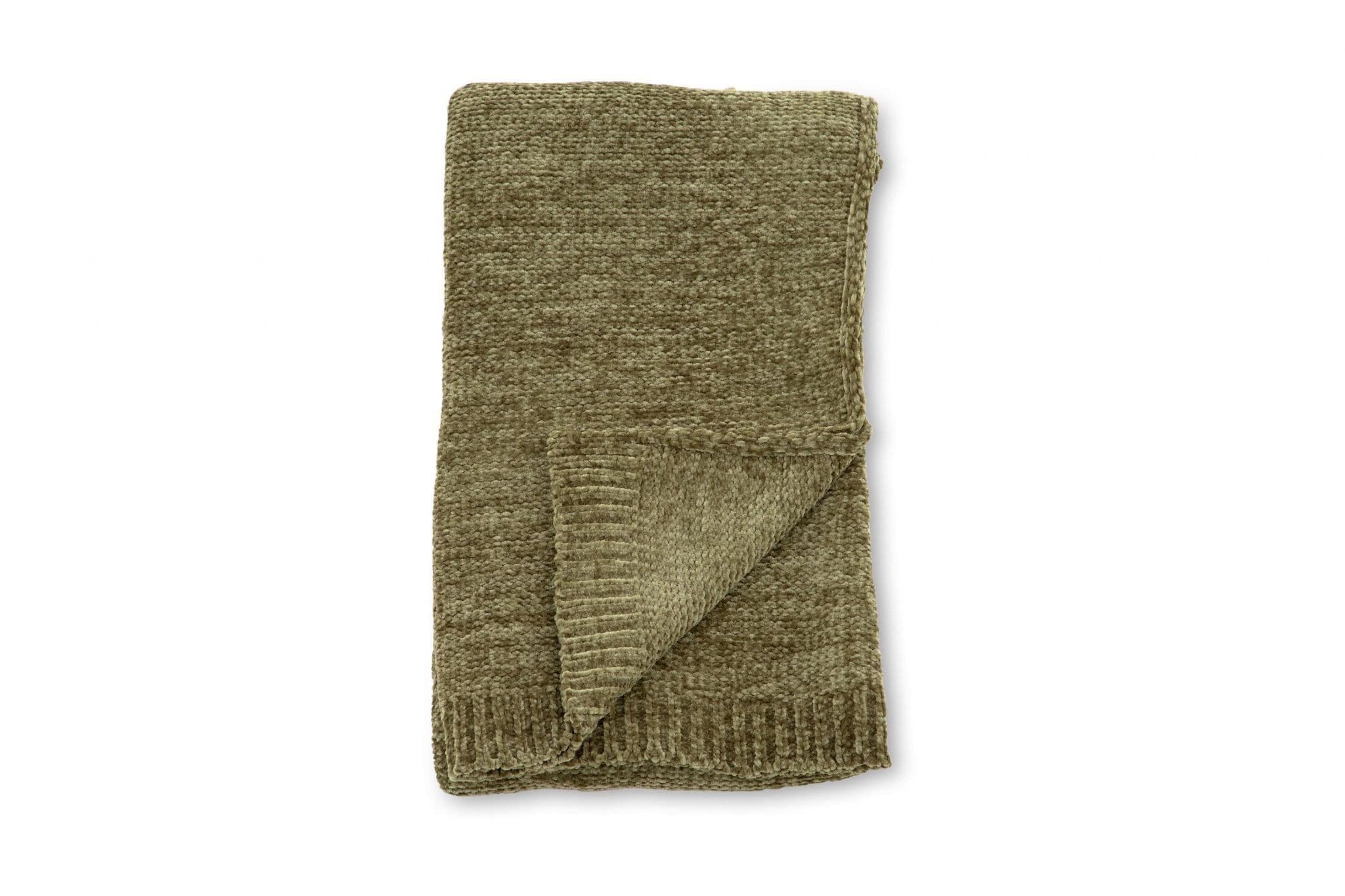 Green plaid in glossy chenille and polyester. Cozy plaid in size 130×170 cm. Care advice: Machine wash 30 C, hang dry.