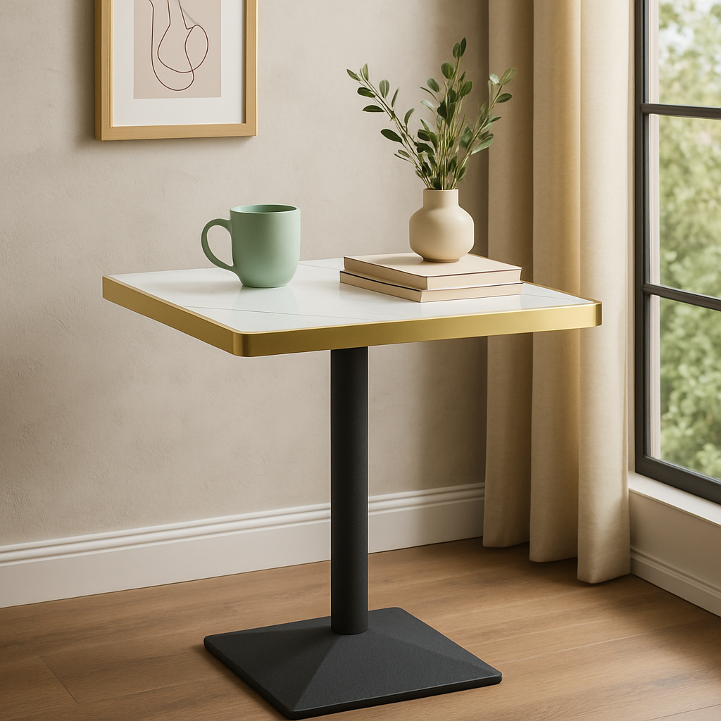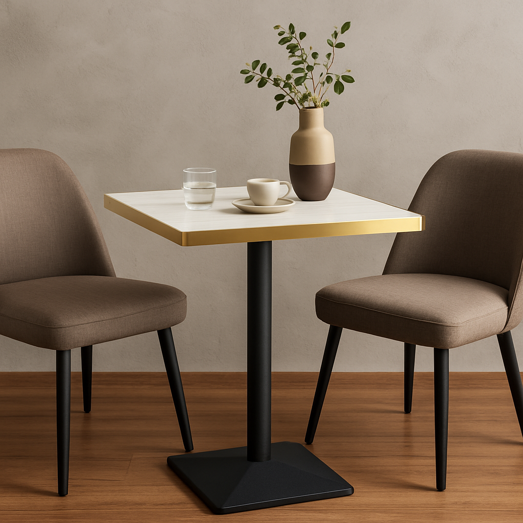 The Aurora 70cm square table combines modern design with durable materials, making it ideal for cafés, restaurants, offices, and contemporary dining spaces. The MDF tabletop features a high-quality melamine surface finish that provides excellent resistance to scratches, stains, and daily wear. Supported by a strong metal pedestal base with a powder-coated finish, this table offers superior stability and long-lasting performance while maintaining a sleek and professional appearance.
