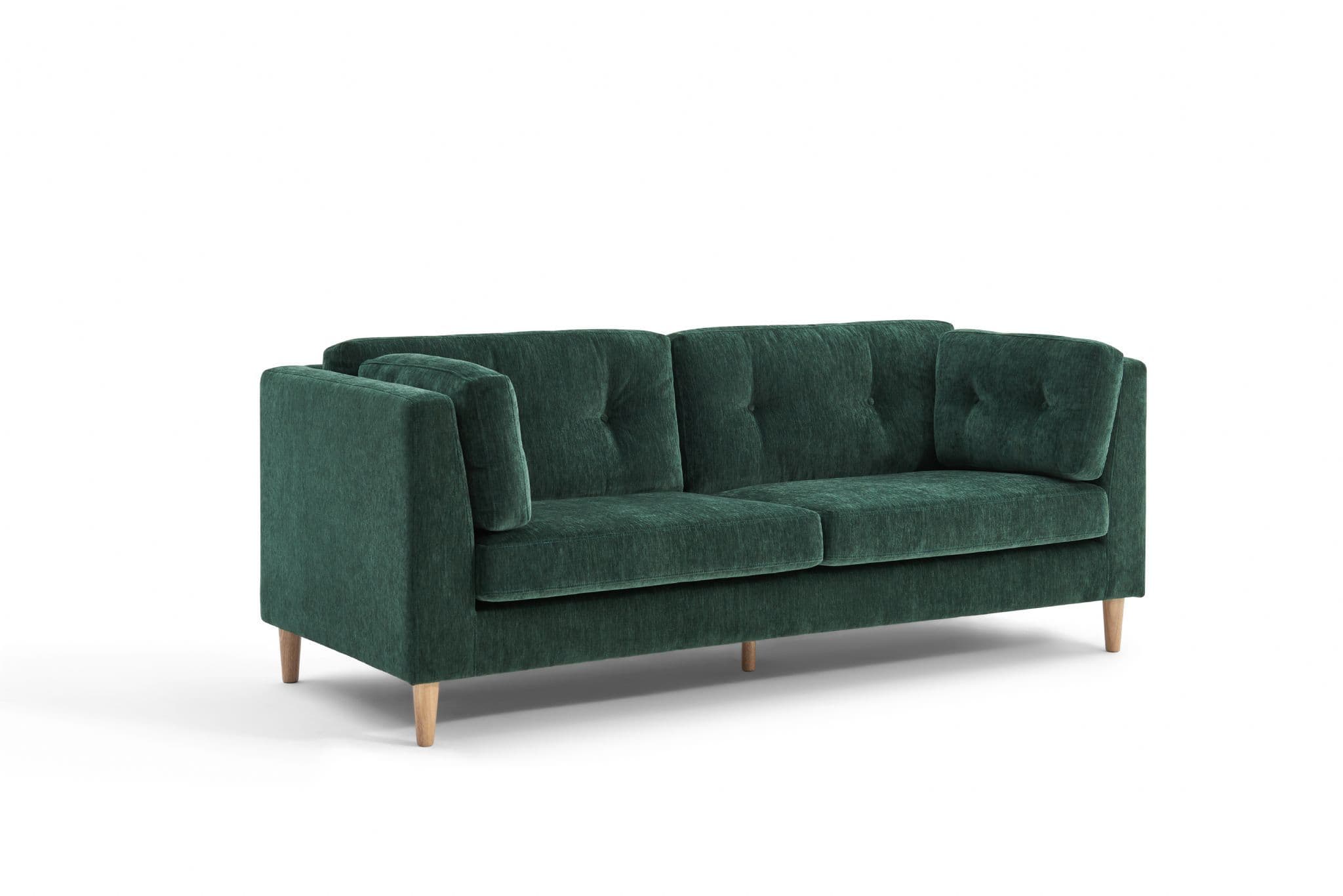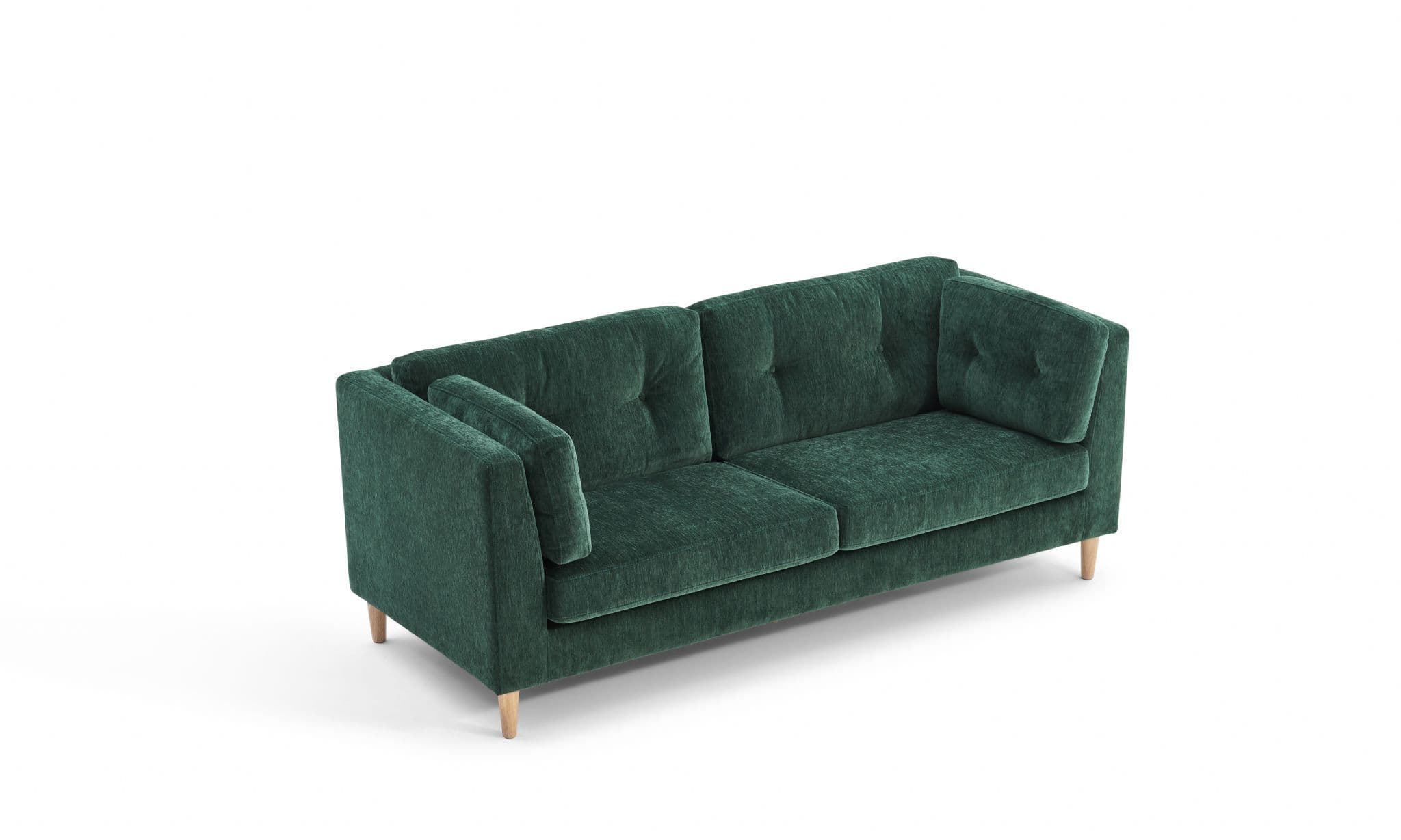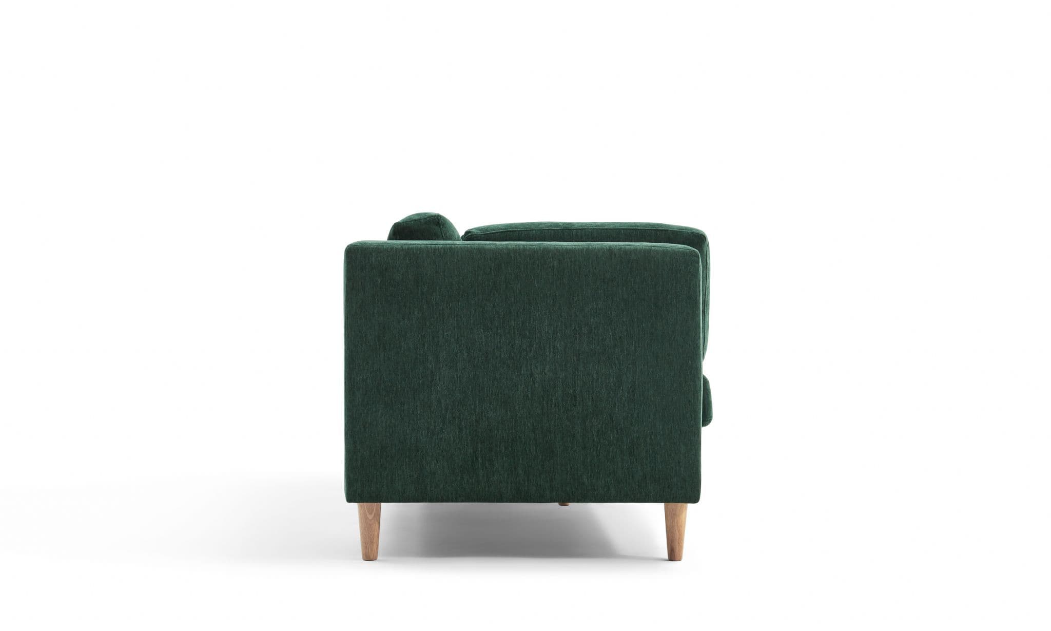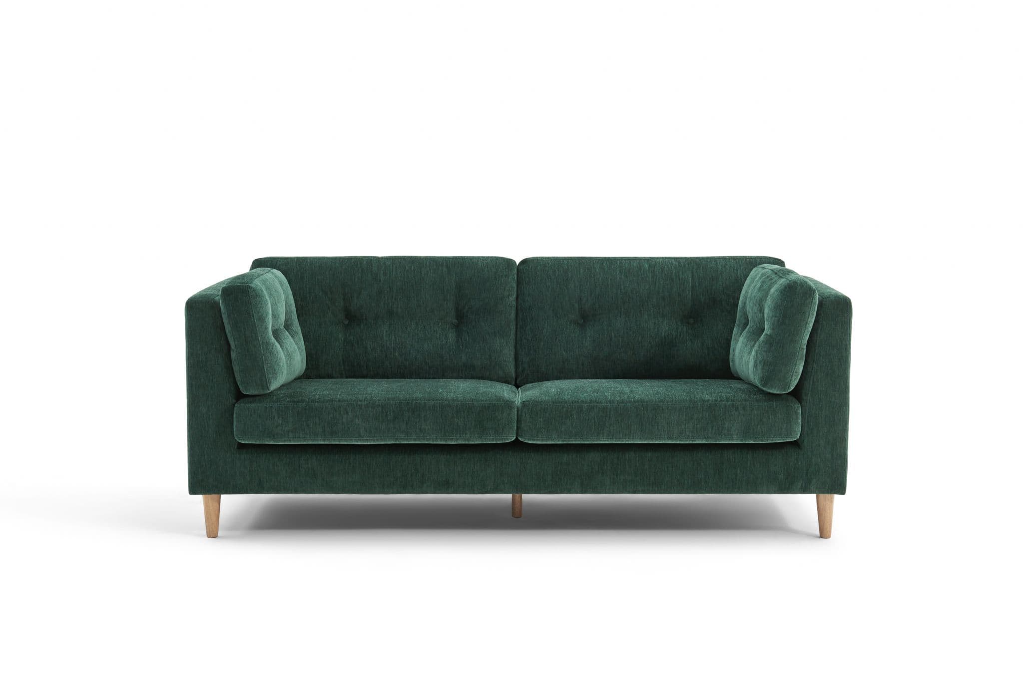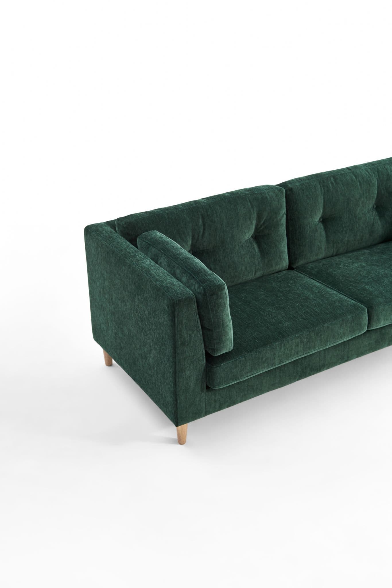 The Bernard Sofa blends modern design with plush comfort Upholstered in soft dark green chenille fabric it features a button tufted back side cushions for extra support and a timeless silhouette With a sturdy plywood and eucalyptus wood frame durable plastic legs and high density sponge with springs this sofa is both stylish and functional for everyday living.