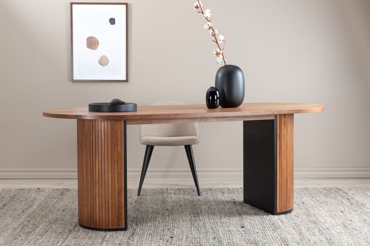 Bianca creates a stylish eye-catcher that impresses! This oval dining table in a plastered white color has a modern design with an MDF tabletop and a robust frame in a ribbed design that gives a steady impression. Elevate the interior in the living room and invite many pleasant meals ahead! Care advice: MDF tops that are painted or varnished are sensitive to scratches and damage. Therefore, be careful with the tops to avoid this. Surfaces painted with varnish with color pigment or paint have a pigmentation that provides a non-covering transparent surface. Please note the net weight for this table is 55. 4 kg. As the table size exceeds the pallet limitation, the number 241 kg is used to help the system make the right charge for the oversized pallet service.