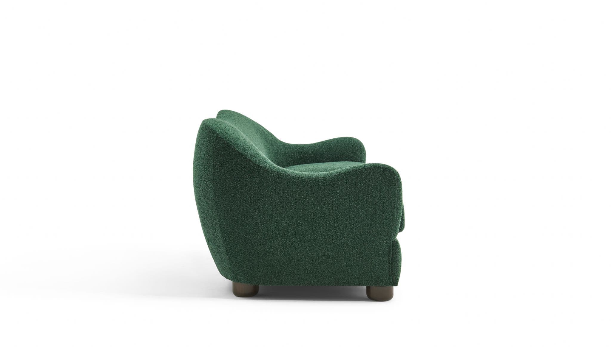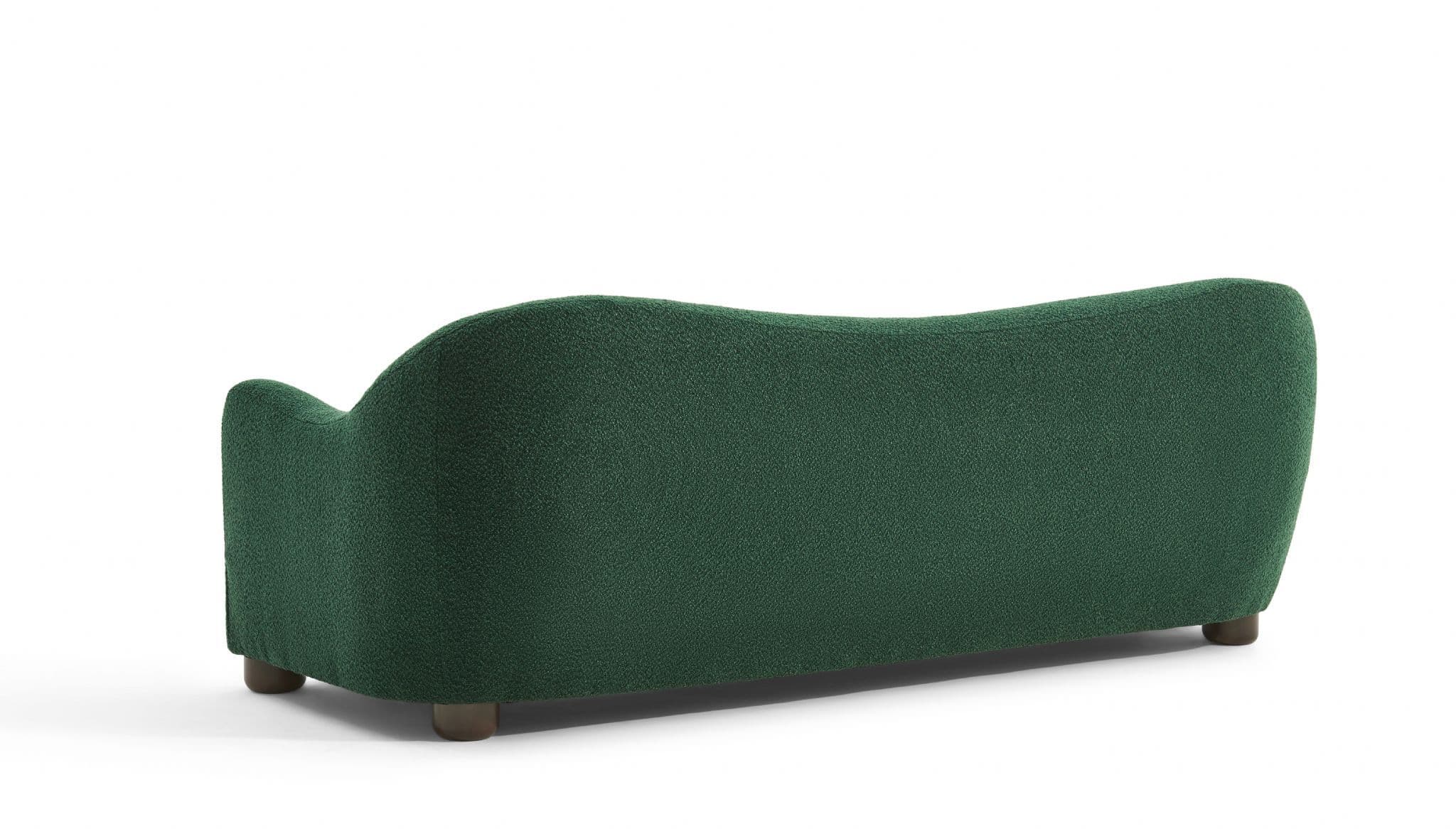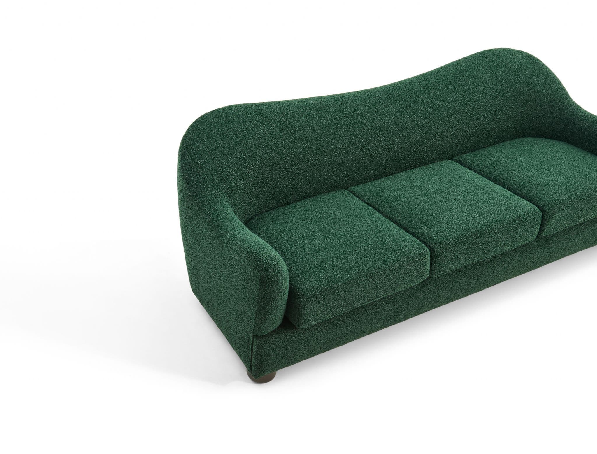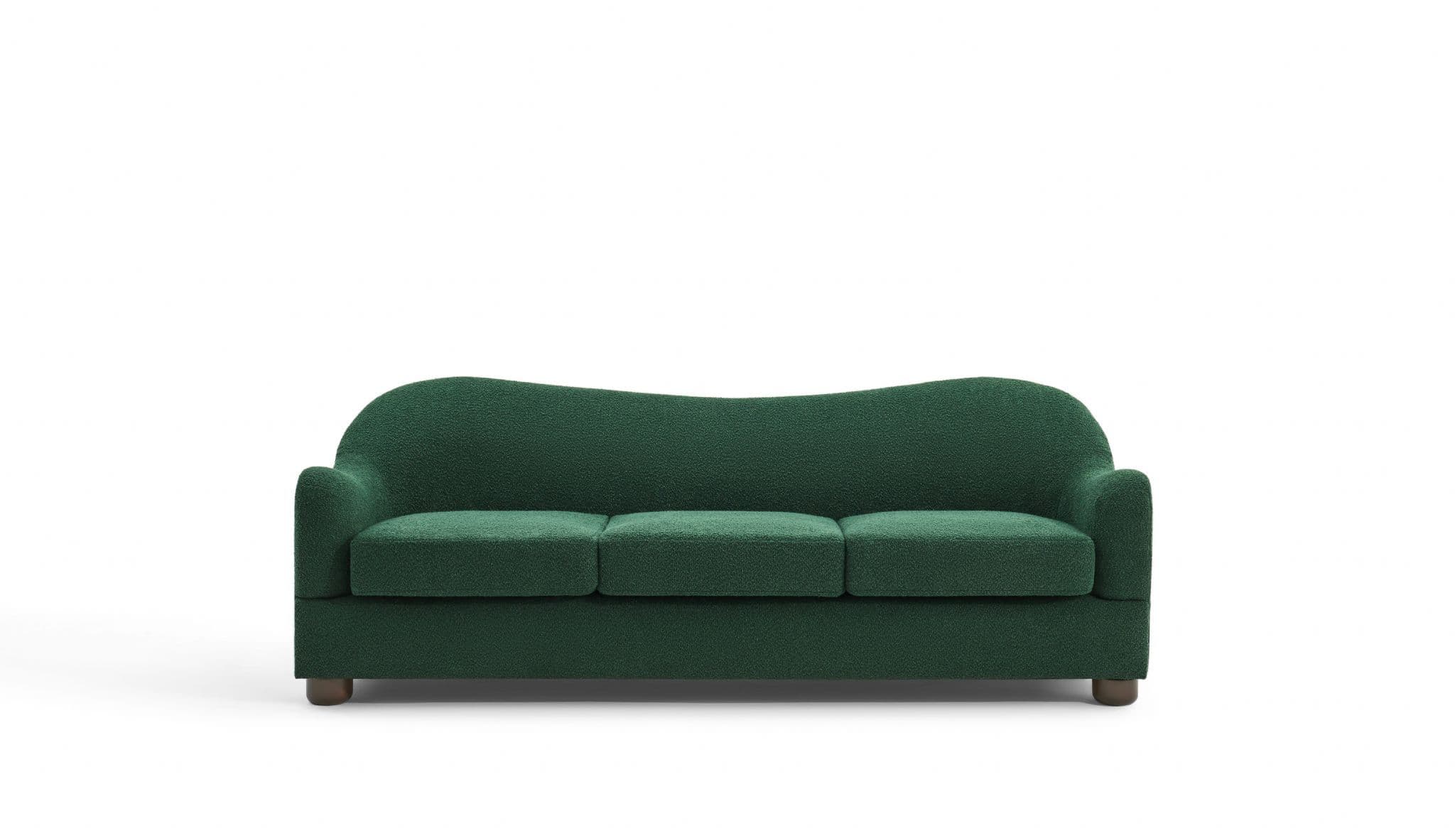 The Biscuit Sofa combines comfort with a unique wave back design Upholstered in soft beige boucle fabric it features plush seat cushions and a sculptural silhouette that adds elegance to any living room Built with plywood eucalyptus wood sponge and springs it ensures durability while providing cozy everyday seating.