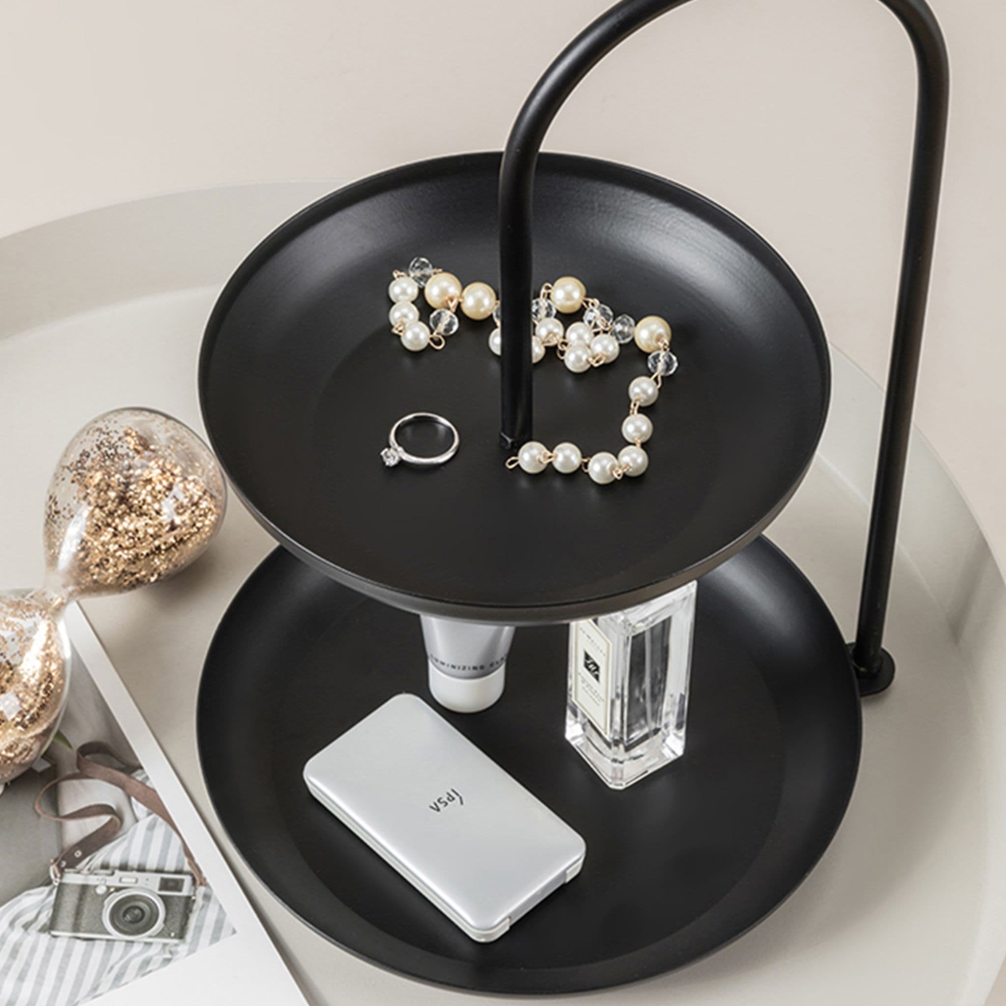 Style your dressing table with this Nordic-style jewellery holder. The decorative trinket stand comes in gold or black to suit your home.
