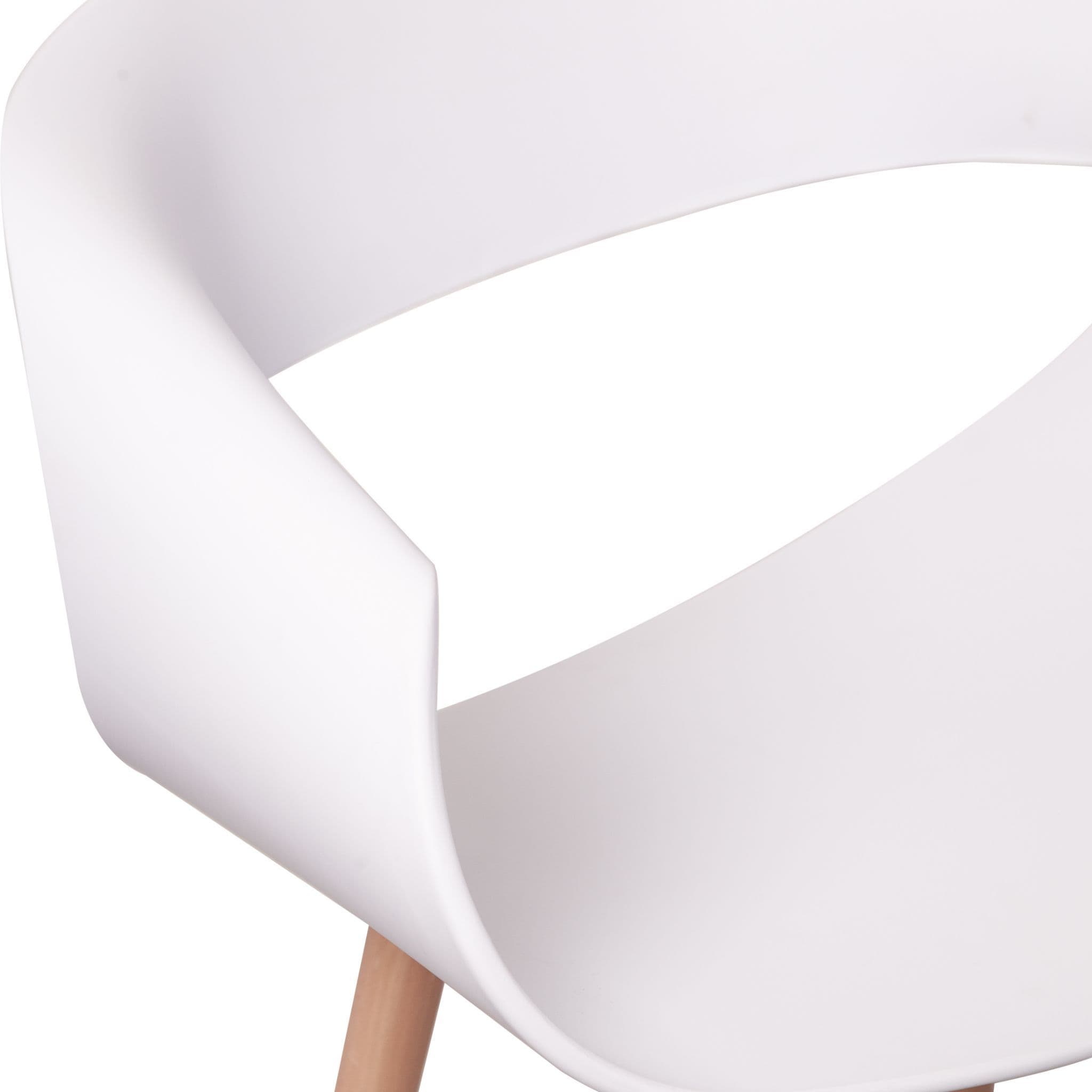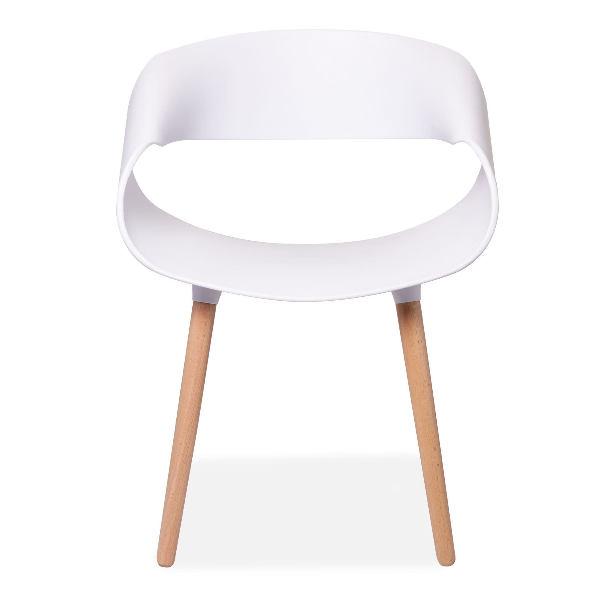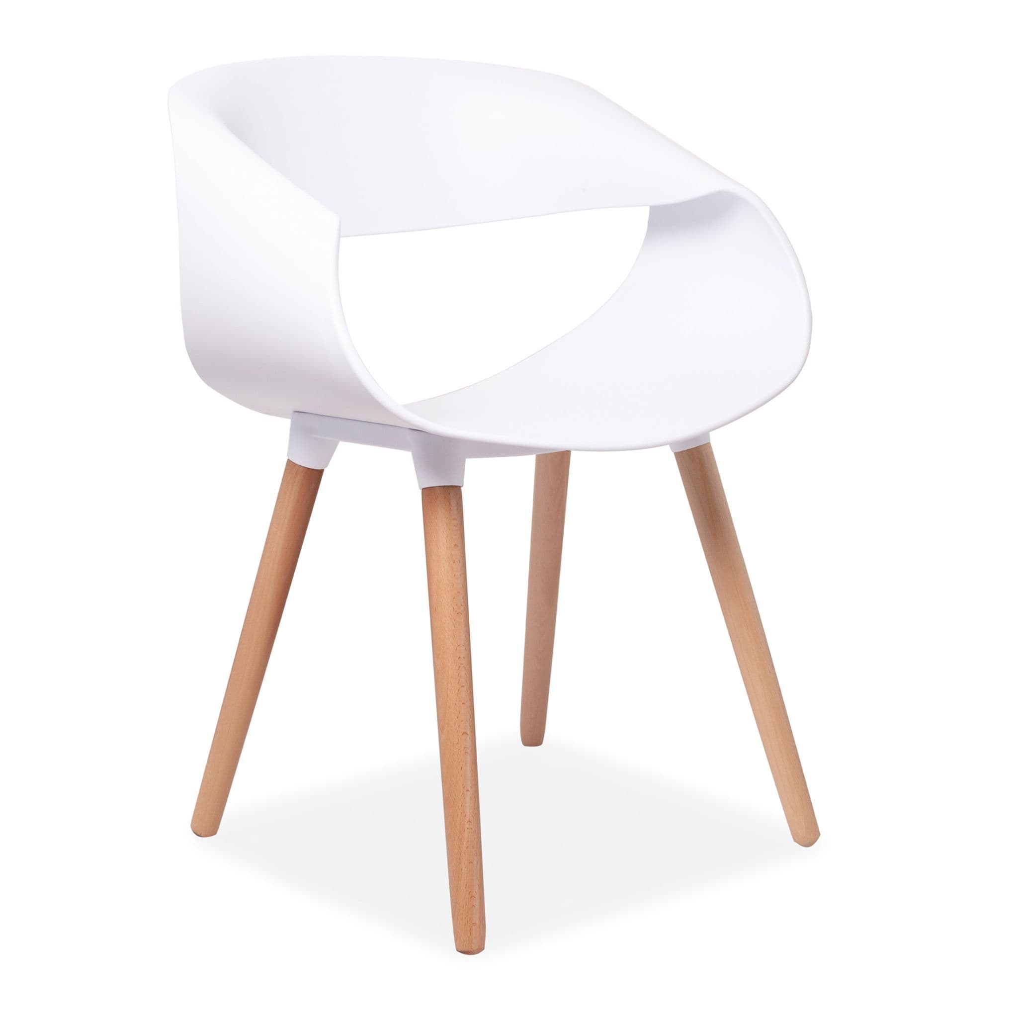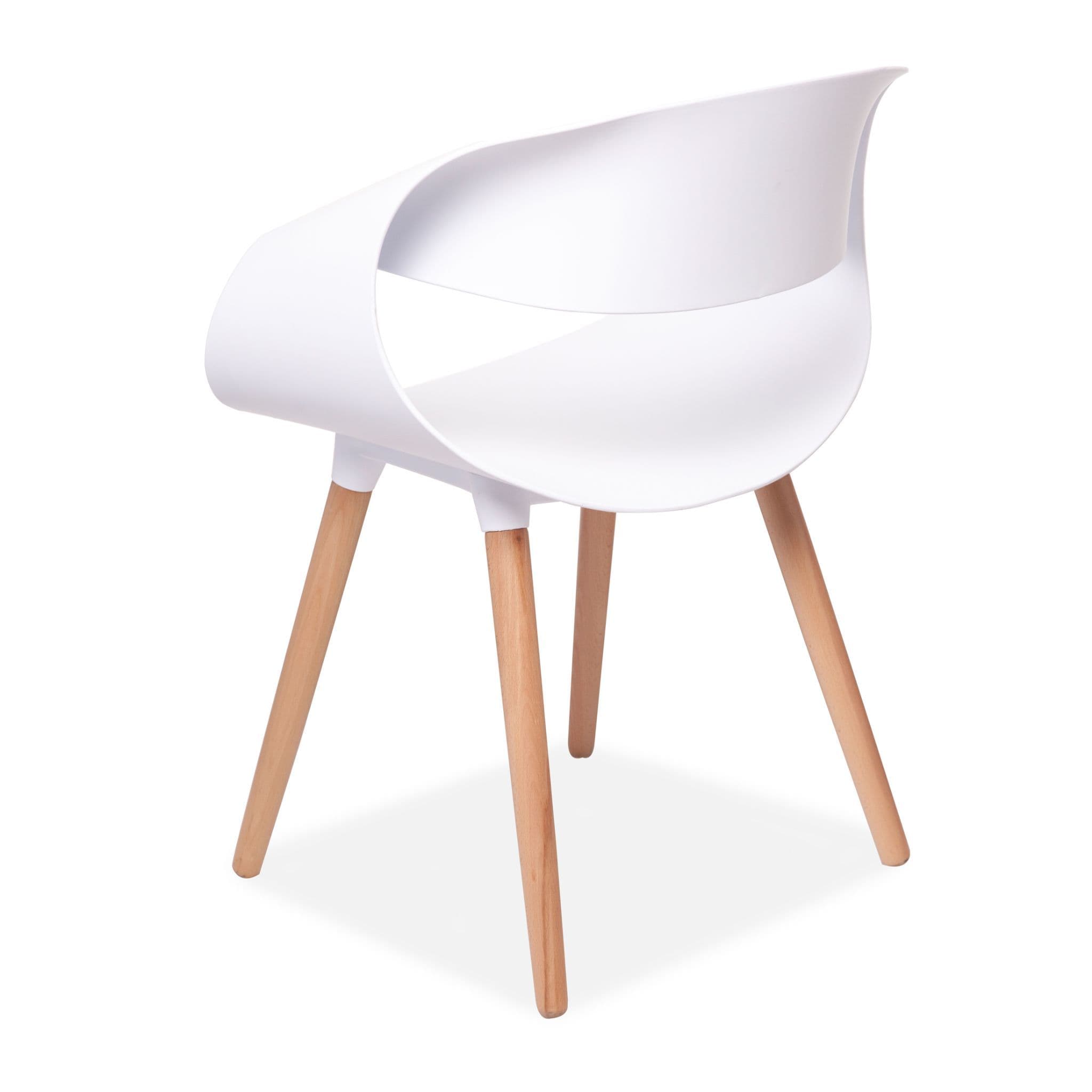 Simple Practical and High quality chair with solid wooden legs These modern design Twist back plastic chairs are perfect for modern homes or contemporary office spaces Designed for style and comfort with sturdy solid wooden legs These chairs not only look great but are comfy too The backrest is made from polypropylene plastic and s available in both Blue and White Its legs made of beech wood come with transparent non slip and anti scratch studs which allow them to be used on any type of floors or surfaces.