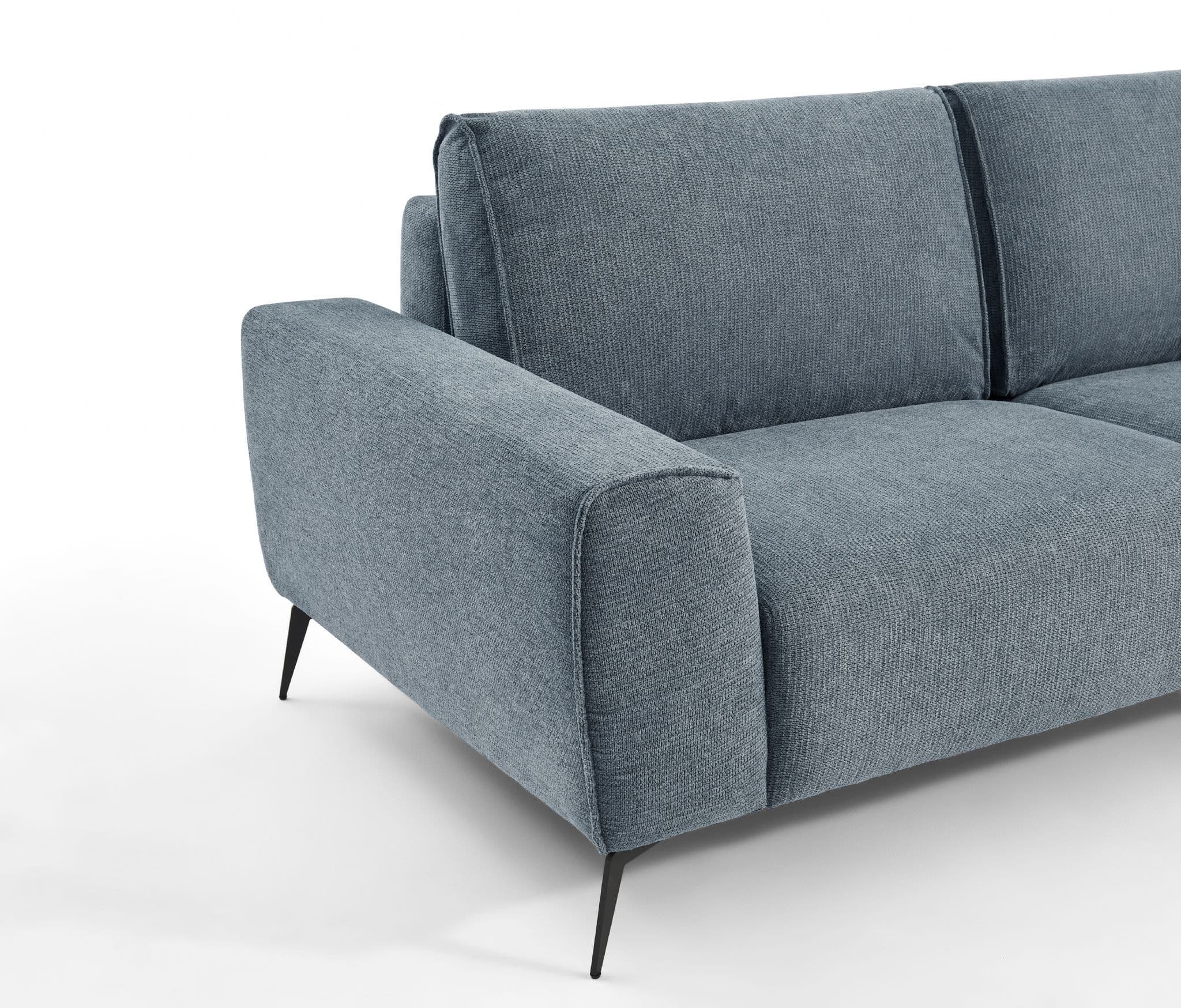 The Camden Sofa blends modern design with soft comfort Upholstered in smooth grey chenille fabric it features wide armrests deep cushions and sleek metal legs With a strong plywood and eucalyptus wood frame durable iron base and high density sponge with springs this sofa is both stylish and built to lastperfect for contemporary living spaces.