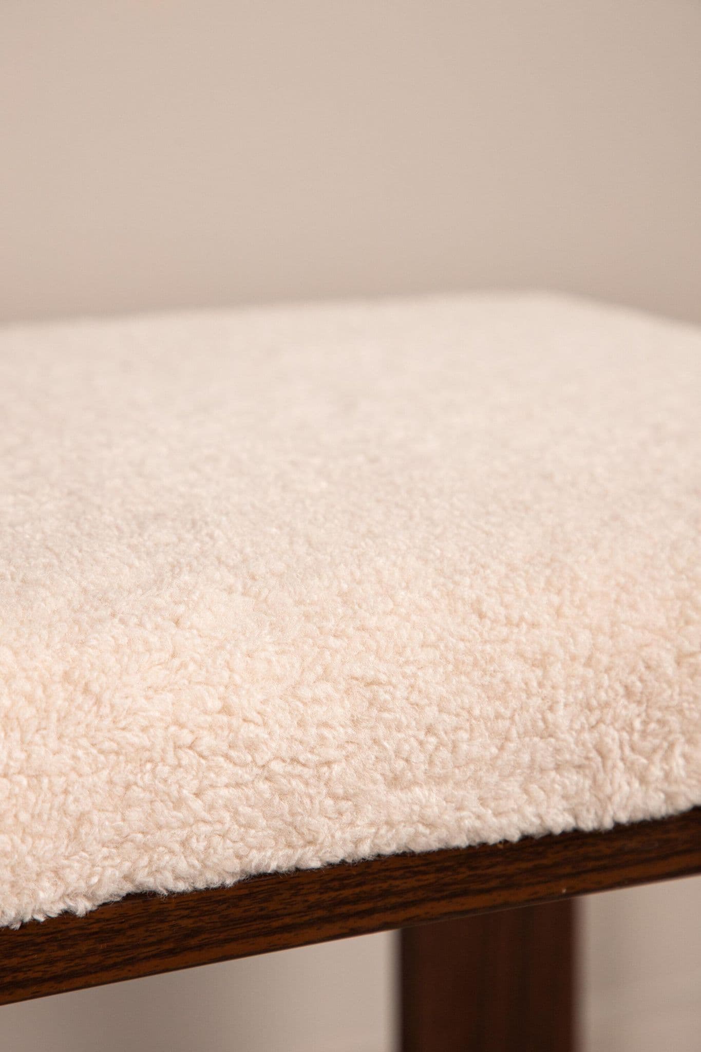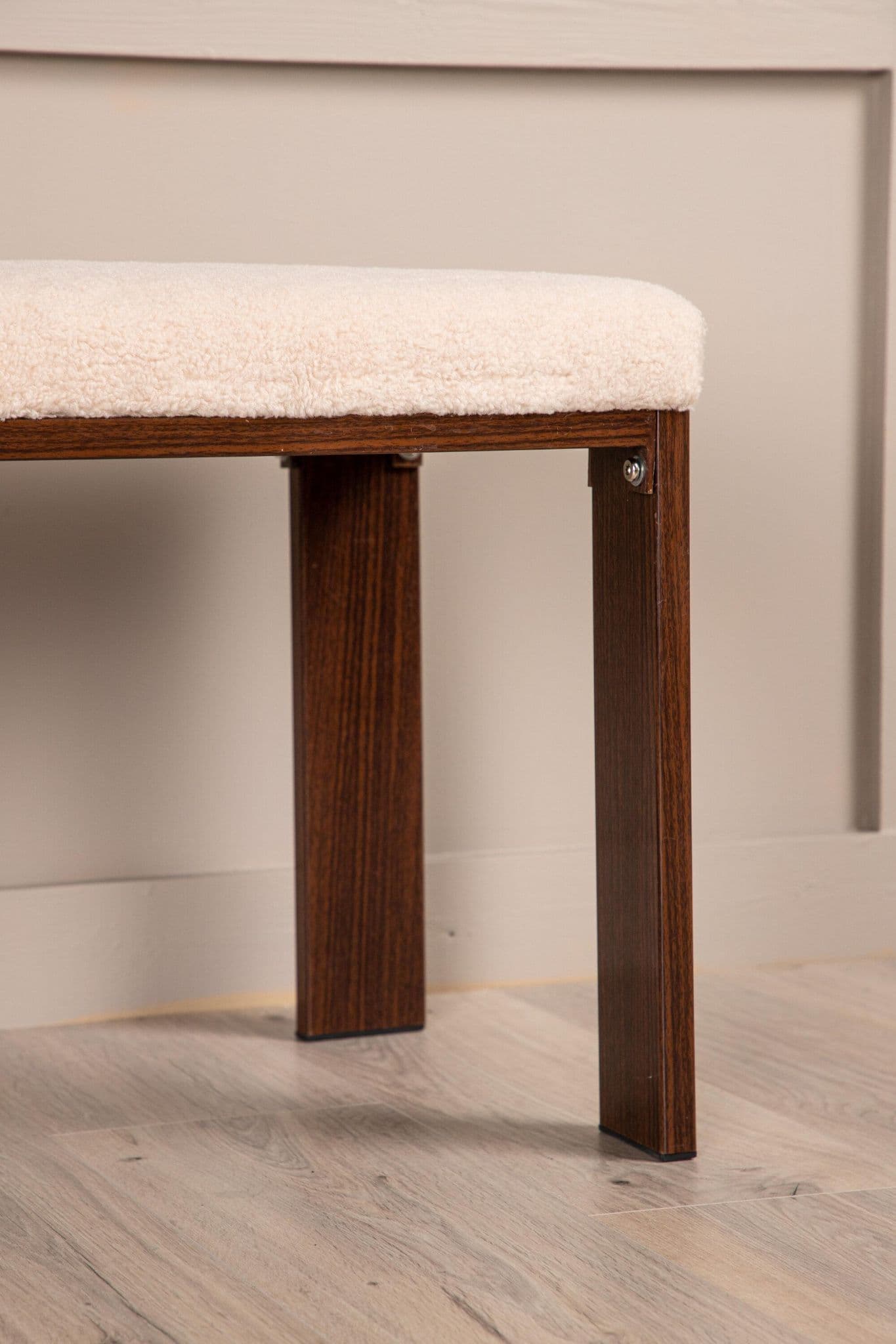 A bench designed completely in line with the trends! This bench from the Chester series has a rectangular seat in soft fleece fabric in white color and four legs in brown walnut colored wood. The perfect interior detail to the hall or living room, as a solitary style icon or to create more seating in the home. Only the imagination sets limits but one thing is certain; This bench quickly creates a fashion conscious eye – catcher!