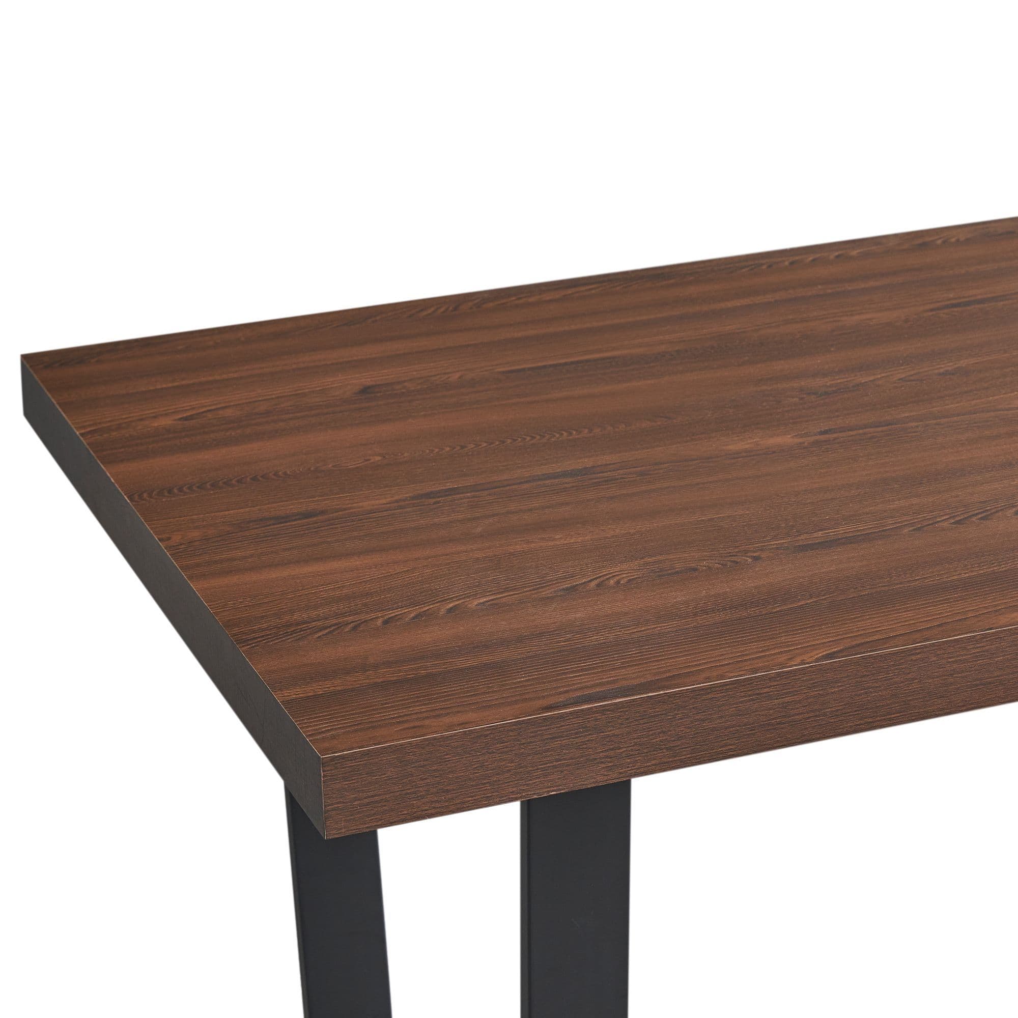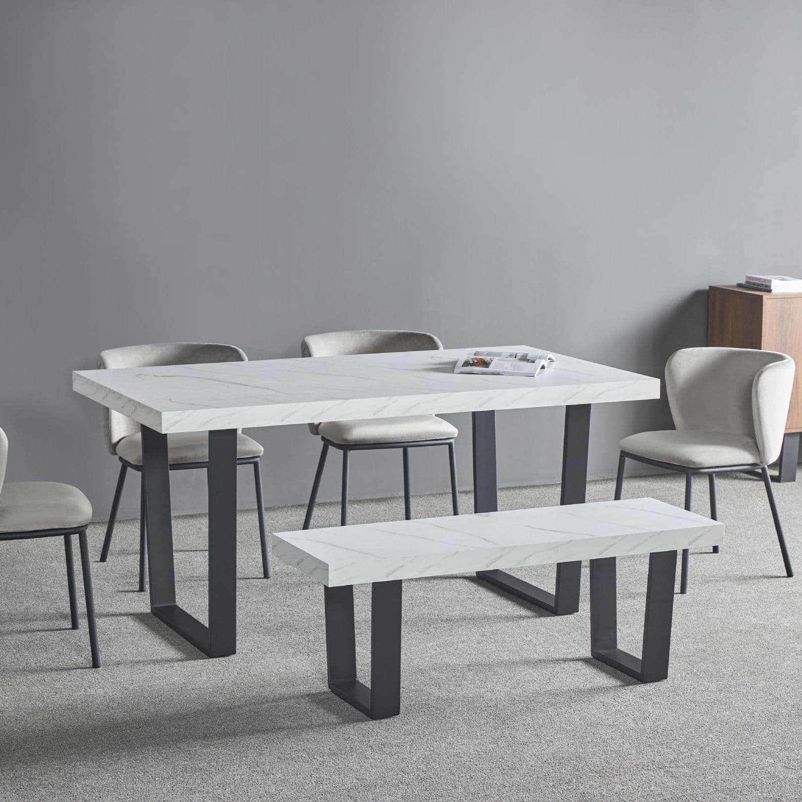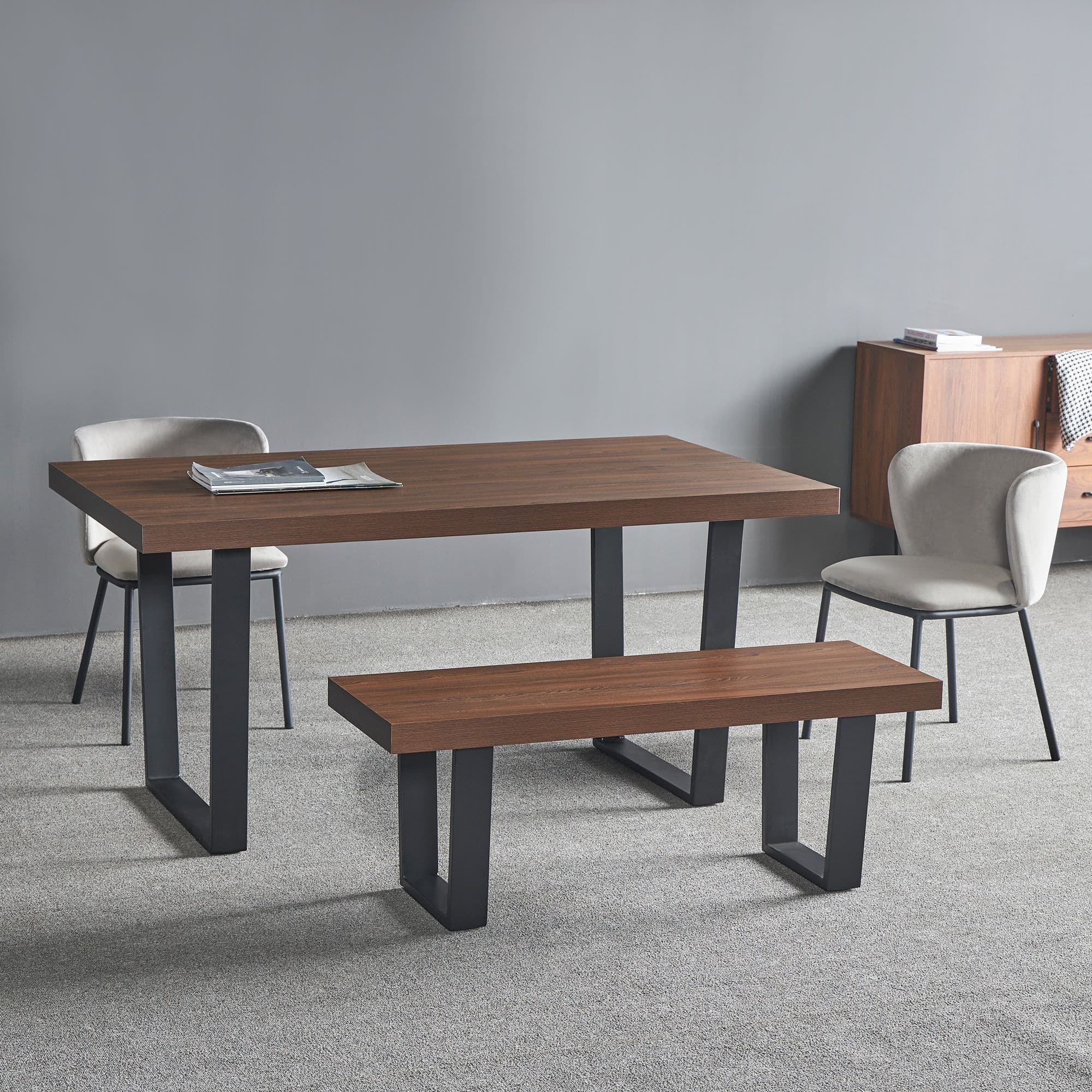Sturdy Construction The Dannis table is a standout piece perfect for elevating any dining room or kitchen space It features a sturdy U shaped metal frame that ensures stability and durability The high quality MDF tabletop with a walnut effect finish adds a touch of sophistication and warmth to the overall design Modern industrial Design With its minimalistic industrial design this table creates a bold and eye catching statement in any modern interior The clean lines and sleek silhouette contribute to its contemporary appeal making it a focal point in your space Colour Options Available in walnut effect marble effect and concrete effect finishes providing diverse choices to match various interior styles Complementing this table with our matching bench enhances the cohesive look of your dining area combining style with functionality effortlessly Please note the net weight for this table is 374kg As the table size exceeds the pallet limitation the number 150kg is used to help the system make the right charge for the oversized pallet service.