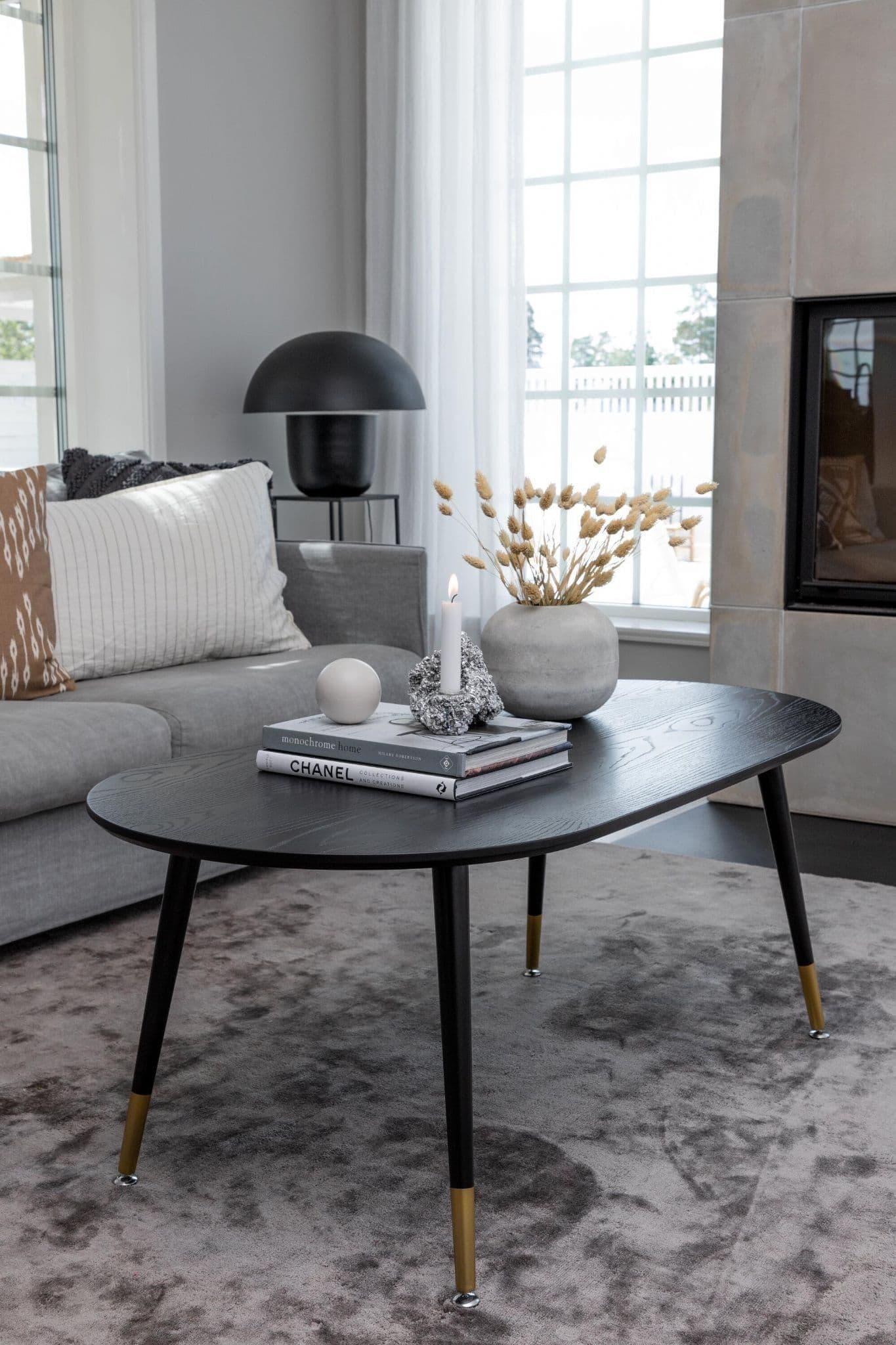 DIPP SOFA TABLE – Black Veneer – Black Legs W Brass Dipp.
