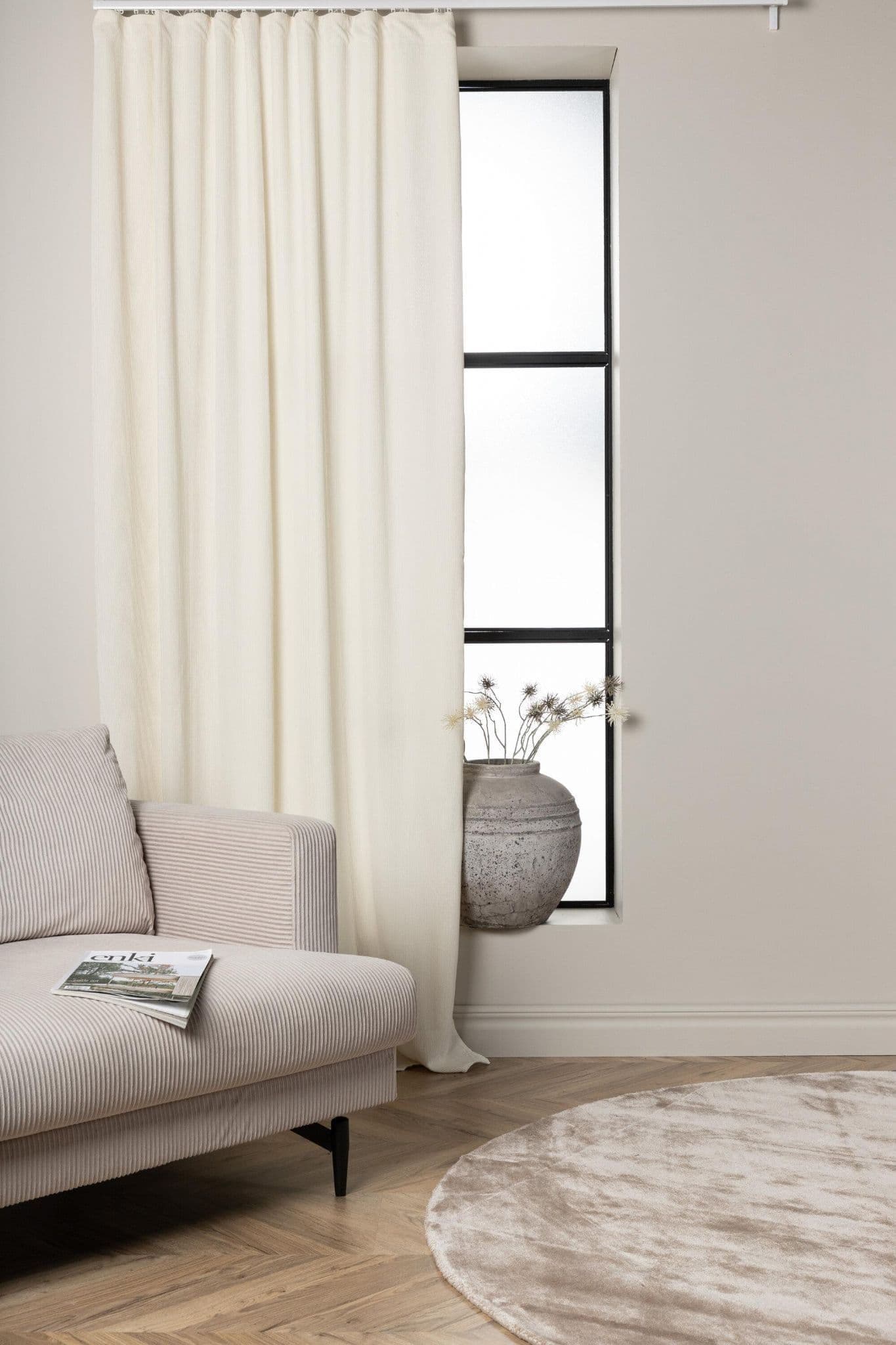 Curtains are a simple trick for creating a new feeling at home. With Elma curtain lengths in polyester with a Manchester (corduroy) feel, you quickly create a cozy, luxurious impression. Combine with a sheer curtain for a lovely hotel feeling, or use alone and put your own touch on the interior! Sewn multifunction band lets you choose the suspension method finger hooks or hidden pole pocket. We recommend using stain remover and airing the textile often to preserve color and shape for a long time. For machine wash, we recommend 30 C. Dimensions: 140×240. Contains 2 curtains.