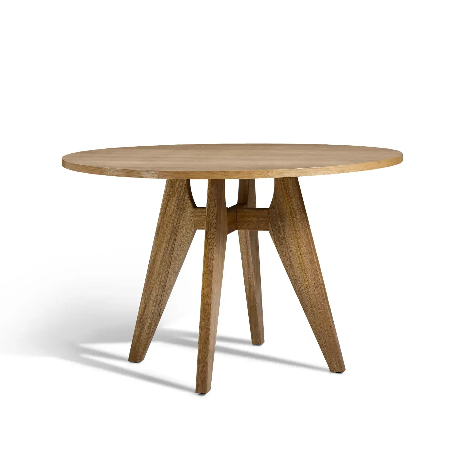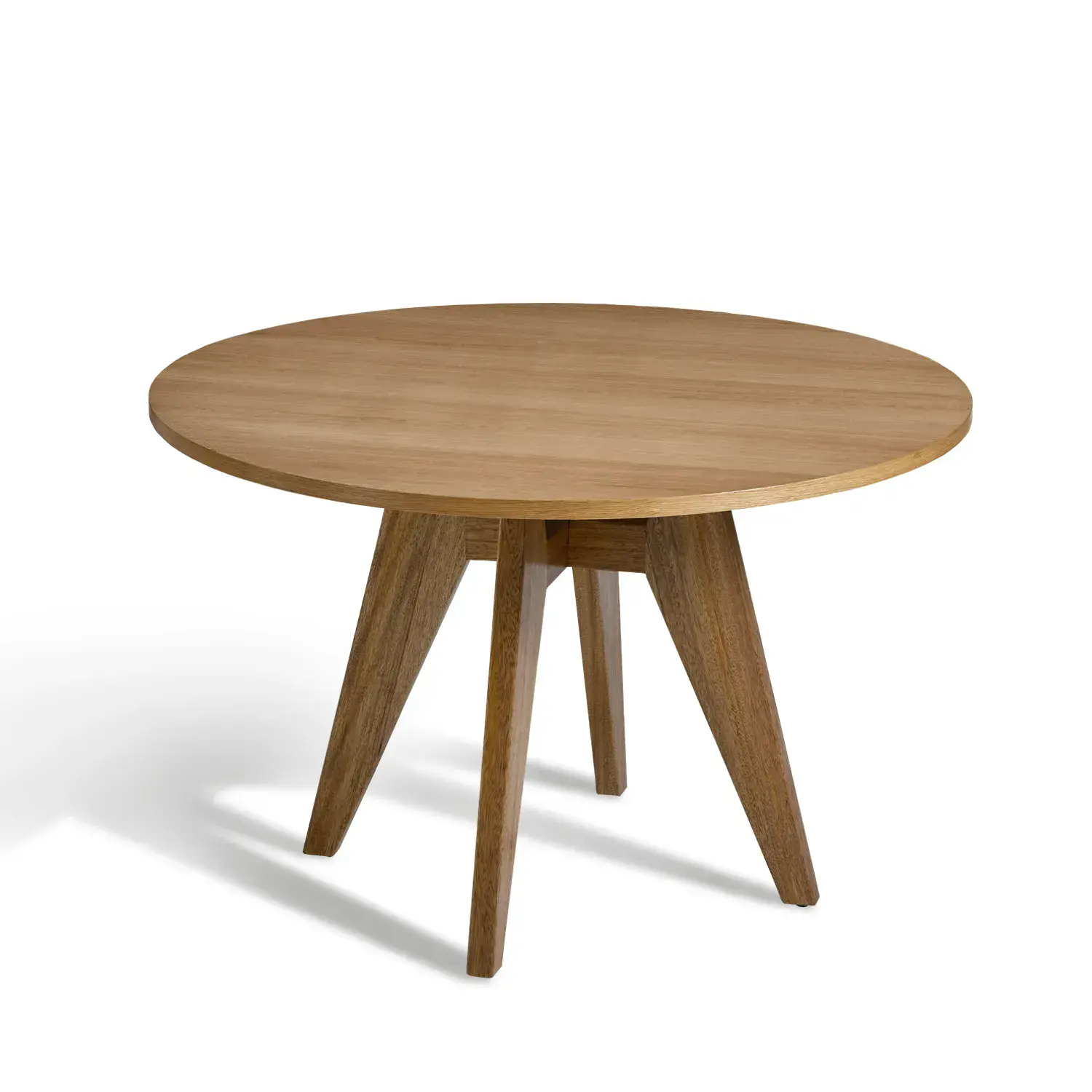 The Elva Round Dining Table combines simplicity with natural charm Crafted with an MDF top finished in oak veneer and supported by solid rubberwood legs it offers durability with a warm brown finish At 120cm it provides the perfect size for cozy family meals and modern dining spaces.