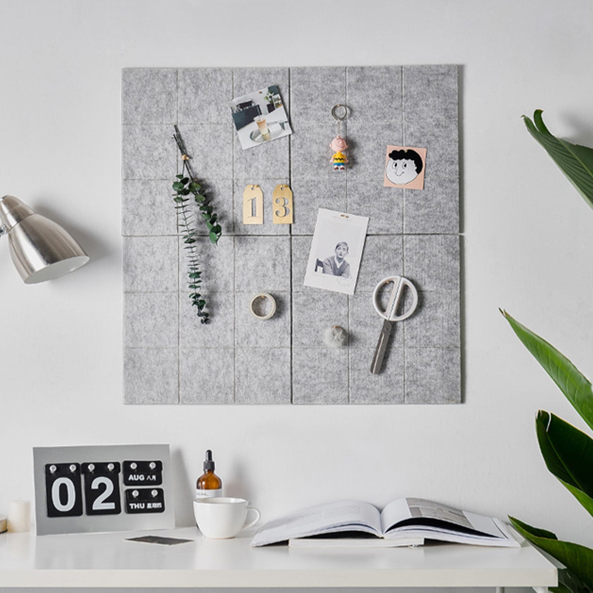 These stylish felt notice-board tiles feature a peel-and-stick backing for quick wall application. Available in various colours perfect for studies and offices.