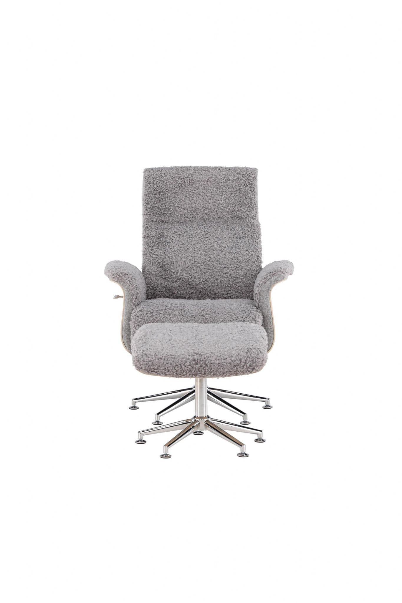 The Hagon armchair constitutes a timeless investment for your home! With careful design and thoughtful details, this armchair represents a masterpiece of Nordic design. Clad in a soft, fur – like gray fabric, Hagon provides a feeling of luxury and well – being from the very first moment. The wooden frame in whitewash color contributes to an airy and modern aesthetic that seamlessly blends into any interior. The elegant chrome legs add a subtle shine to the design. The armrests, pleasantly rounded and designed for relaxation, and the accompanying footstool provide extra support and comfort for tired feet. Additionally, the backrest is adjustable to maximize comfort. Whether you want to enjoy a book or socialize with friends, Hagon is the ultimate spot for it!