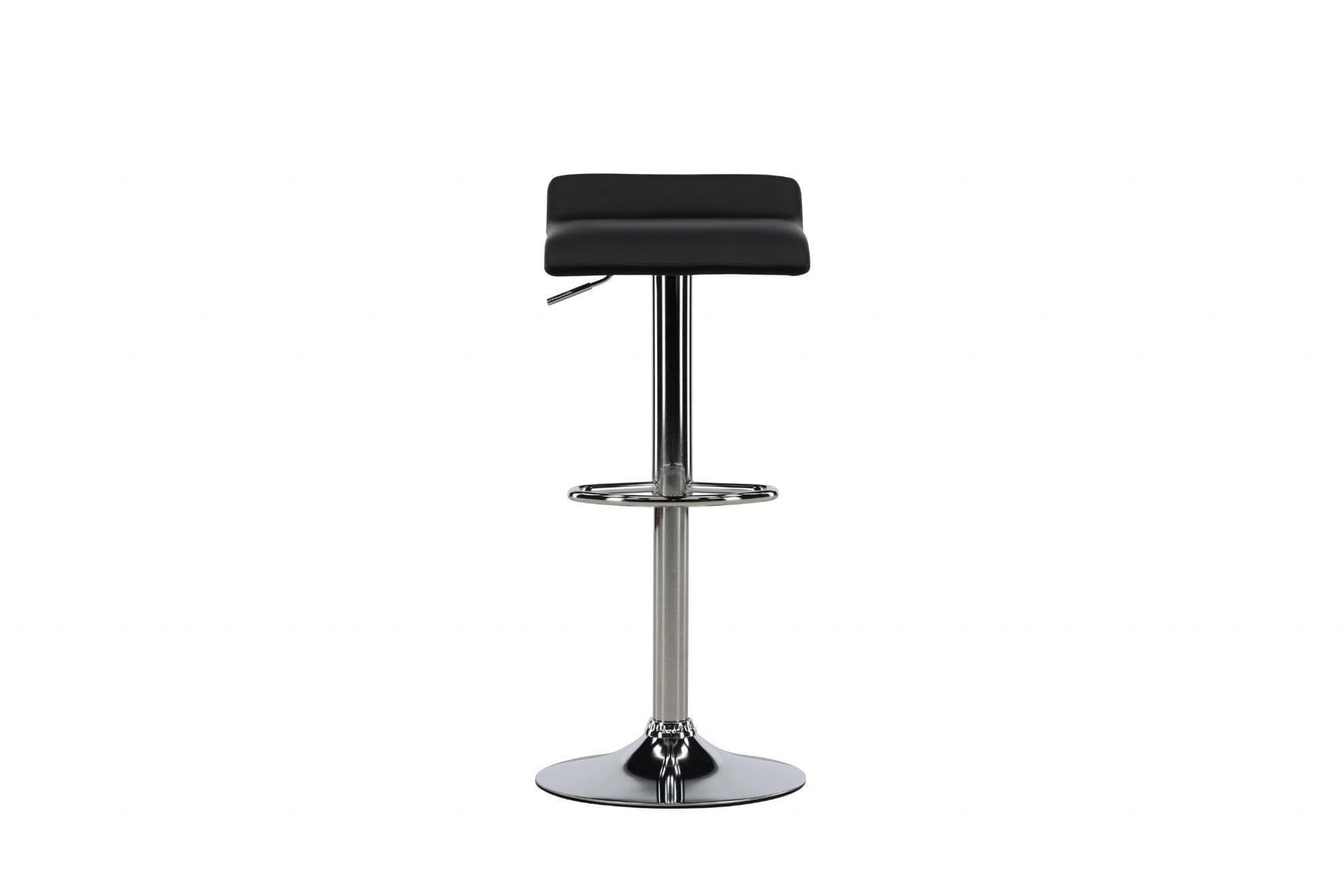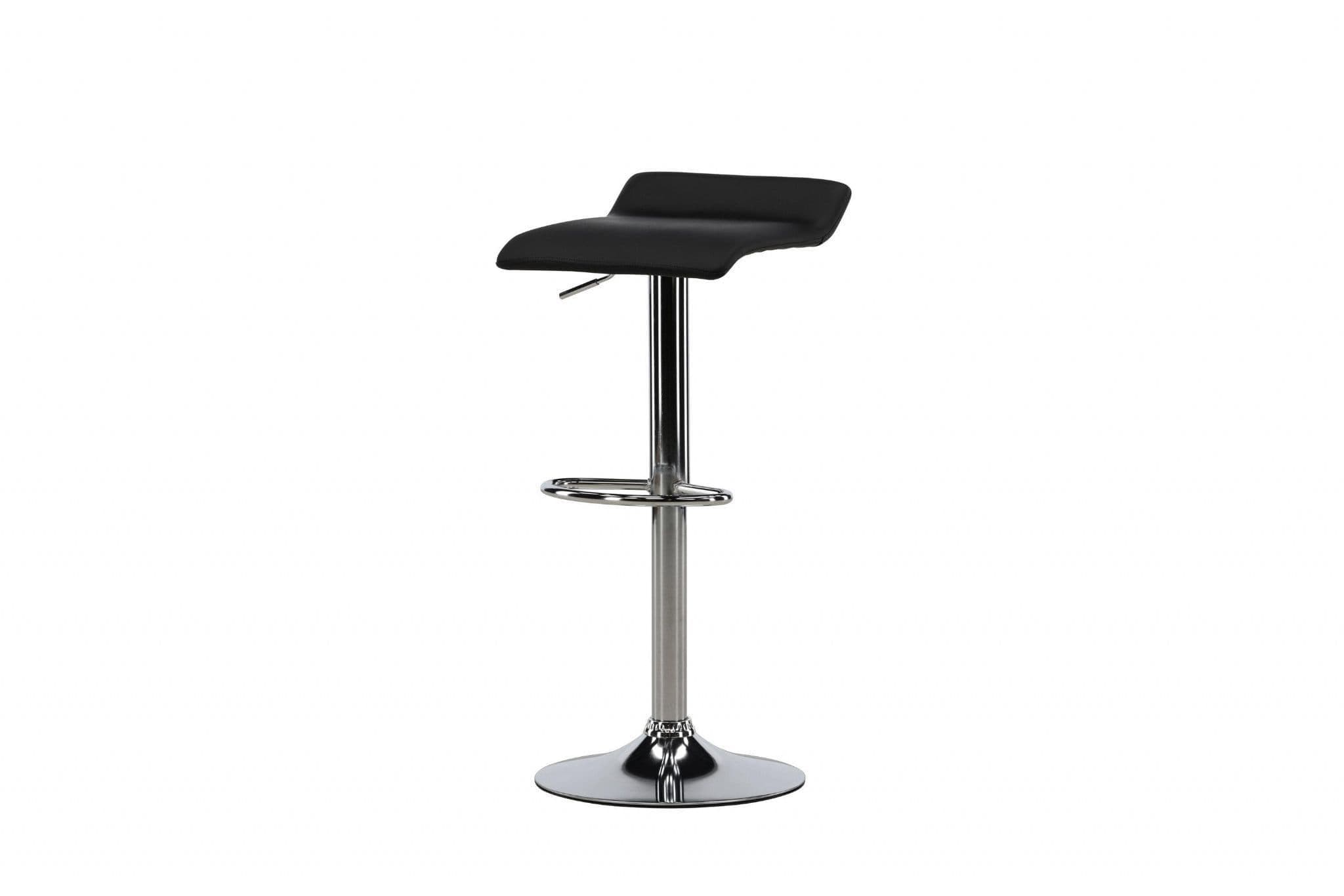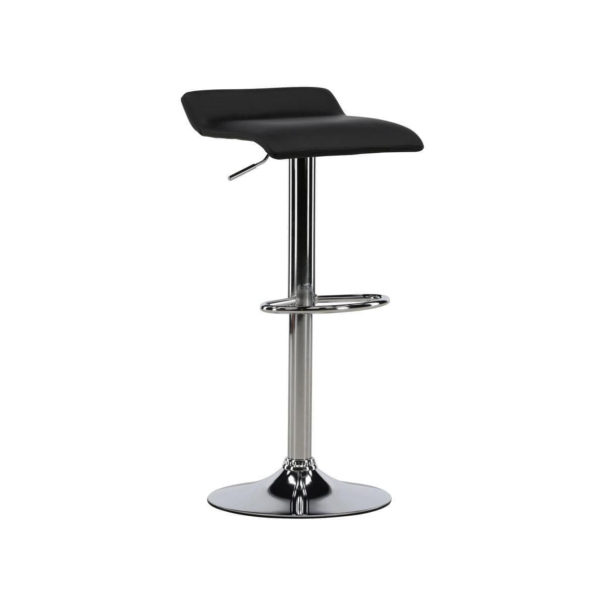 Jonna barstool: enduring classic with a chrome trumpet base and simple black faux-leather seat; perfect at the kitchen bar or a high dining table.