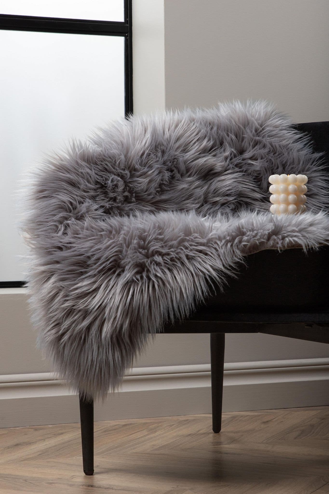 Create a cozy, warm decor with a faux sheepskin rug. In earthy brown with a fluffy, long pile, it has many uses place next to the bed, on the sofa, stroller, or on the patio for a warmer impression. Made of durable polyester acrylic with suede imitation backing. Dimensions: 60×90 cm.
