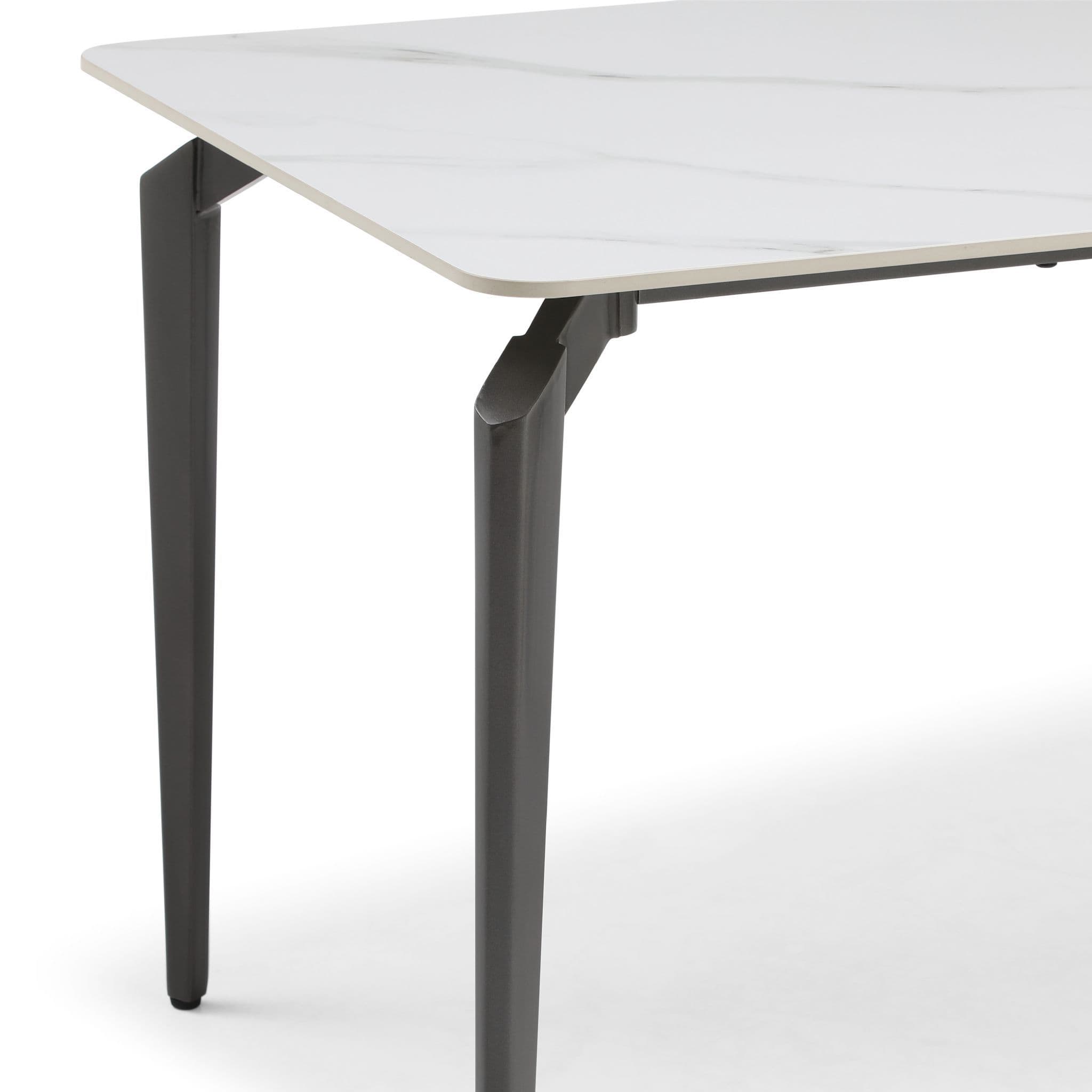This table boasts a distinctive and bold design The tables top is crafted from engineered marble adding a touch of elegance and natural beauty Its base is constructed with metal featuring profiled legs with a contemporary form These legs serve a dual purpose functioning as both sturdy supports and decorative elements for the table Furthermore these modern legs impart a sense of lightness and originality to the furniture Please note that this table weight is 37kg The carton is over sized so the number 150kg is used to help the system determine how many pallets are needed for your order.