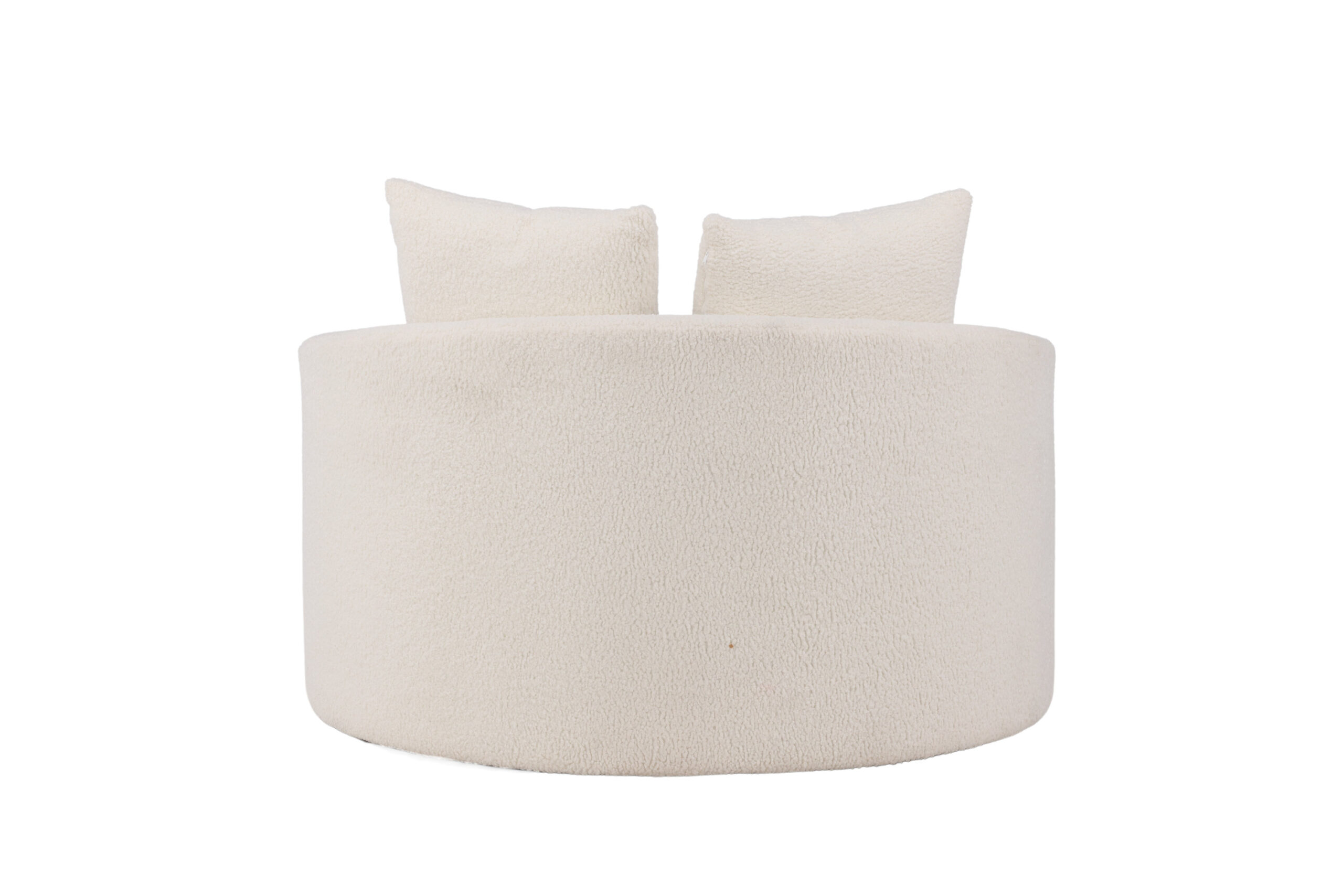 A romantic two-seat sofa with an inviting, rounded and cozy design that will surely raise the style level in your home! The sofa from the Kelso series belongs to the Venture Home collection and has fully upholstered white teddy fabric with a rounded back, cylinder-shaped seat, and two pillows. This sofa fits perfectly in the modern home and quickly becomes a pleasant eye-catcher in the living room!