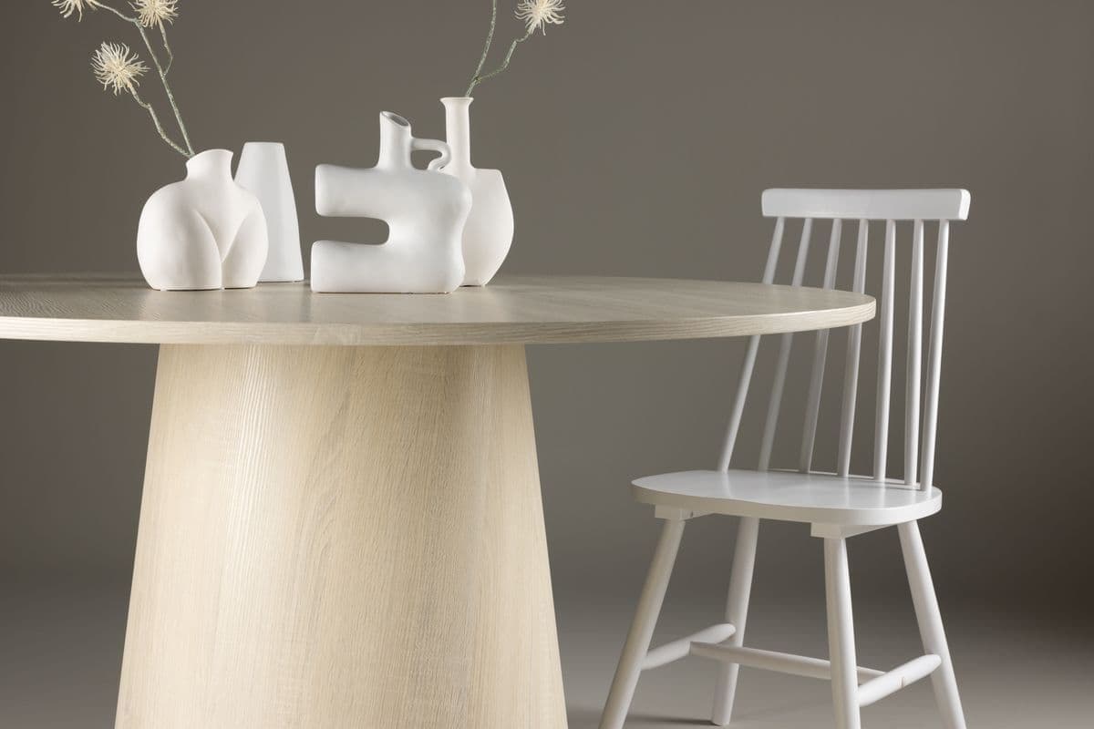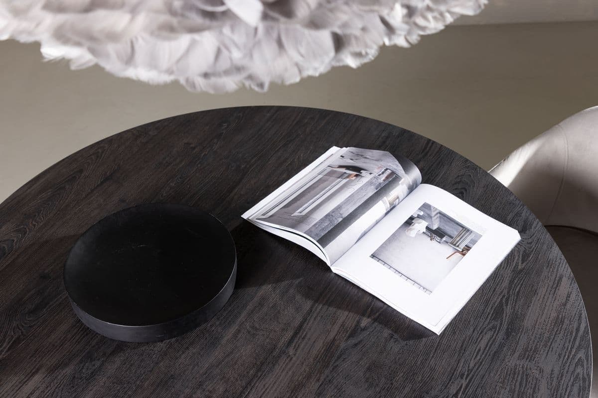 Dining table LANZO impresses with its Scandinavian design and tasteful design! The table has a continuous overall design in black MDF with a thin, round top plate and a twisted cylindrical frame that is centered under the center of the table. The color is timeless and still makes the material’s pattern visible that gives life and movement to the table. Create a stylish eye – catcher in the heart of the home – here no one ends up on the edge!