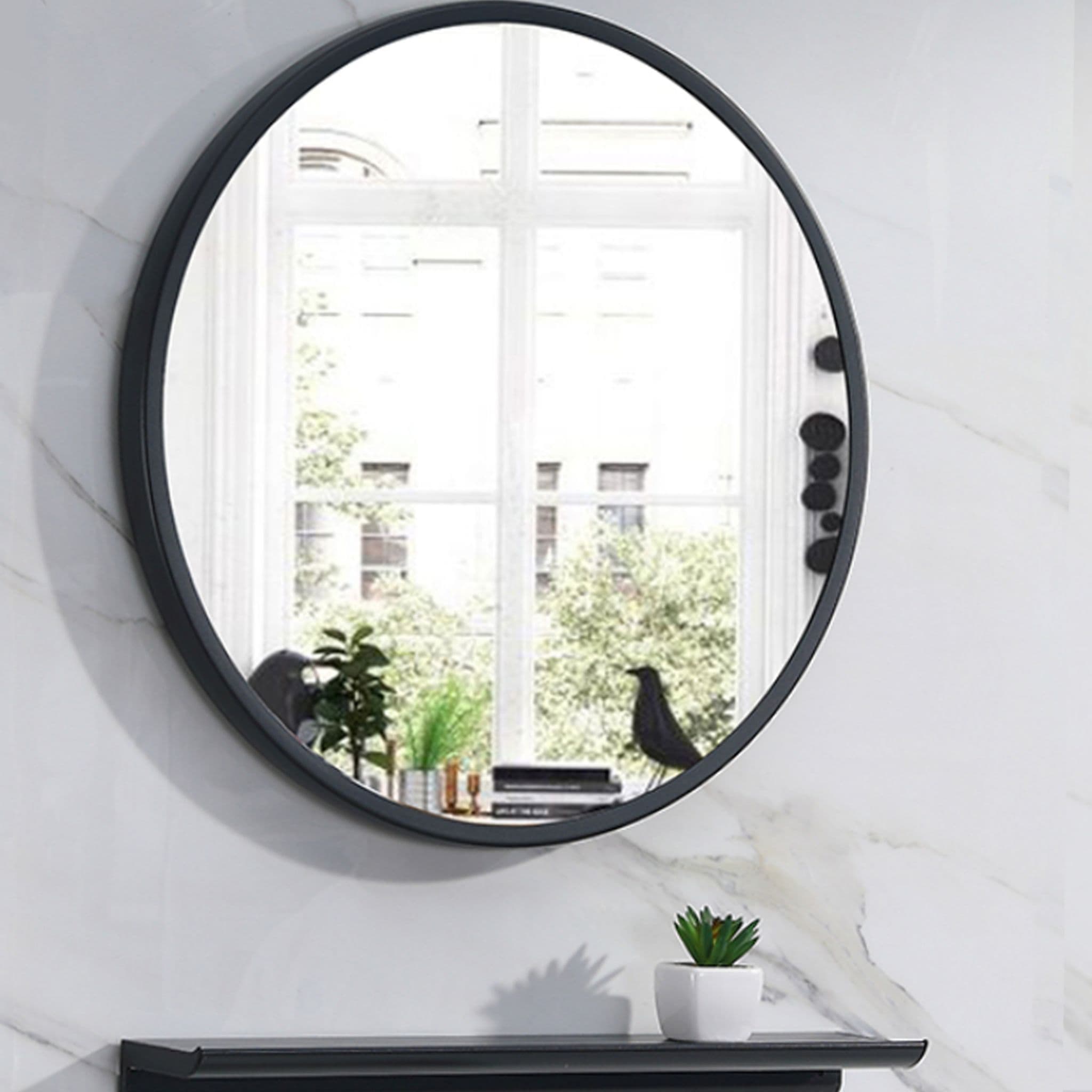 Enlarge the feel of your space with this Nordic-style minimalist round mirror. Its simple black metal frame complements a wide range of interiors and instantly lifts any room.