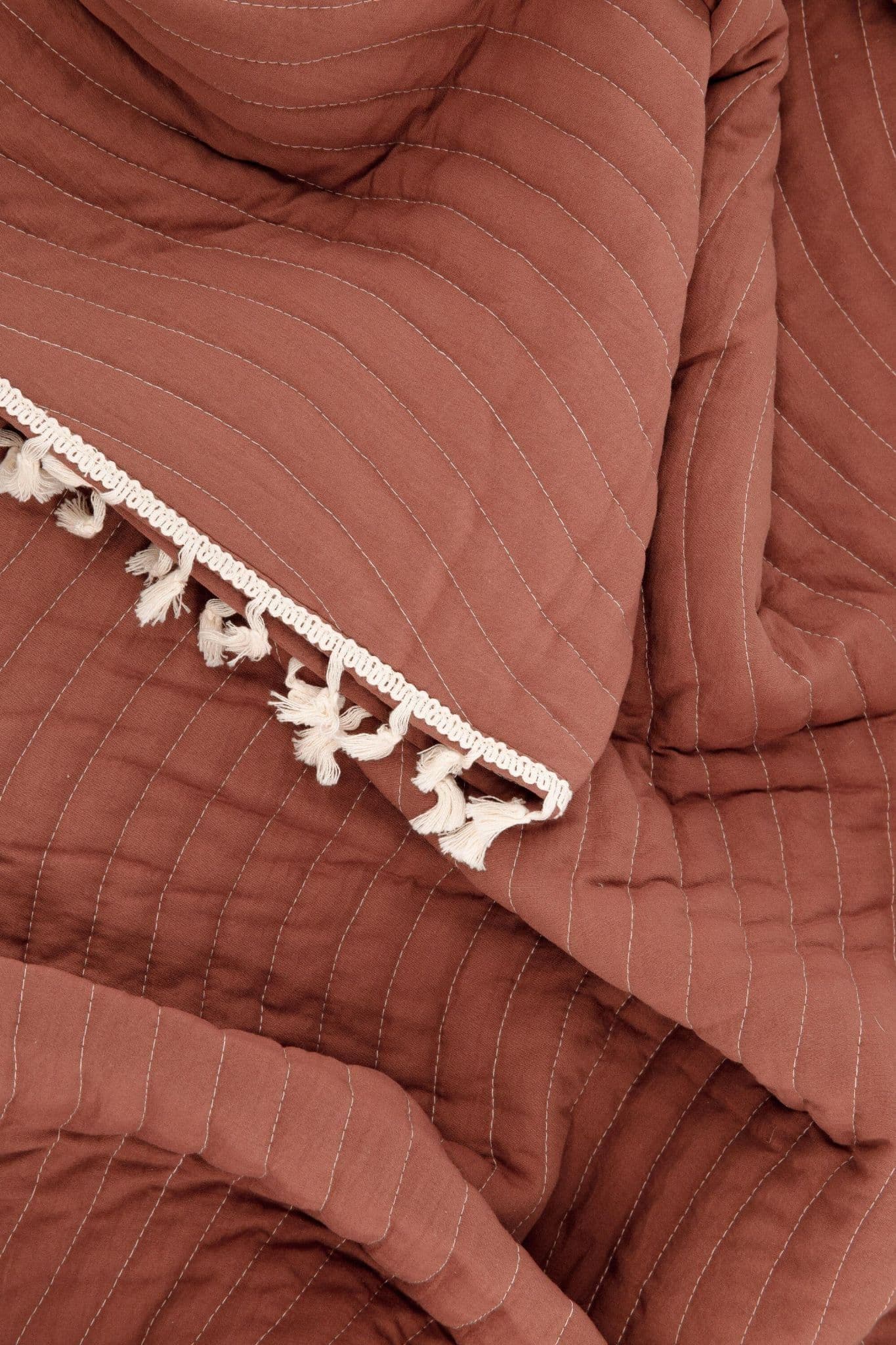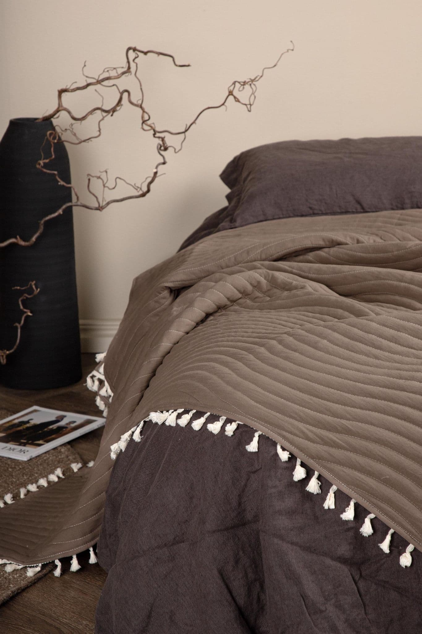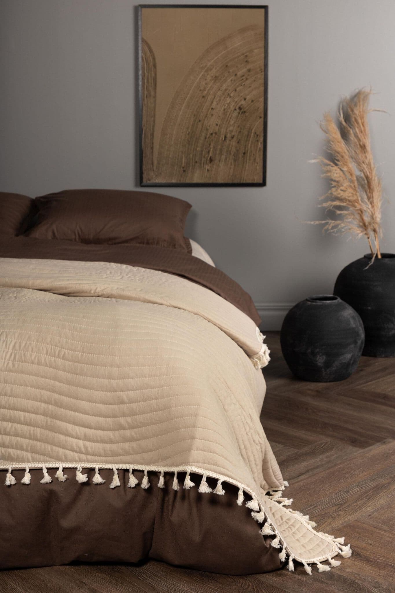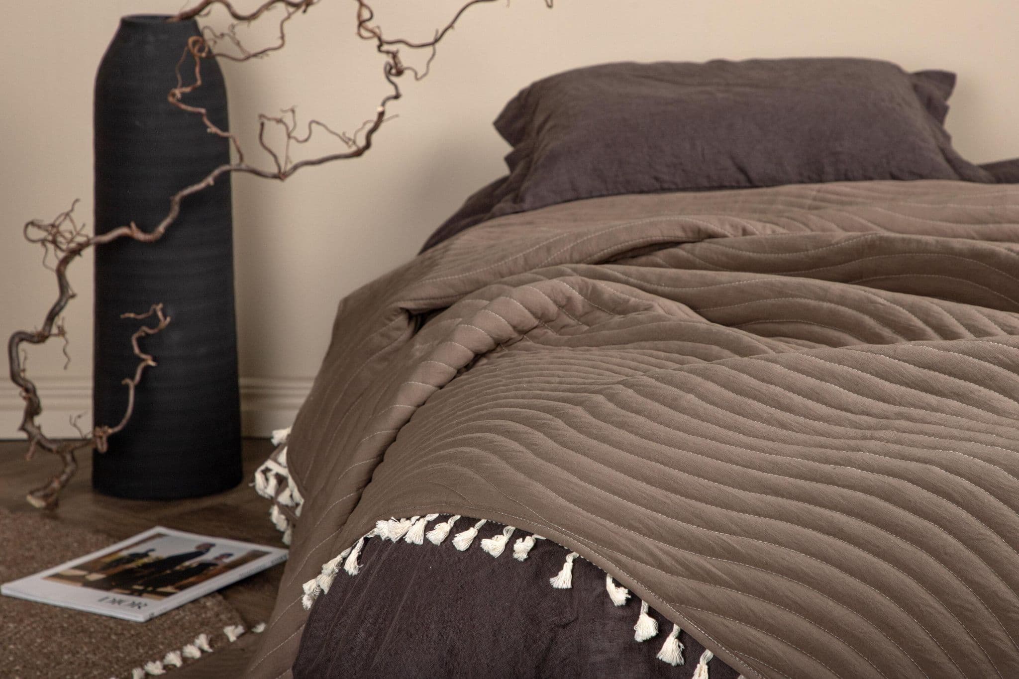 Bed neat and inviting with Lias bedspread, made of microfiber with decorative tassels along the edges. Lias is available in three earthy colors and combines nicely with other interior elements in the room. Make the bed with a bedspread or use layers for a luxurious feel in the bedroom!