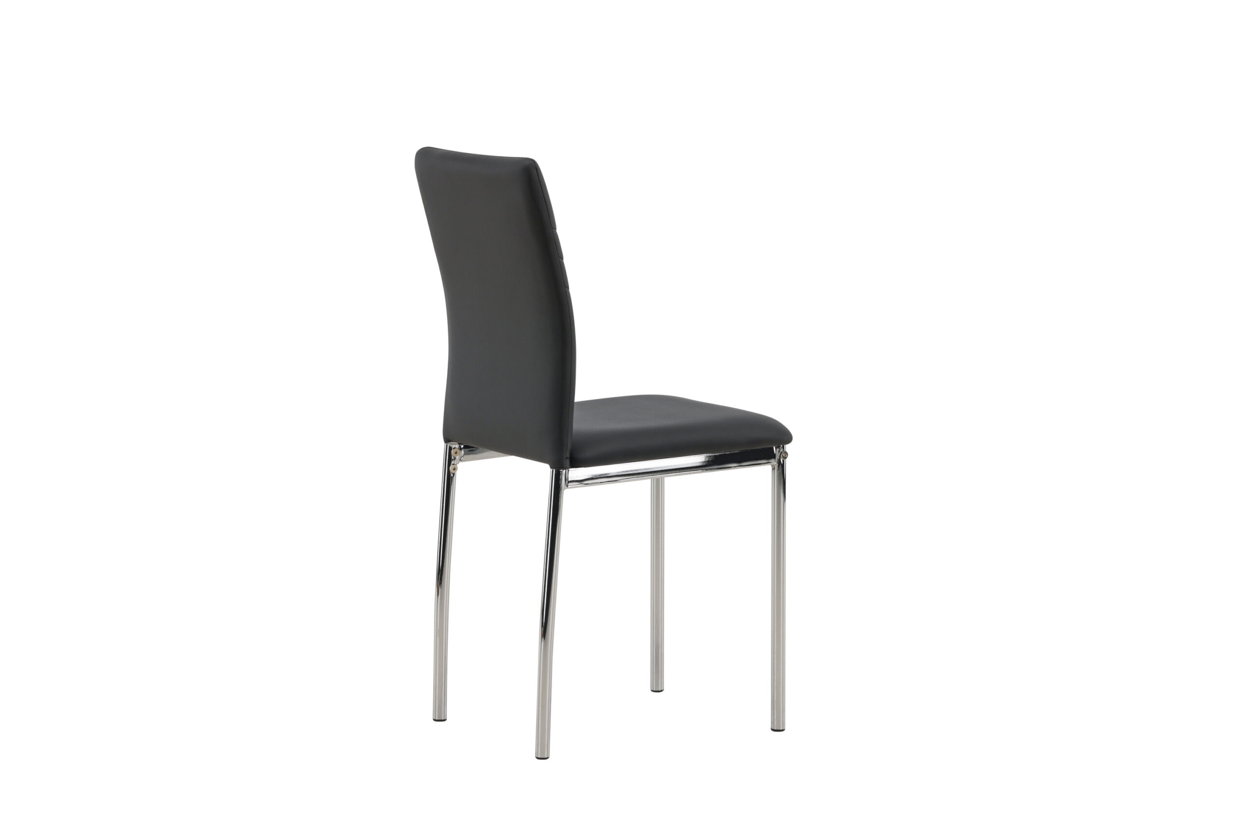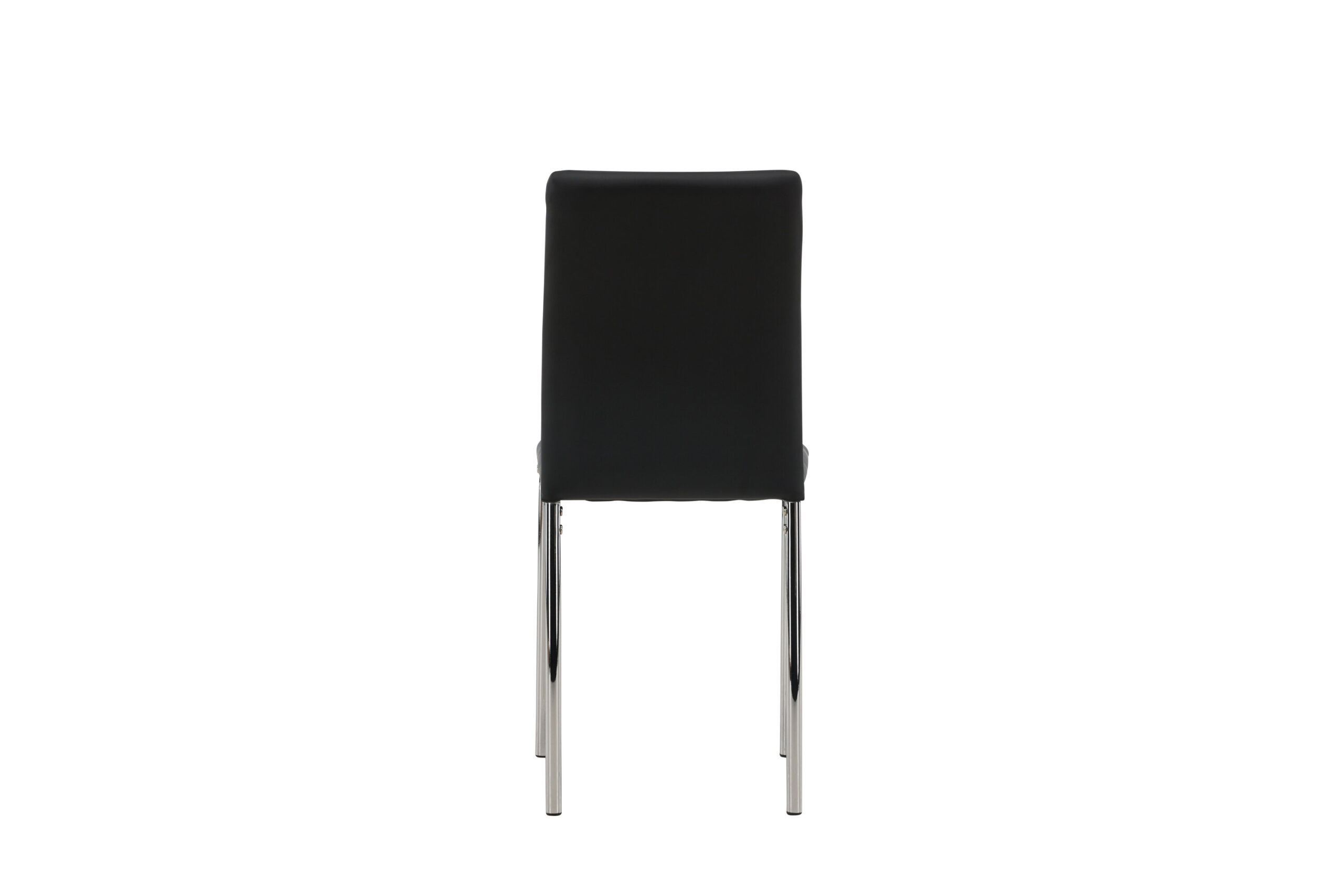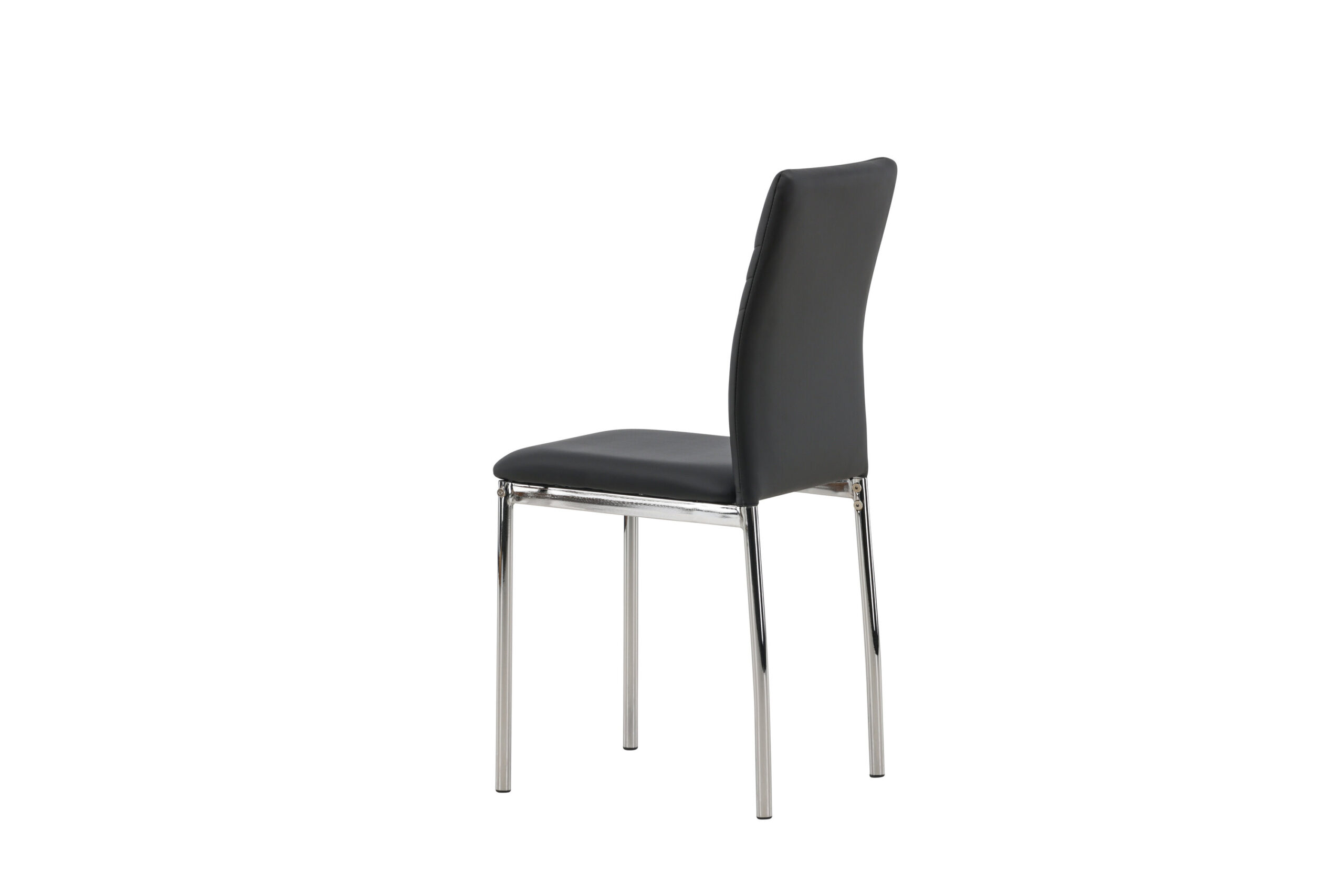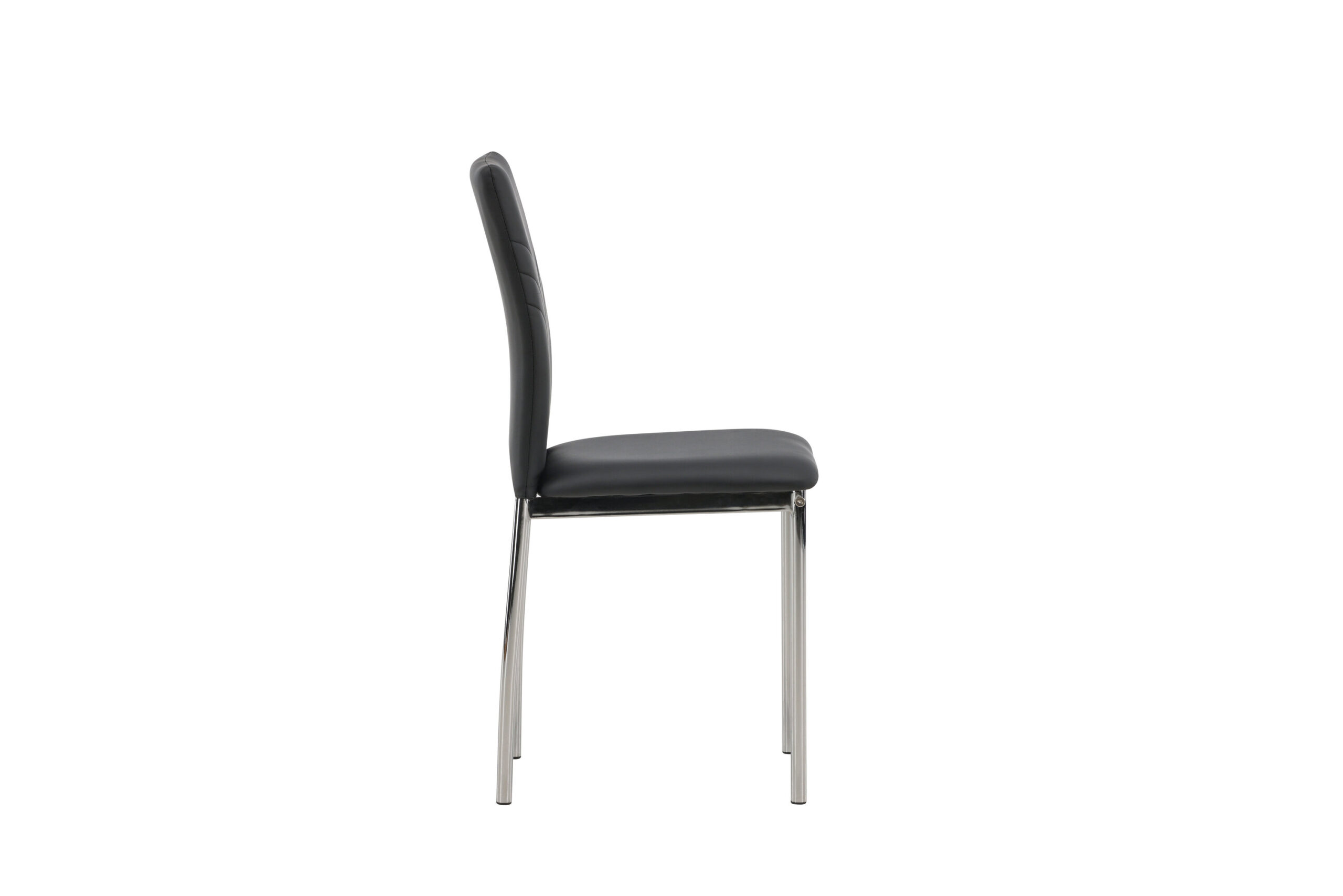 Furnish the heart of the home with dining chairs from the Lily series! This dining chair has Scandinavian design and straight Nordic forms that stand over time. The seat is fully upholstered in black artificial leather and the back features decorative stitching. The chair legs are in chromed steel for an industrial look.