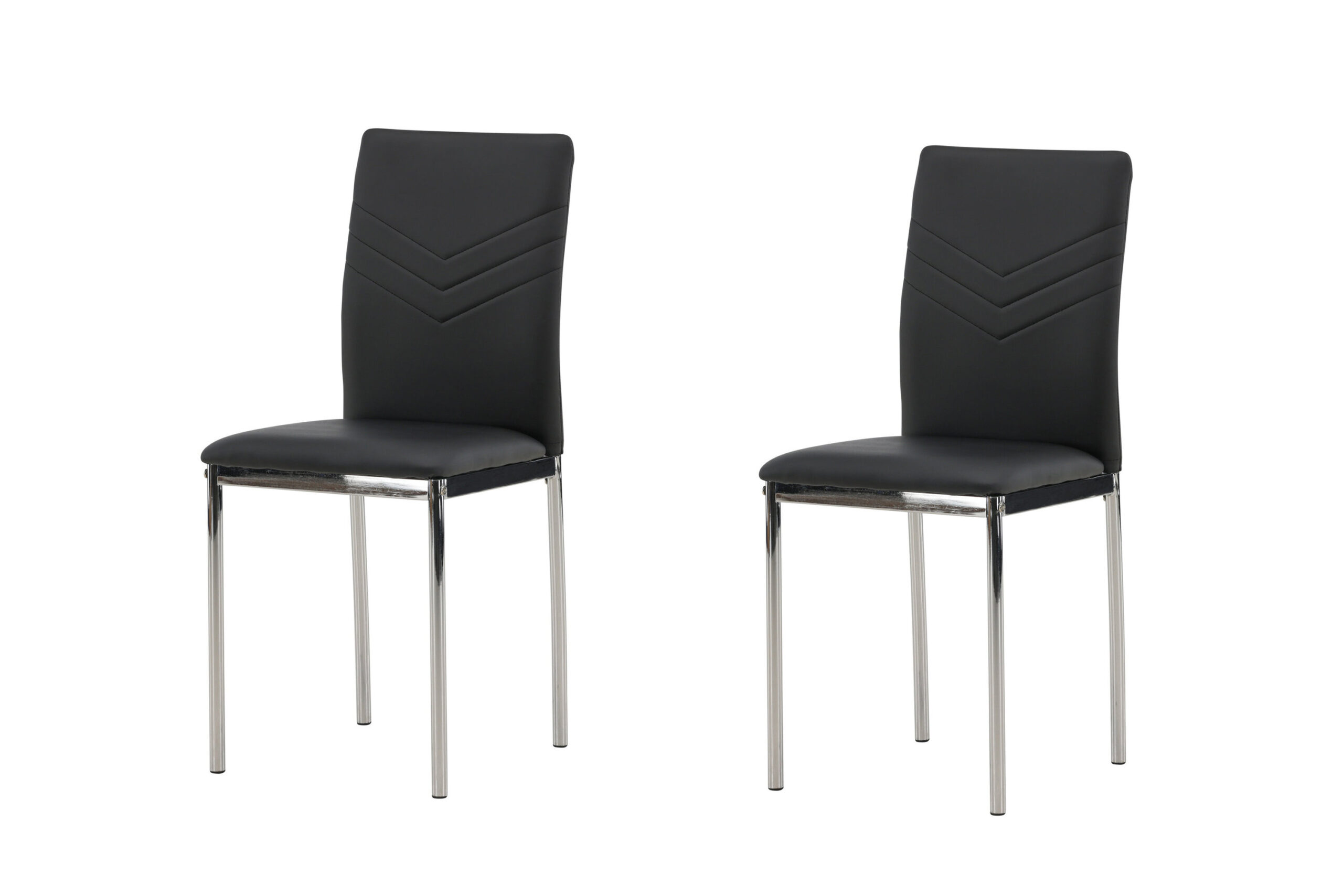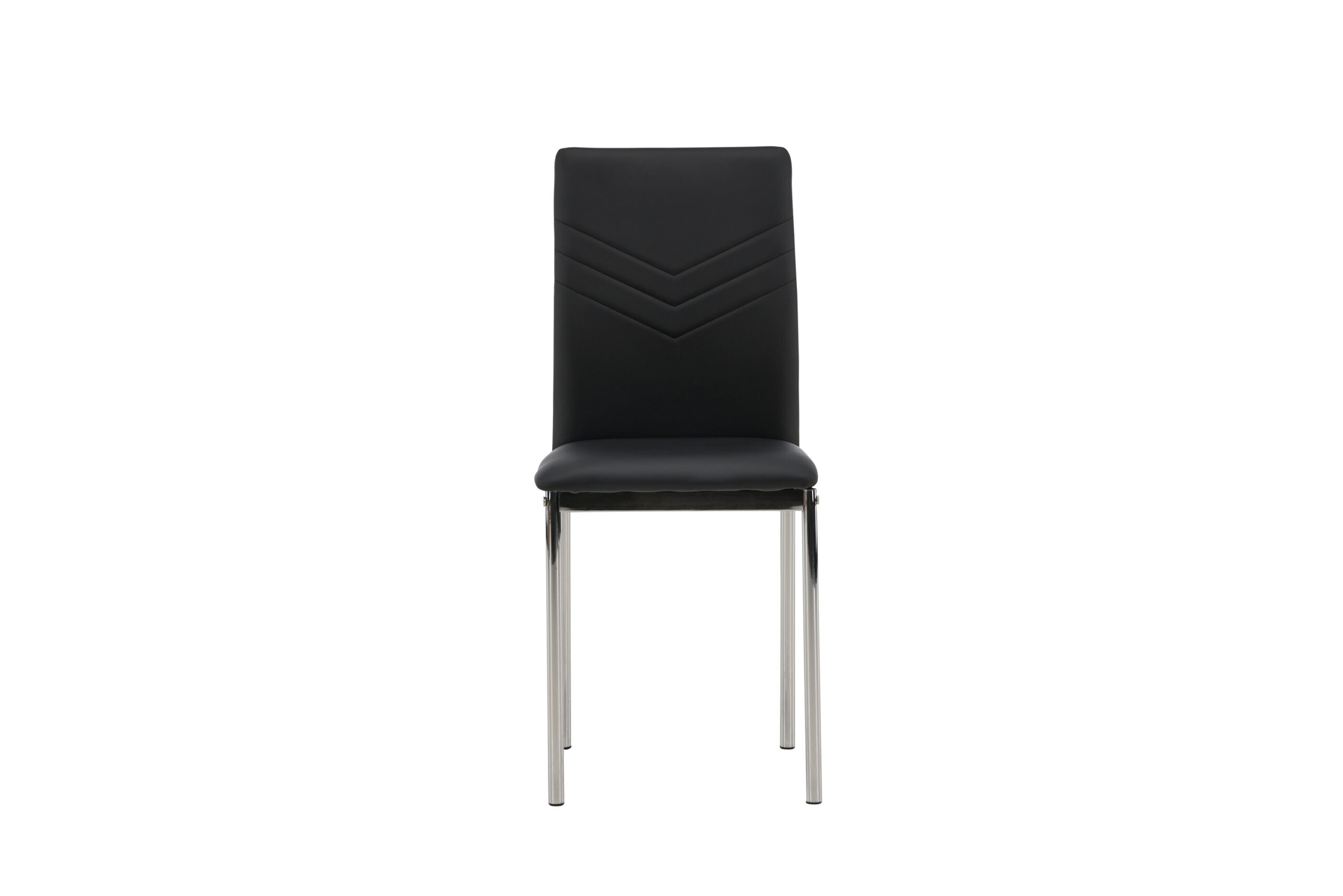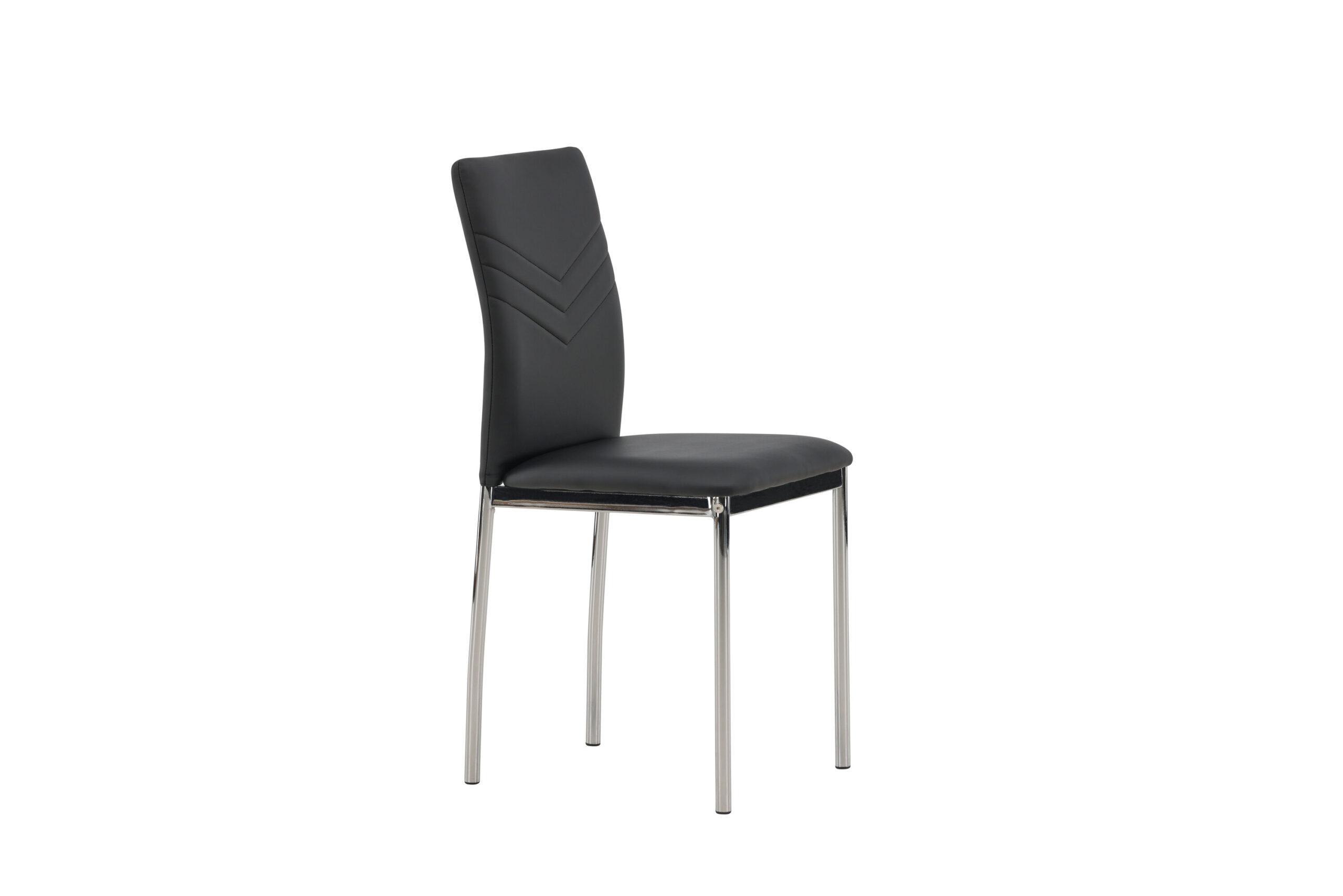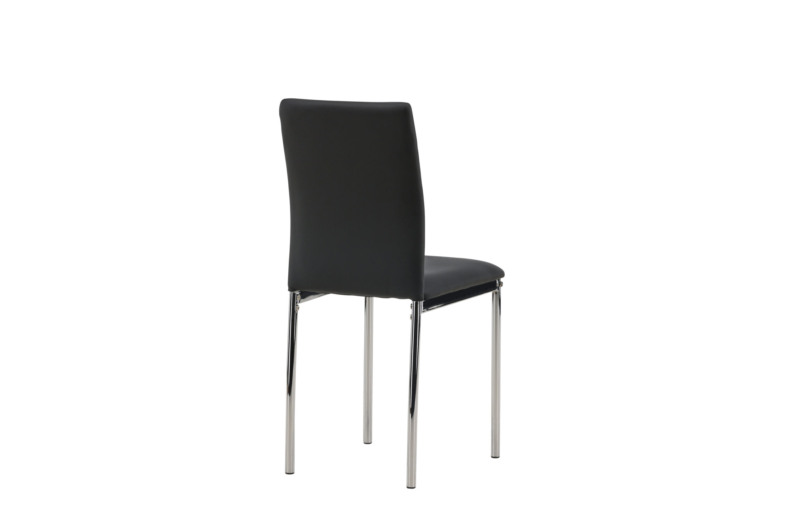 Furnish the heart of the home with dining chairs from the Lily series! This dining chair has Scandinavian design and straight Nordic forms that stand over time. The seat is fully upholstered in black artificial leather and the back features decorative stitching. The chair legs are in chromed steel for an industrial look.