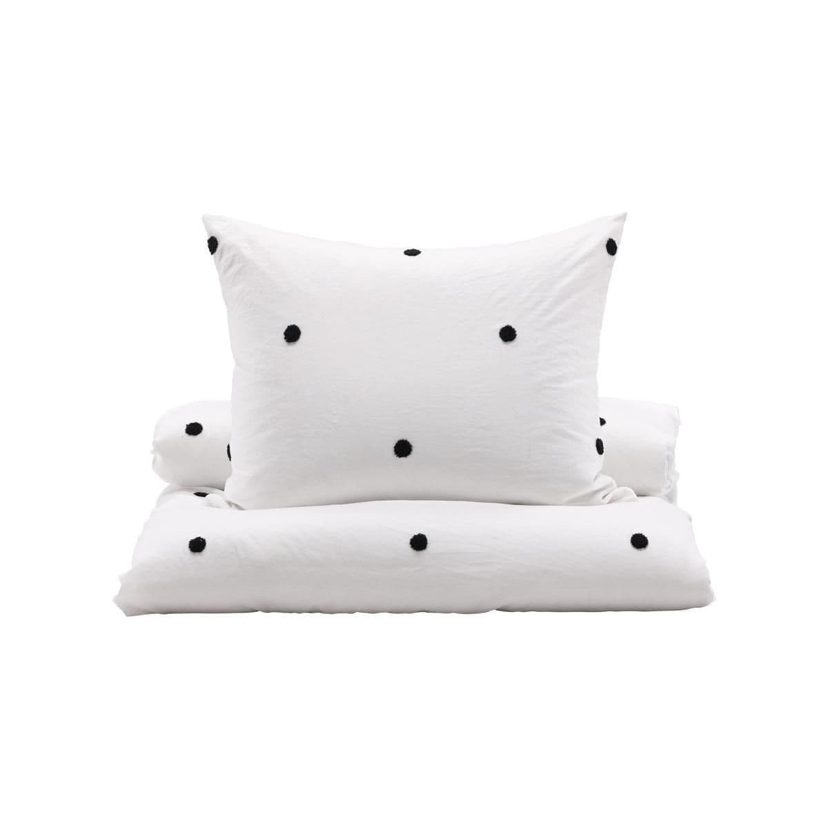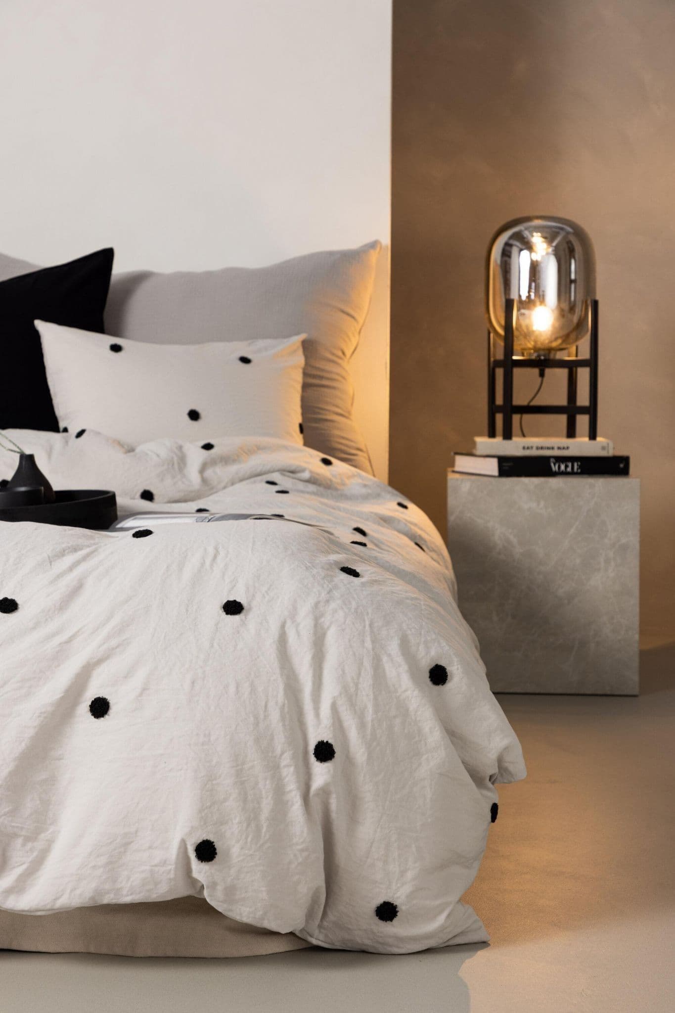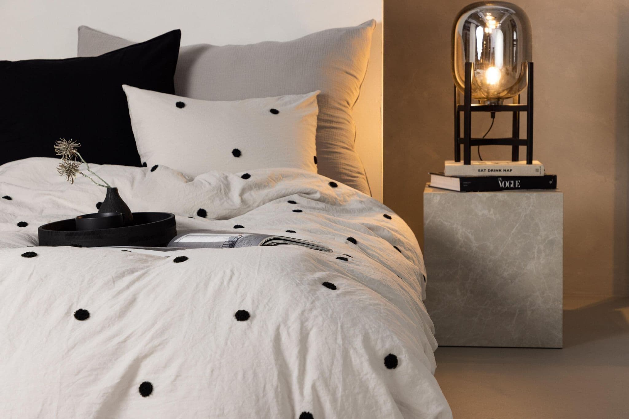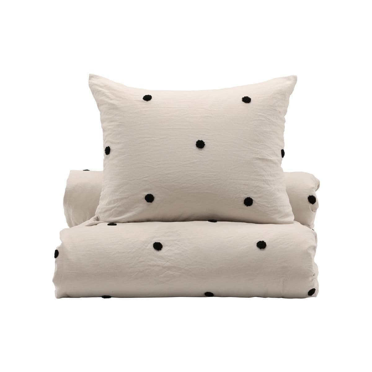 This bed set from the series Loke is just as cuddly to make the bed with as it is nice to sleep on! The bedding is made of durable and comfortable microfiber, which is washable and stands the test of time. The bed set is light gray with black tufted dots that create a lively eye-catcher in trendy colors. Cozy, neat, and nice what more can you want?
