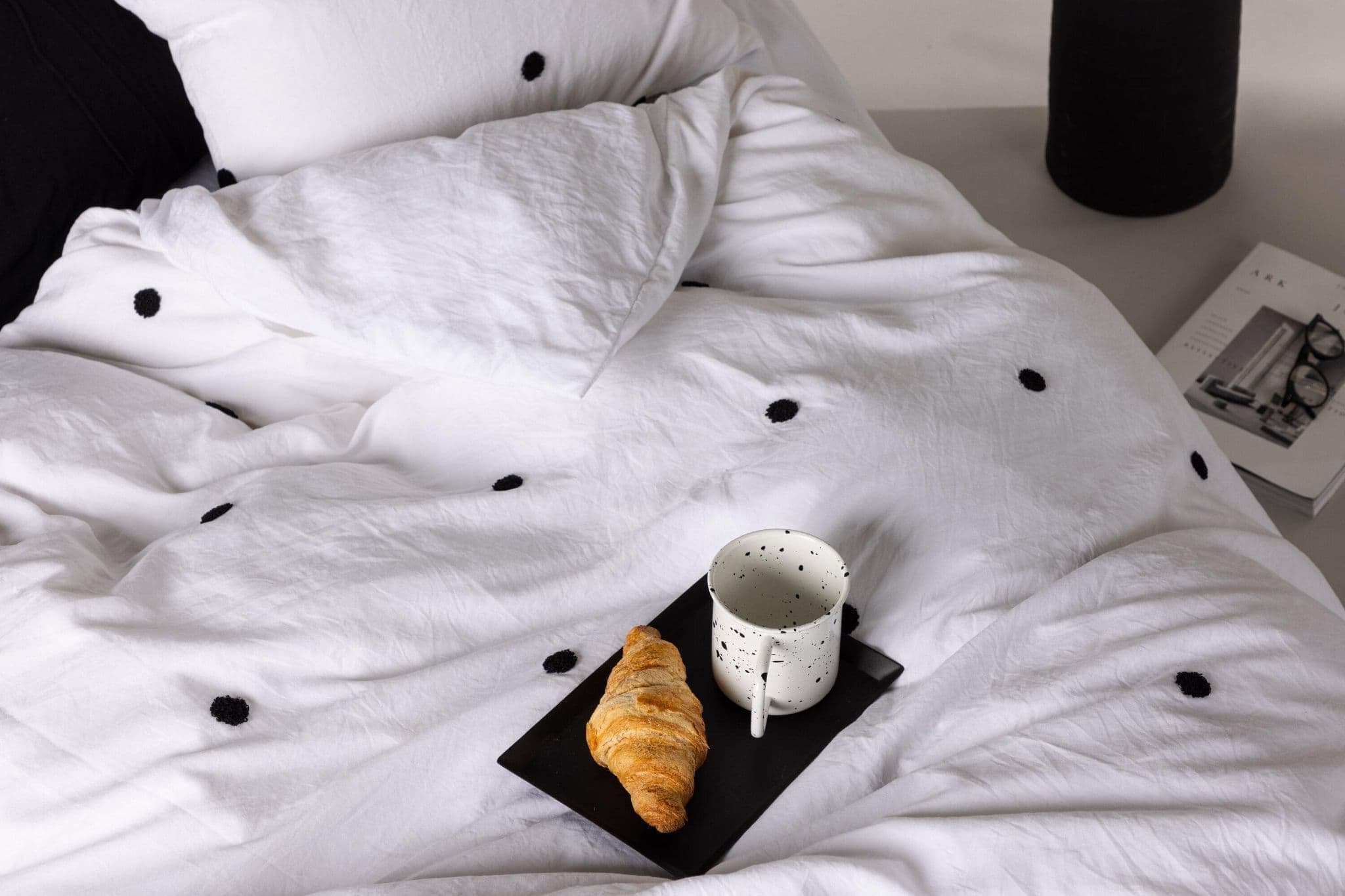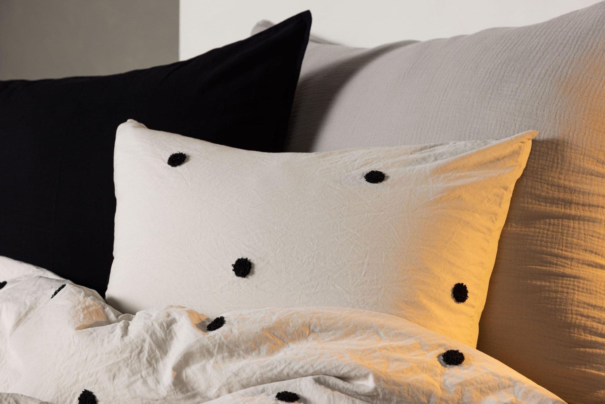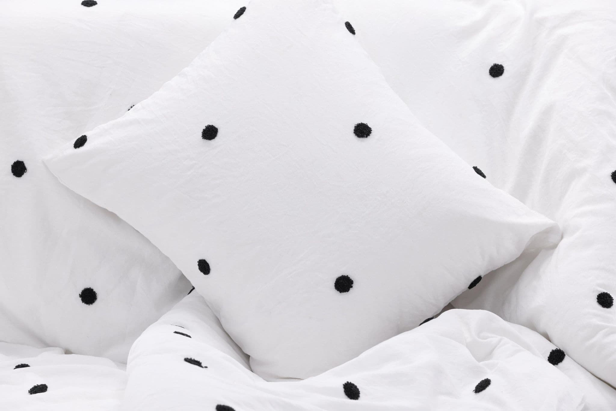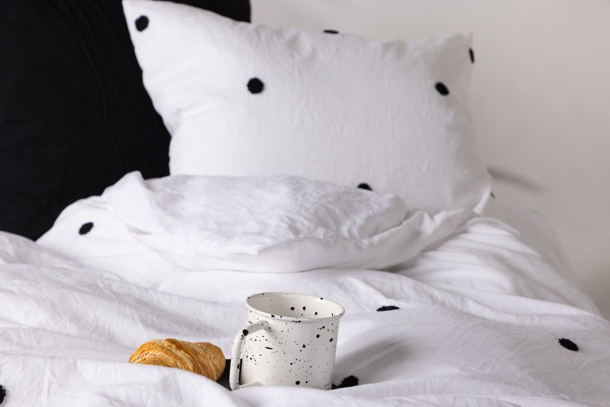 This bed set from the series Loke is just as cuddly to make the bed with as it is nice to sleep on! The bedding is made of durable and comfortable microfiber, which is washable and stands the test of time. The bed set is light gray with black tufted dots that create a lively eye-catcher in trendy colors. Cozy, neat, and nice what more can you want?