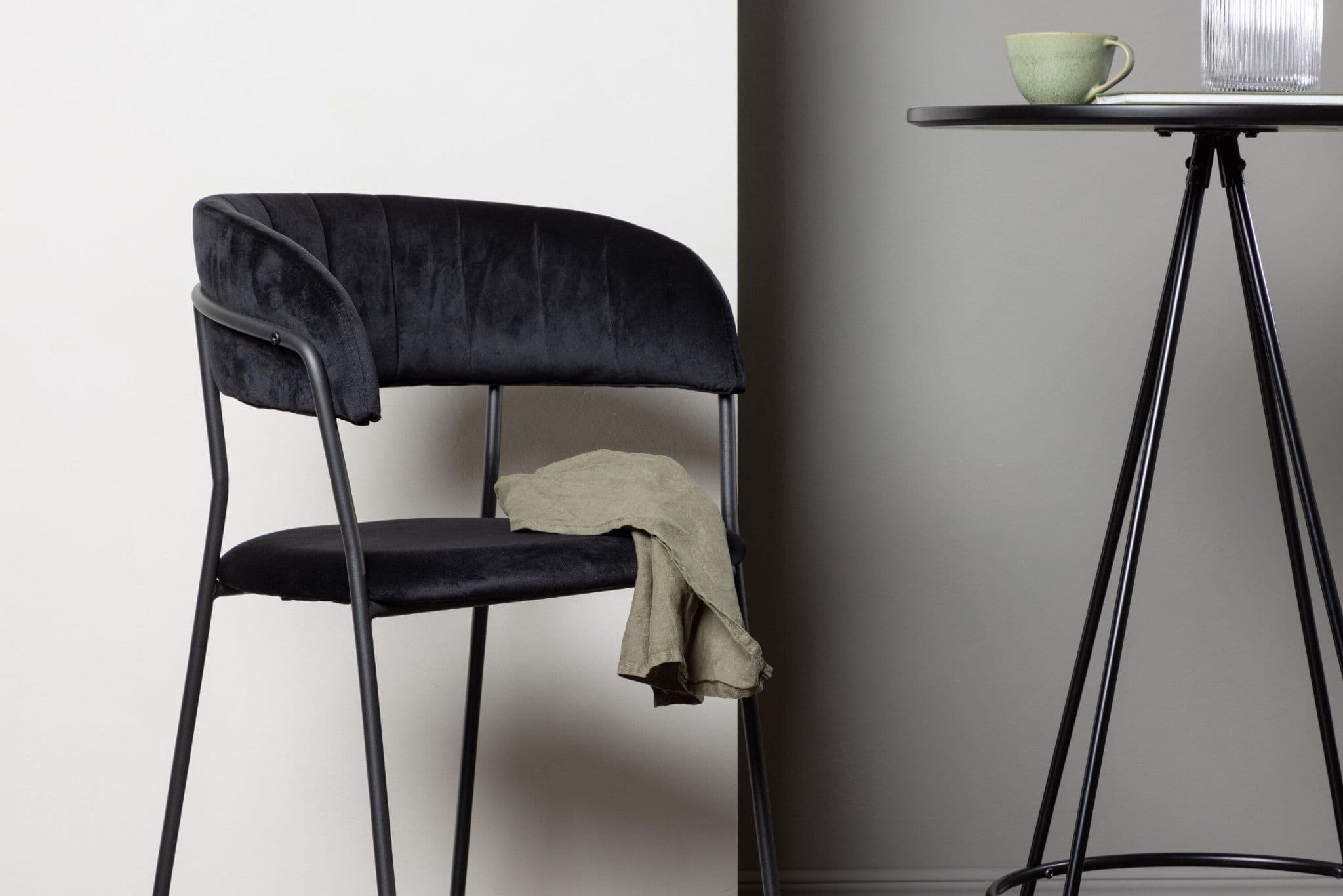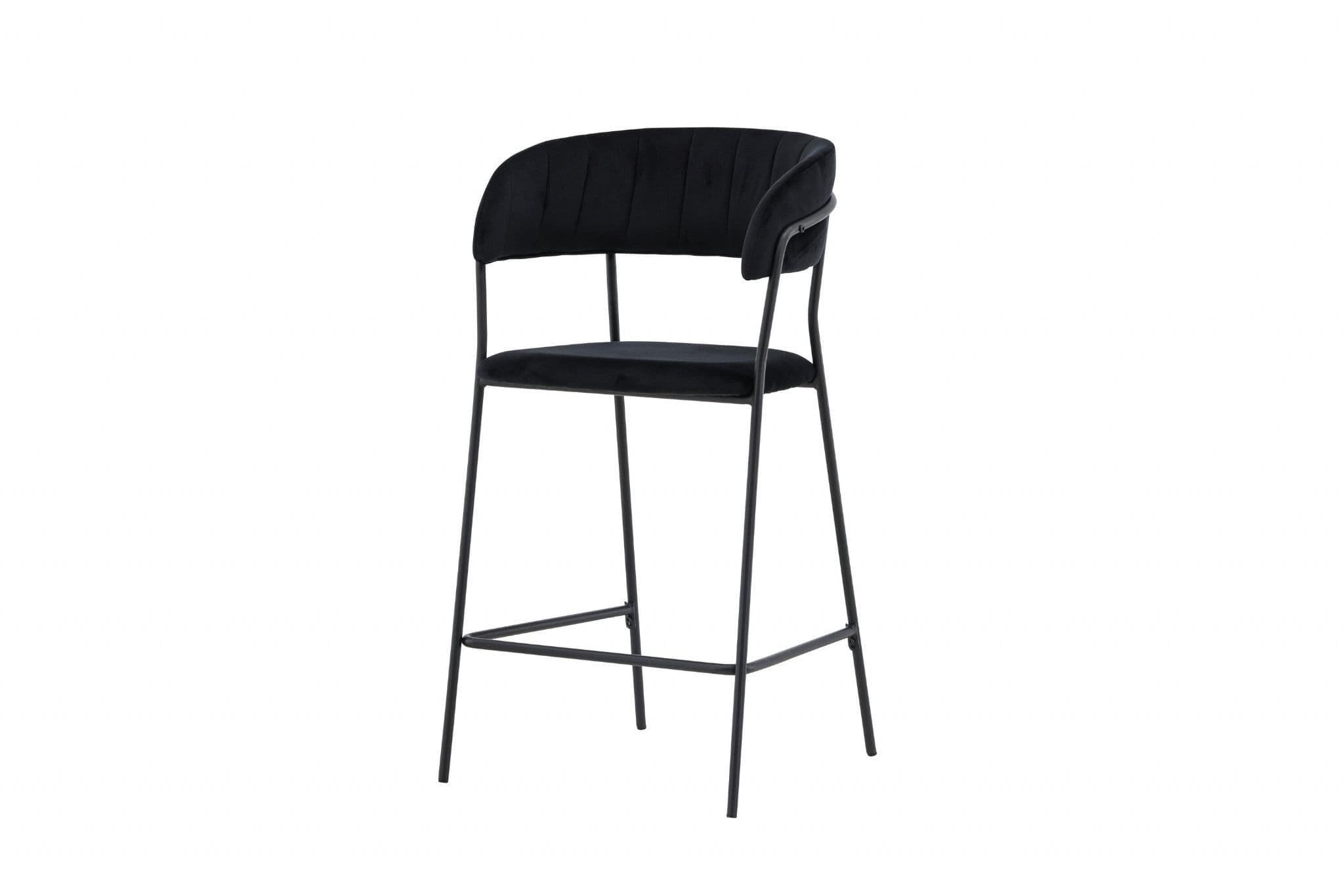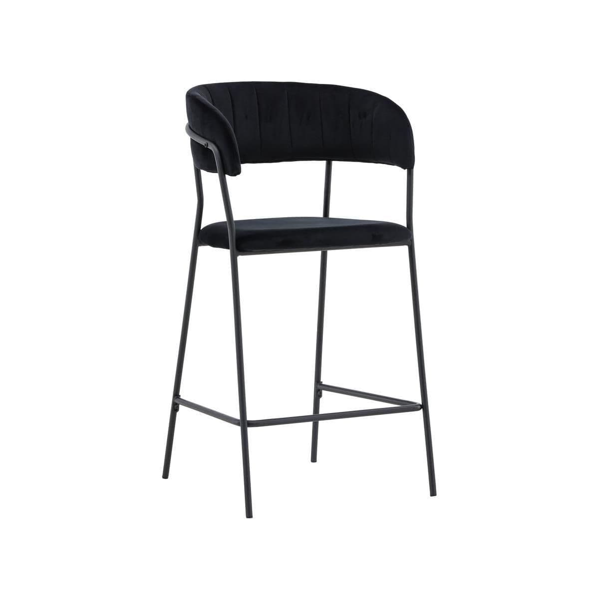 Lui barstool, 2-pack (Black): fully upholstered velvet seat with decorative stitching; gently rounded back; slim black-steel legs with integrated footrest modern, comfortable, and timeless.