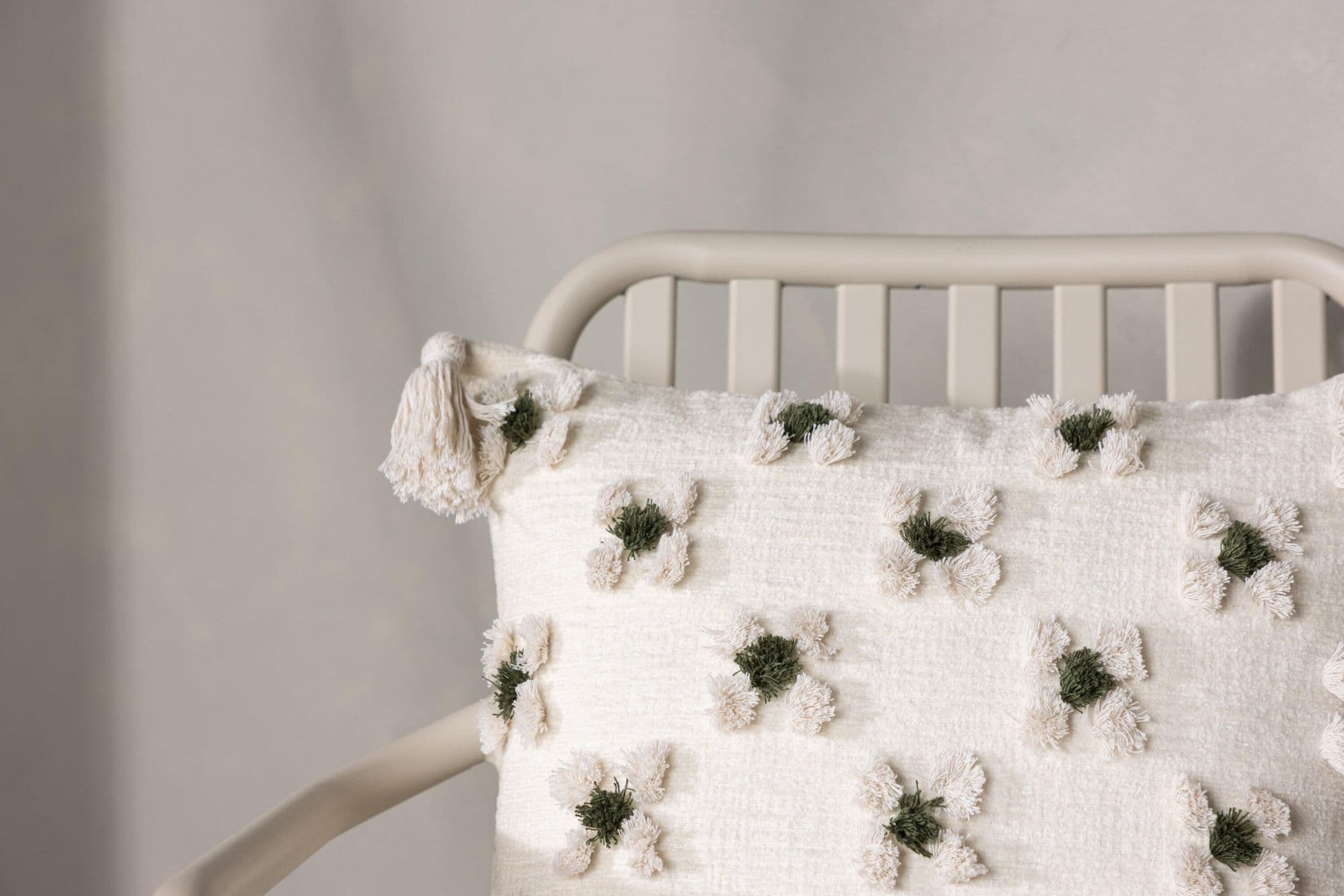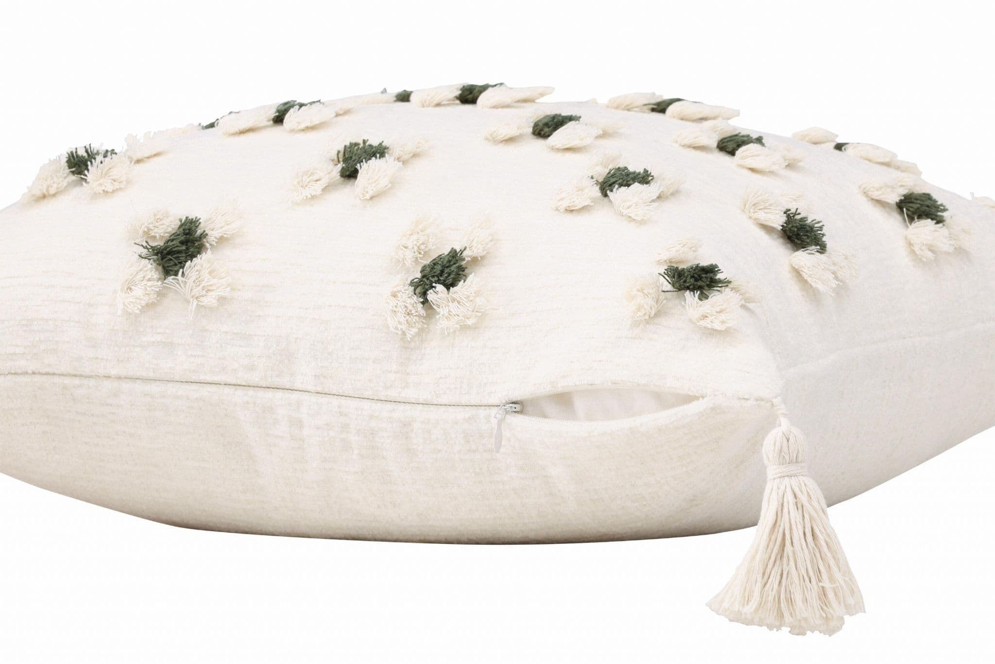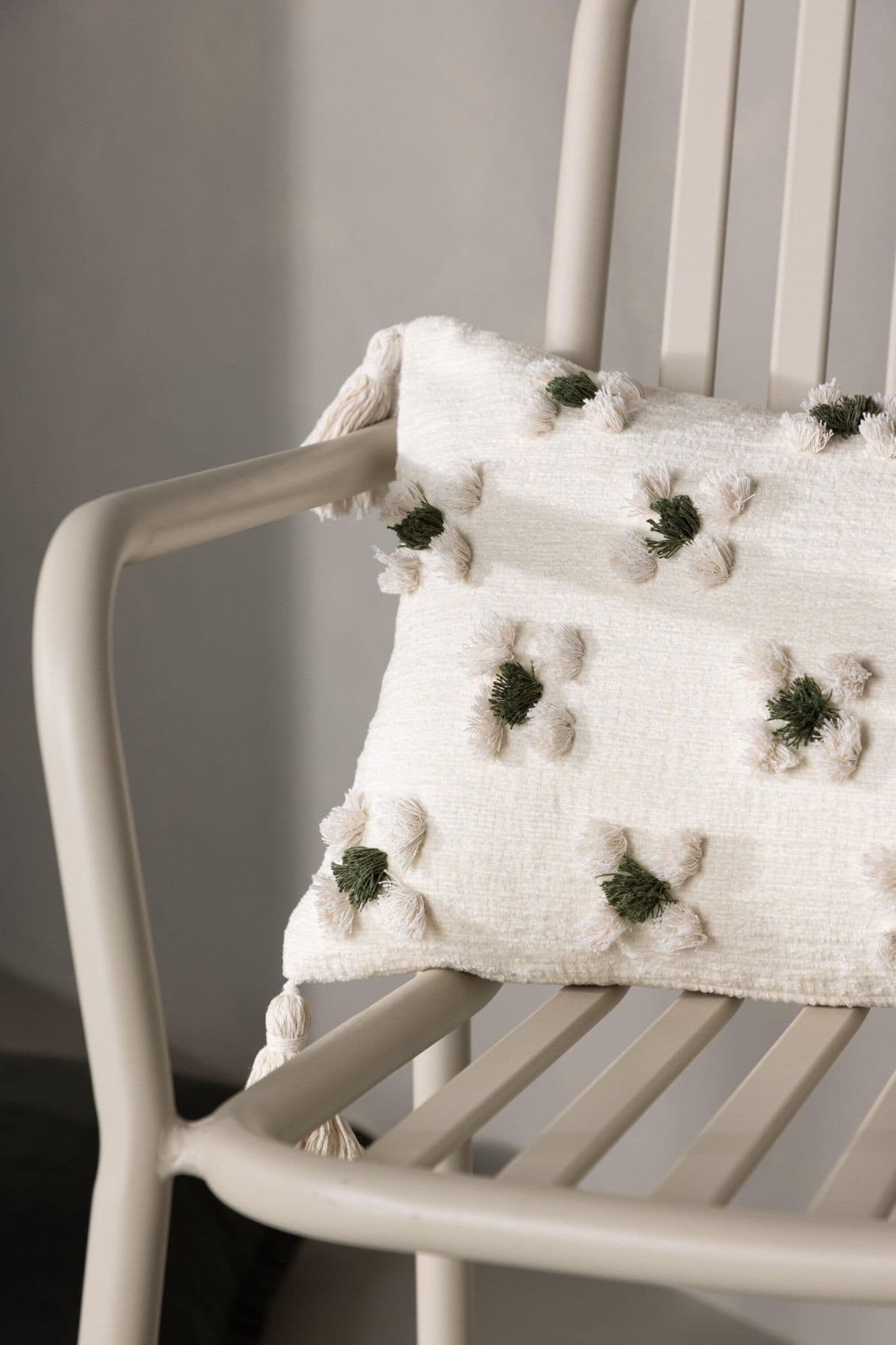 Exit your sofa or armchair with a nice pillow from the Millie series in flattering design! This elongated pillow case in beige Baskulor has a charming floral pattern in tufted green and beige fabric that provides delicious structure to the pillow. With beige tassels in each corner, the pillow gets a nostalgic expression and there is a hidden drag – receiving at the bottom. The fabric is polychenille which contributes to a tasteful and durable texture. Heat the atmosphere in the room with homely pillows!