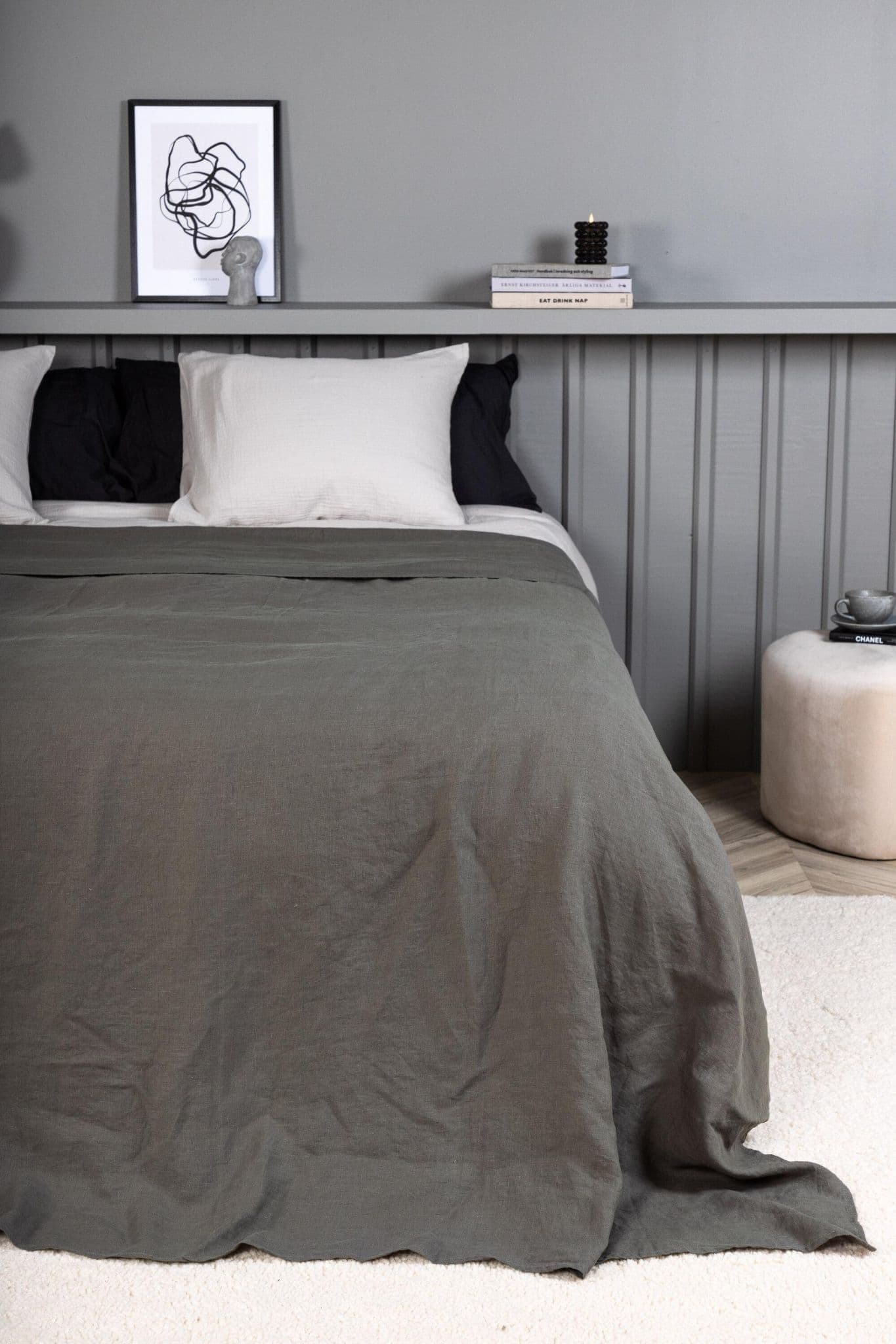 Bedspread in fine quality made of linen in light gray. Linen is a durable material that only gets finer over the years. Dimensions: 260×260. Care advice: Gentle wash 30 degrees.