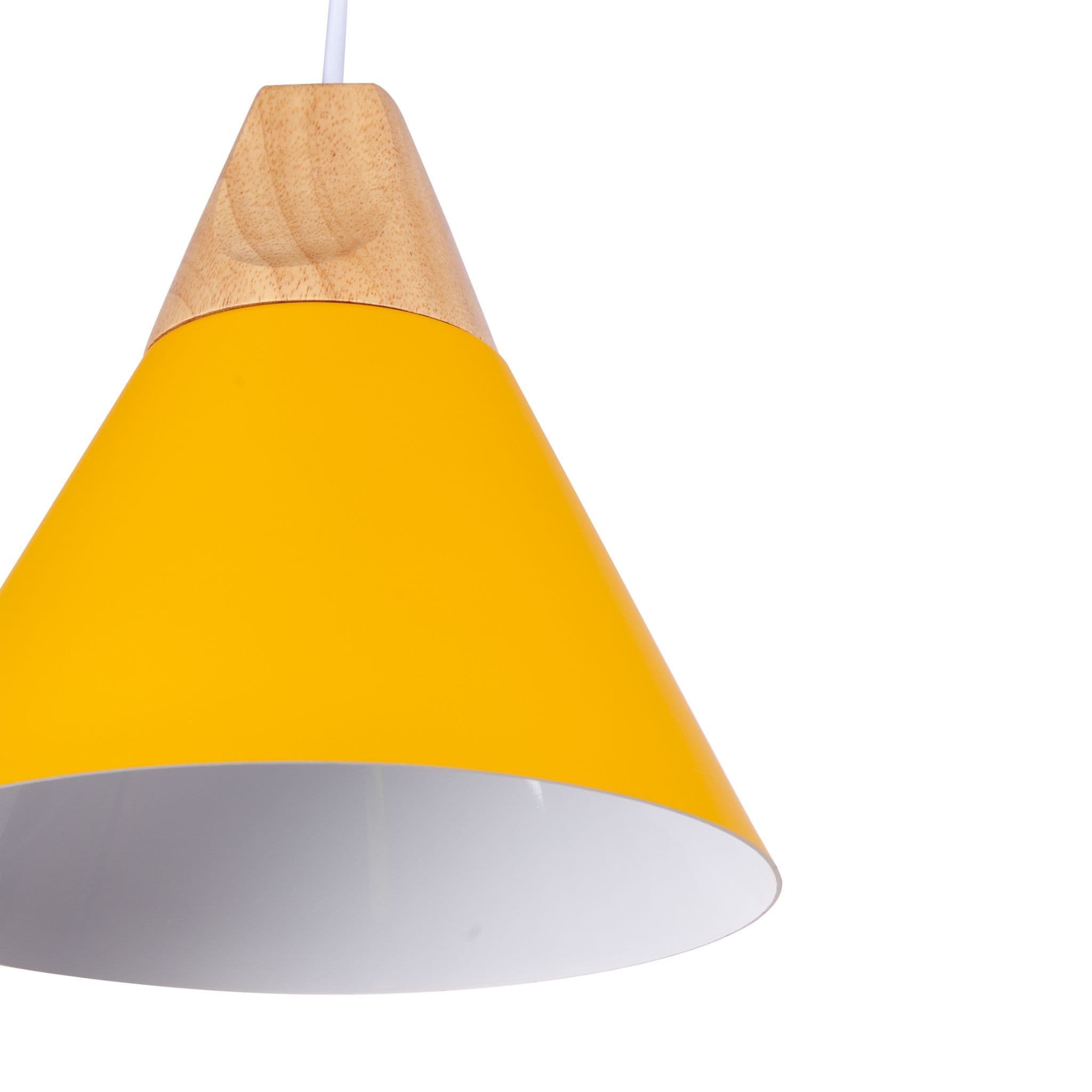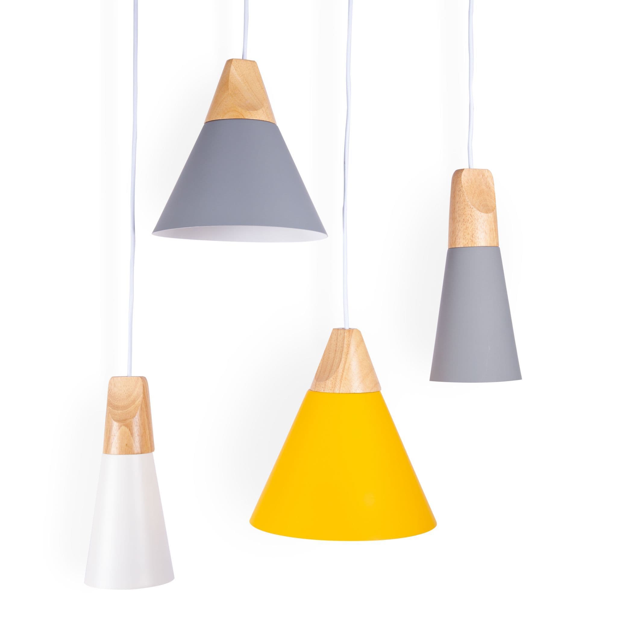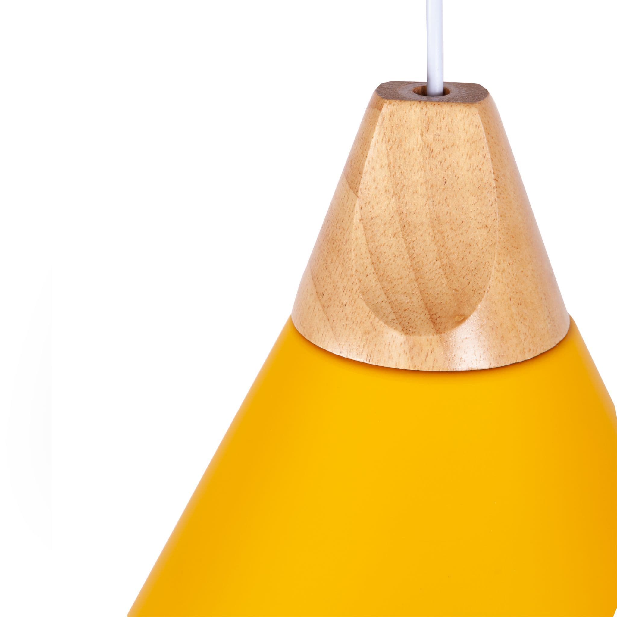 This minimalist pendant light is a perfect accent piece for any living room, bedroom, kitchen or dining room. Inspired by Scandinavian design this simple pendant will compliment any contemporary environment, abailable in white, grey and yellow. The cone shape is topped with a wooden detail and illuminated your interiors with a warm glow. Instantly upgrade your home with Liniear, clean and modern Mmilo Design. Voltage: 110-240 VBulb not included Cord Length- 120(cm).