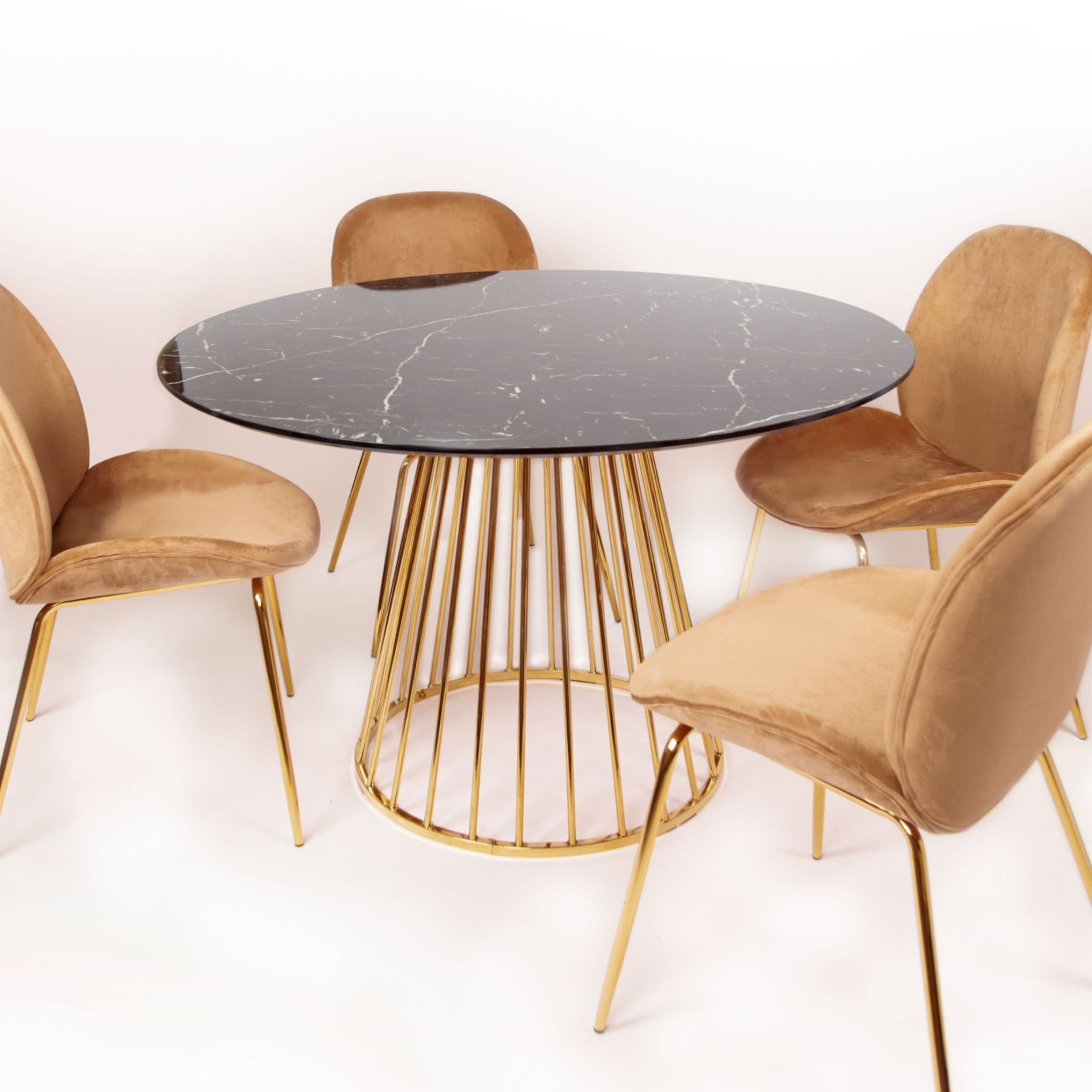 Dine in style with this sophisticated dining table. This pristine artificial-marble table is sleek and easily matches modern interiors. Choose a black or white marble-effect top, both available in multiple sizes. Love the minimal design? Your pocket will too. Assembly required. Packaged and delivered in two boxes.