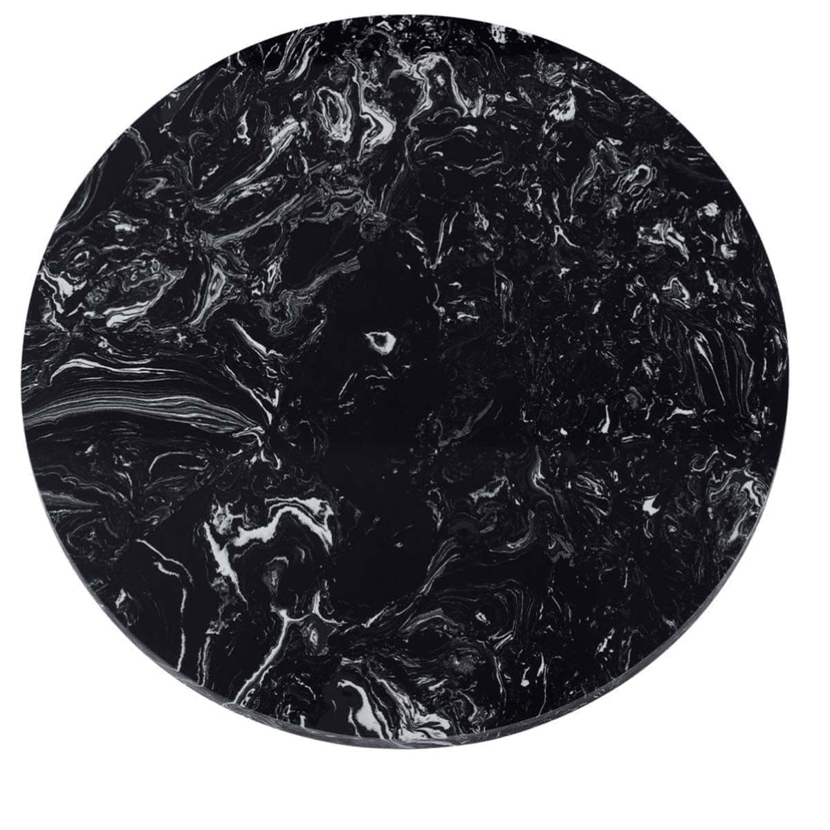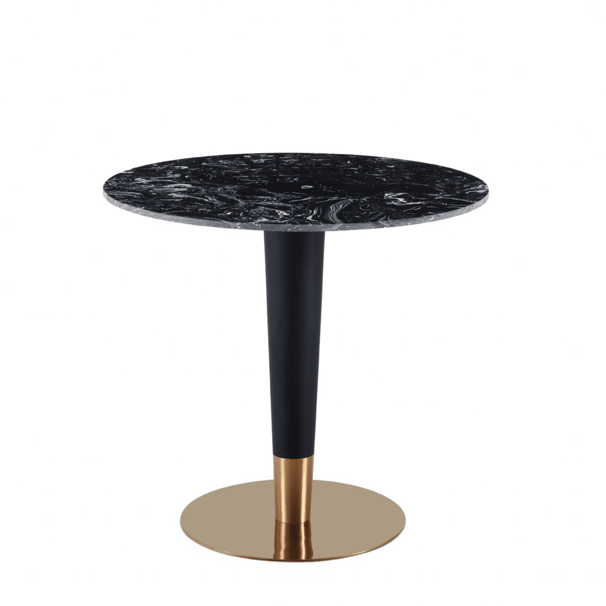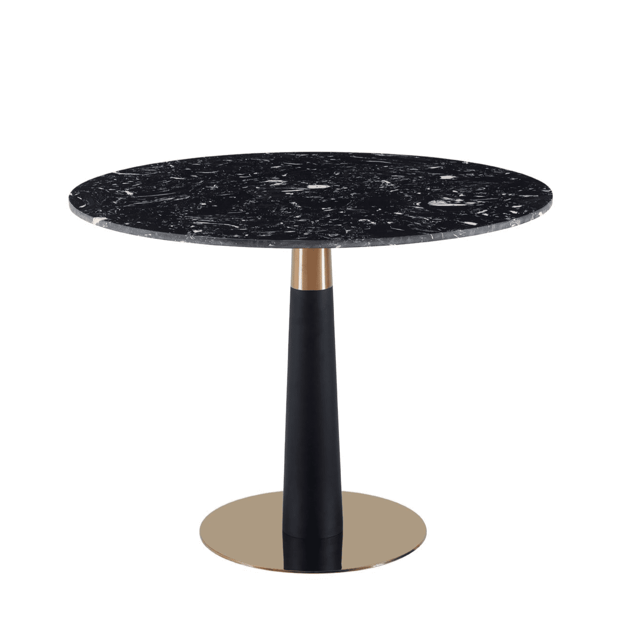 This sleek and sophisticated piece is sure to impress The design conception was modelled after the Belgian Black and its extraordinary aesthetic With a supremely crafted engineered marble top this table echoes superior character Each highly polished table top comes with a singular table leg available in black or gold The wide sturdy base completes the composition These truly interchangeable tables are a delightful addition to any room.