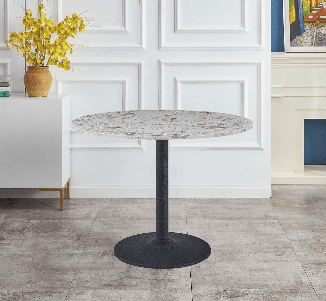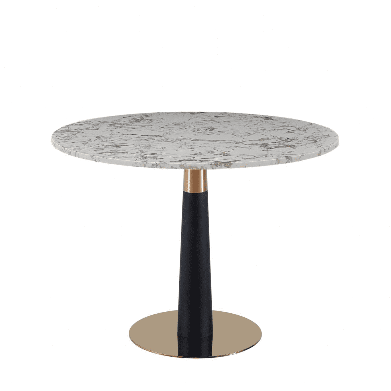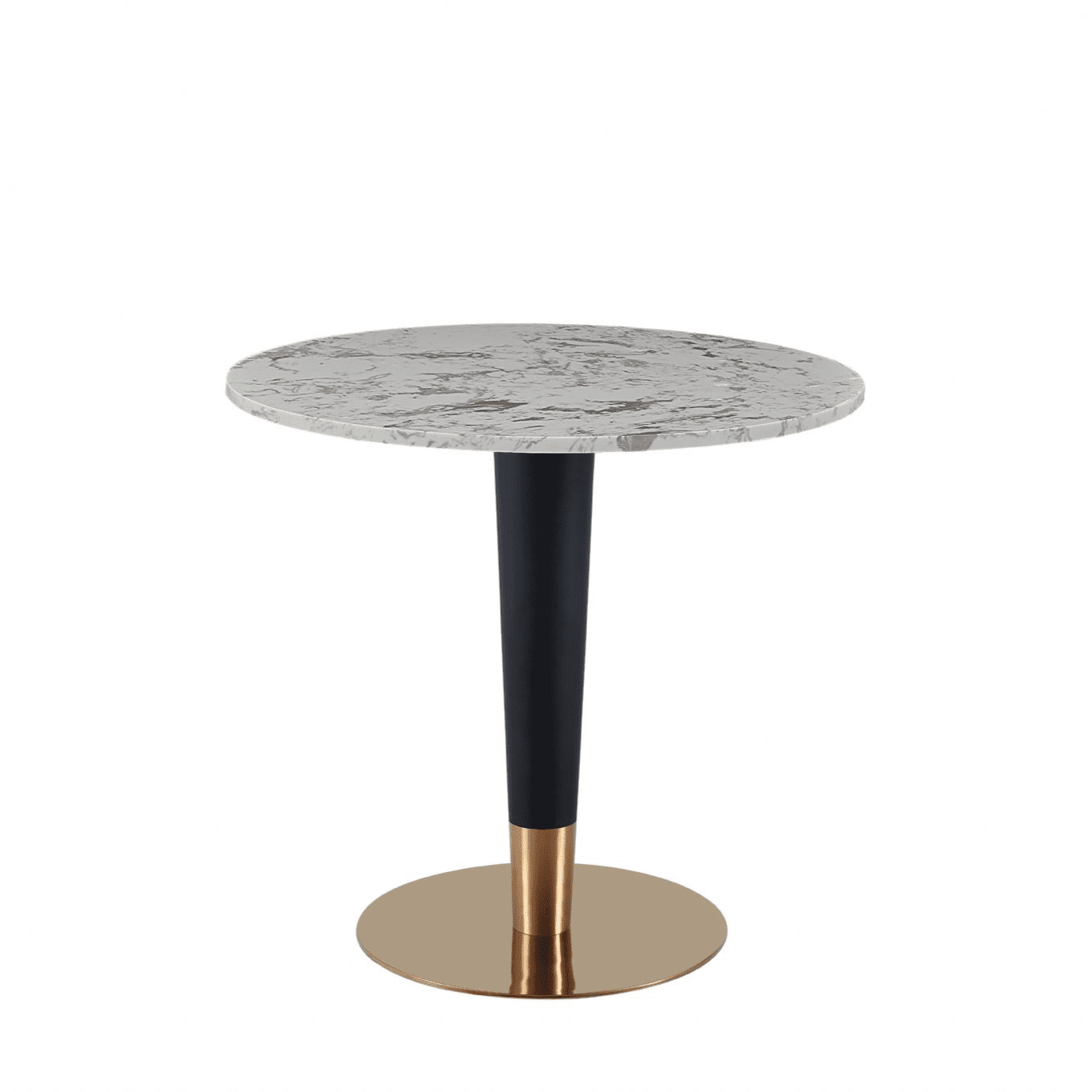 This sleek and sophisticated piece is sure to impress The design conception was modelled after the Belgian Black and its extraordinary aesthetic With a supremely crafted engineered marble top this table echoes superior character Each highly polished table top comes with a singular table leg available in black or gold The wide sturdy base completes the composition These truly interchangeable tables are a delightful addition to any room.