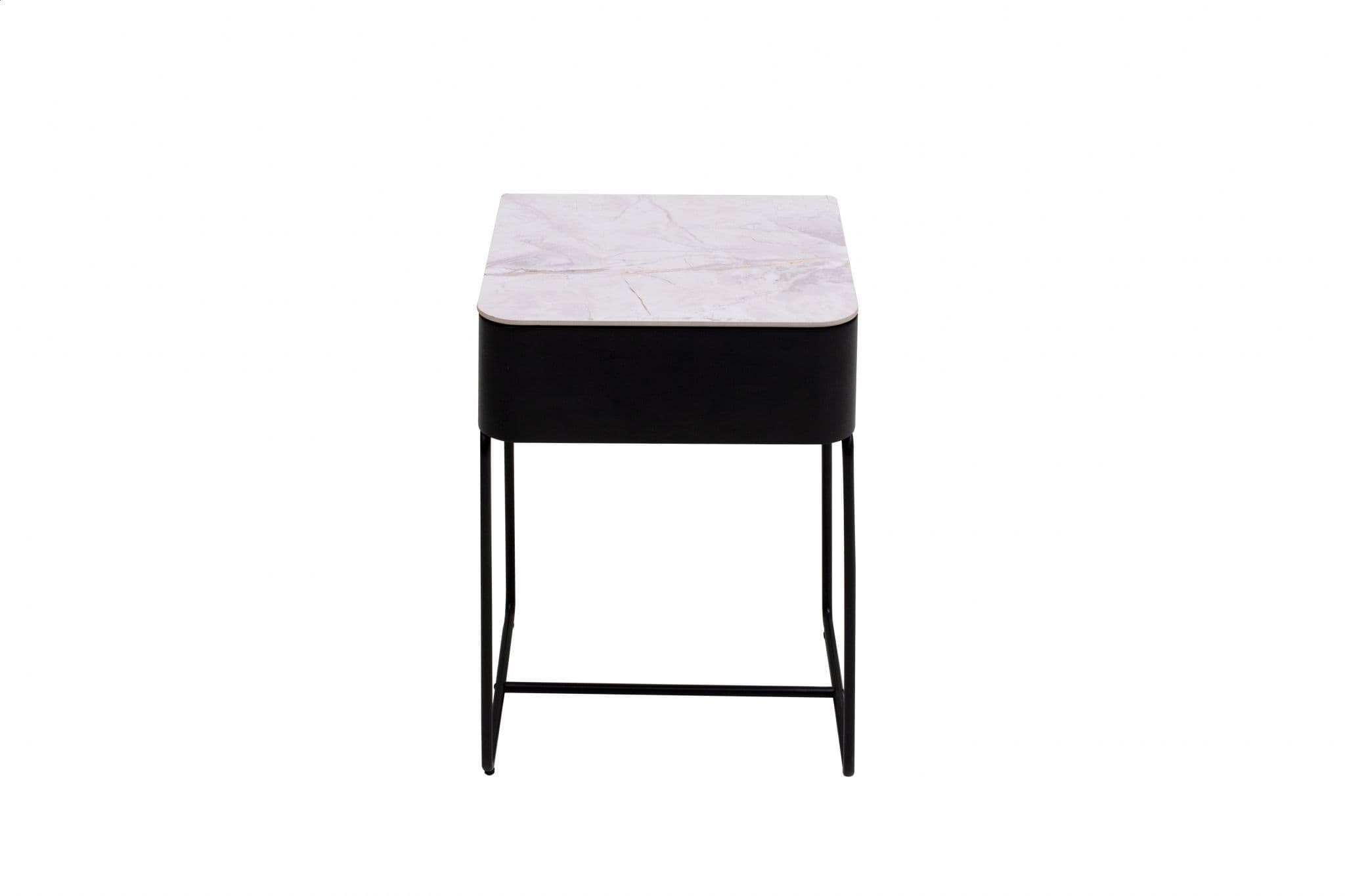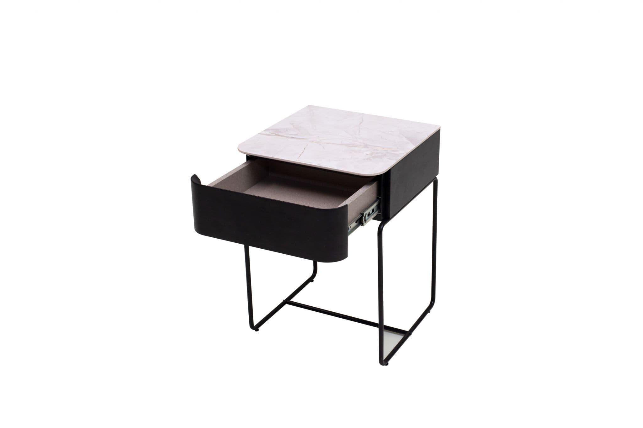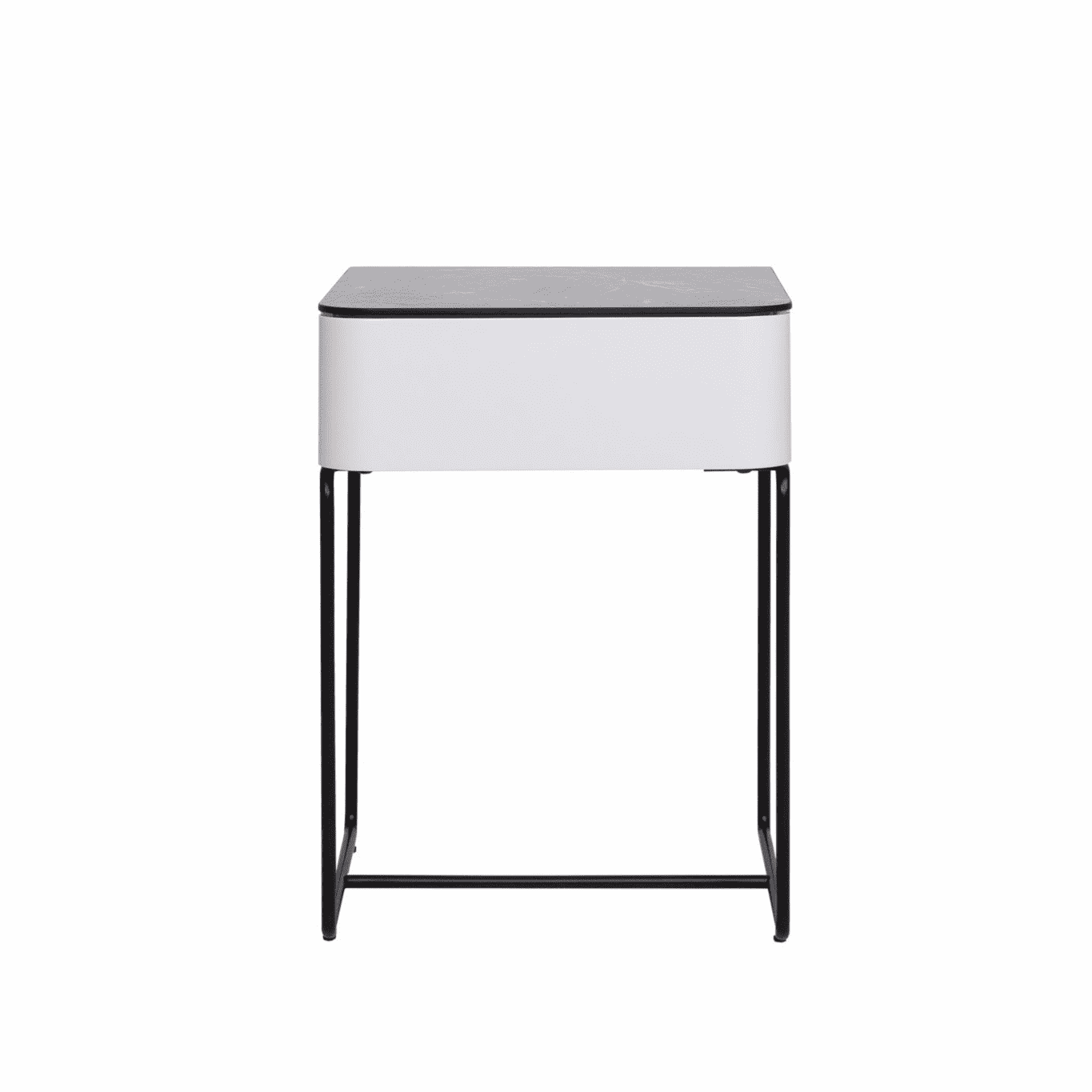 Enhance your bedroom with the sleek and modern Newham blackbedside cabinet Combining elegance and functionality this piece is designed to complement any contemporary interior White Ceramic Top Offers a luxurious and durable surface Matt Black Body Provides a sophisticated and stylish appearance Black Metal Legs Ensures sturdy support and adds an industrial touch Compact and Functional Perfect for storing your essentials within easy reach Modern Design Blends seamlessly with various decor styles.