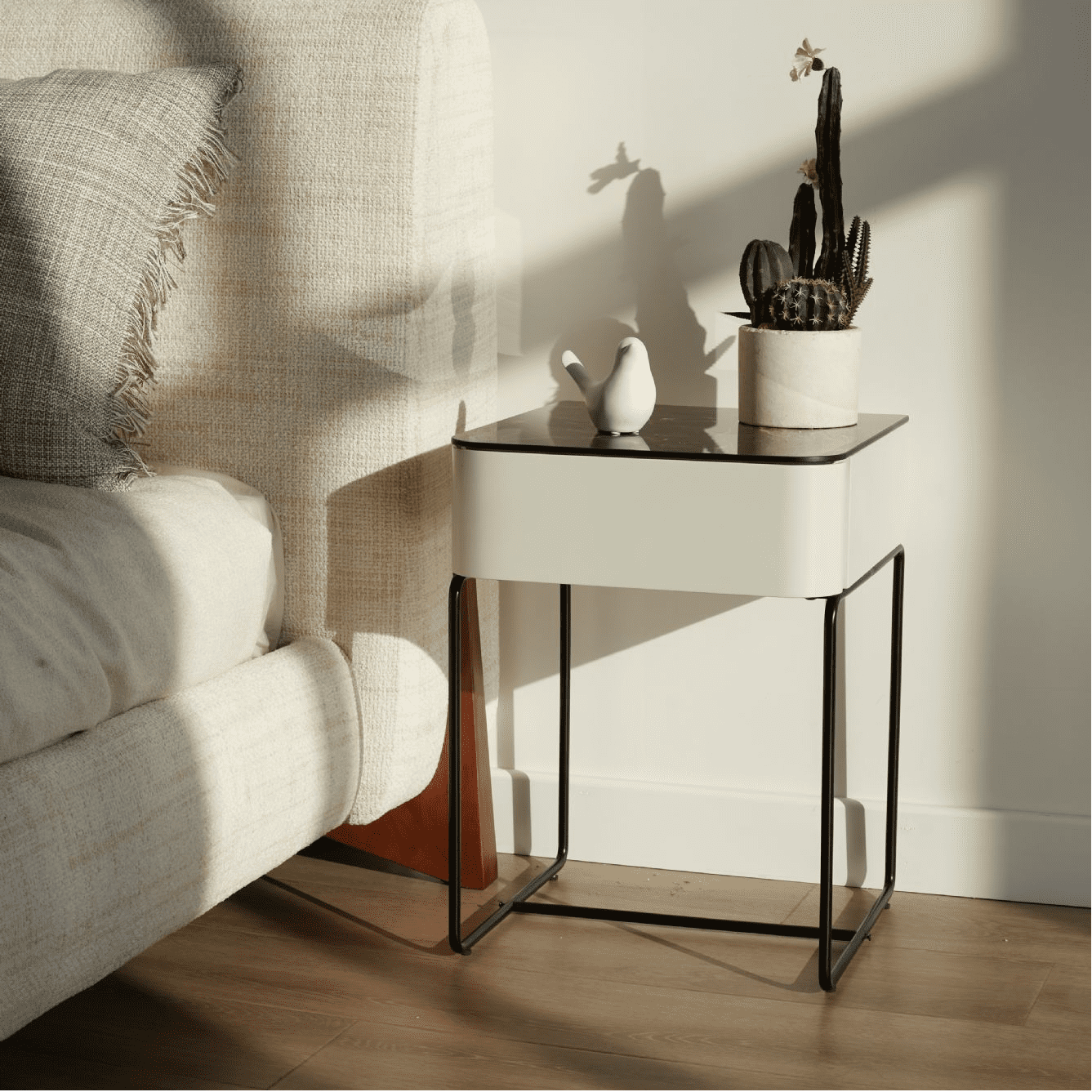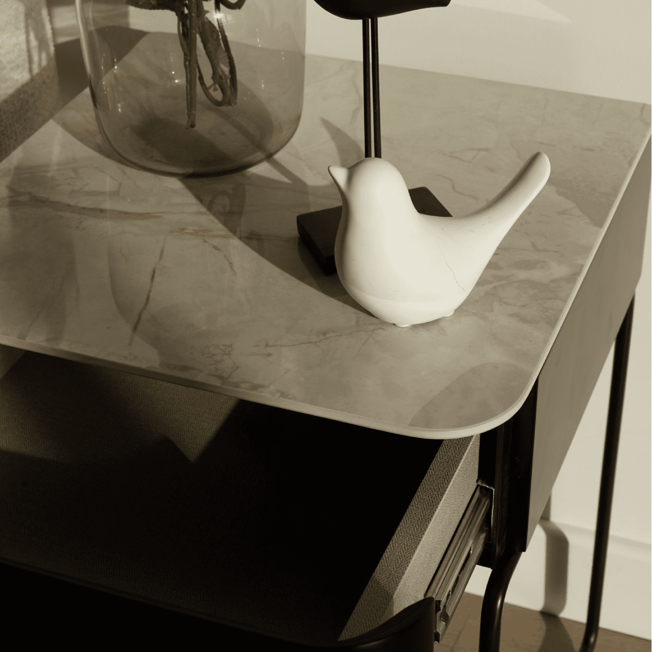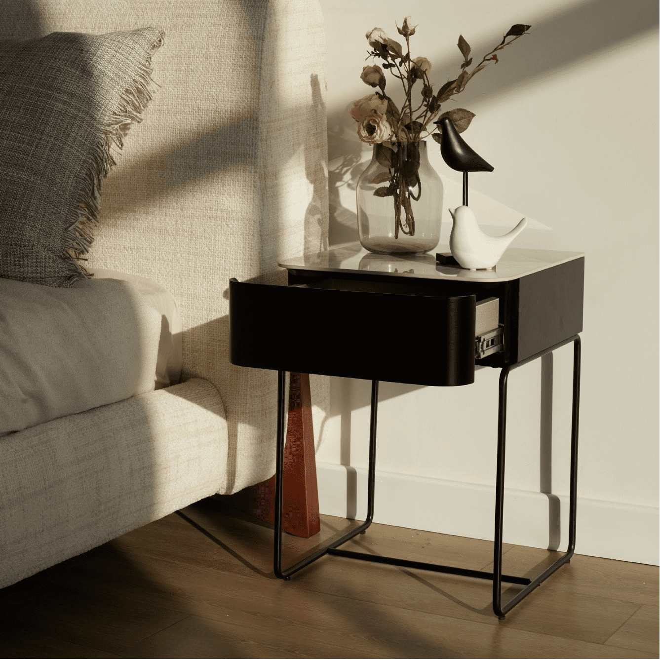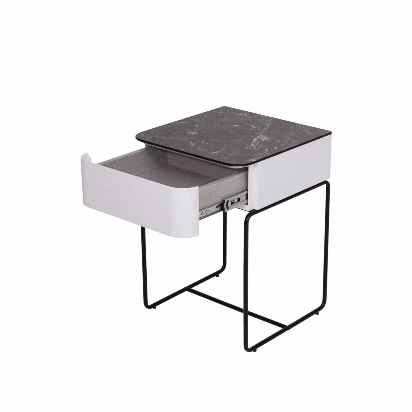 Enhance your bedroom with the sleek and modern Newham blackbedside cabinet Combining elegance and functionality this piece is designed to complement any contemporary interior White Ceramic Top Offers a luxurious and durable surface Matt Black Body Provides a sophisticated and stylish appearance Black Metal Legs Ensures sturdy support and adds an industrial touch Compact and Functional Perfect for storing your essentials within easy reach Modern Design Blends seamlessly with various decor styles.