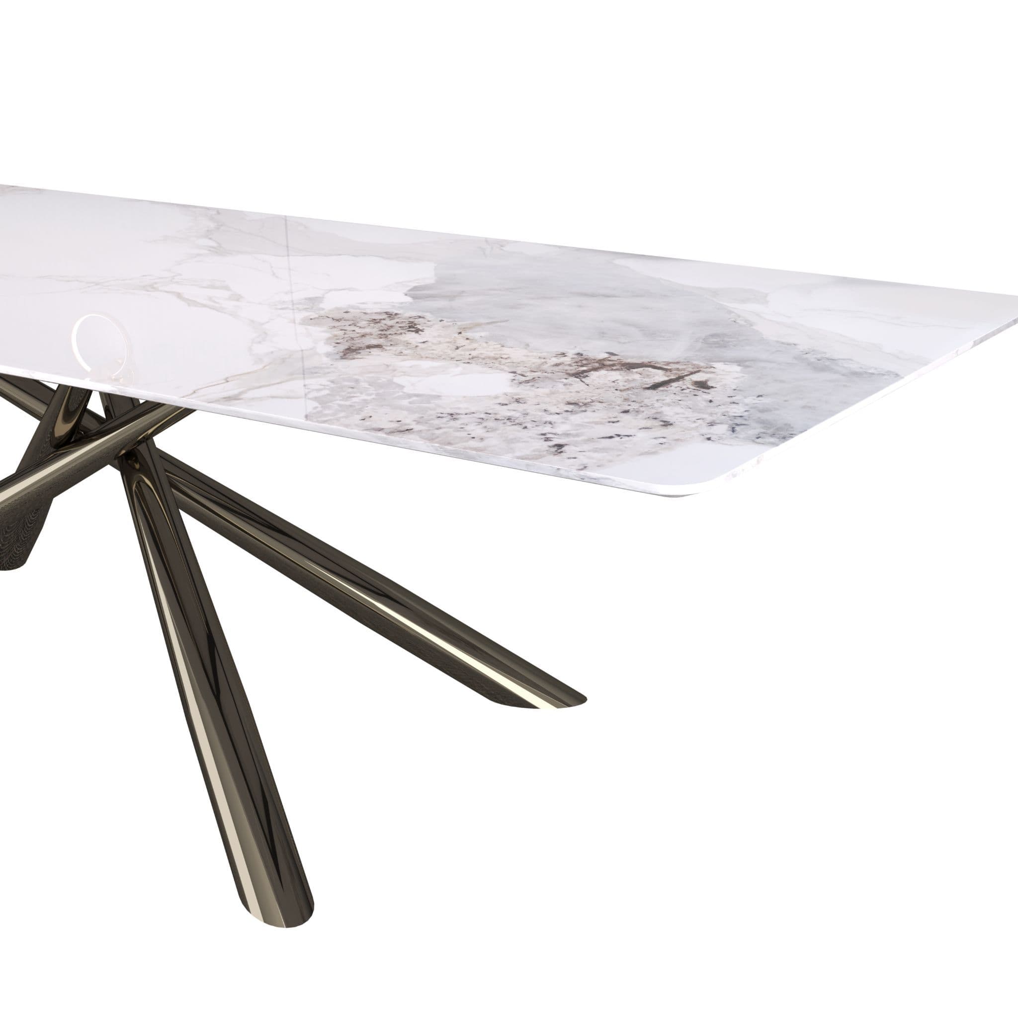 Sturdy sintered stone table top Exquisite solid black metal base Sleek modern design that adds a touch of luxury to the living room Built to last crafted with high quality materials and expert craftsmanship Please note the net weight for this table is 100kg As the table size exceeds the pallet limitation the number 150kg is used to help the system make the right charge for the oversized pallet service.