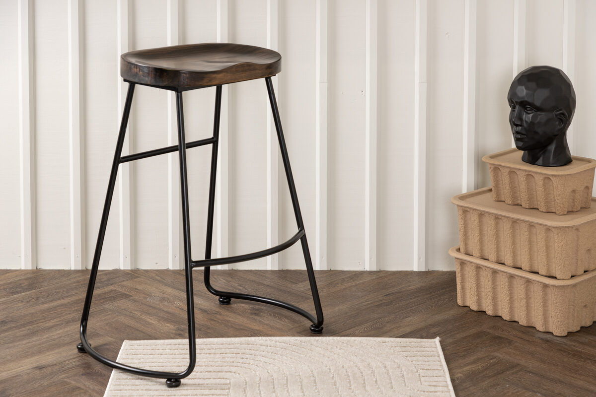 With the Ozark bar stool from Venture Home, you can be sure to be completely in line with the trends! The chair has a classic design with a seat made of dark wood, shaped to be as comfortable as possible. The black steel undercarriage is stable and has a footrest, perfect when sitting a little higher up. Place at the bar table for extra seating when you have guests over or why not at the kitchen for company when cooking. With this bar stool, comfort and style are combined!