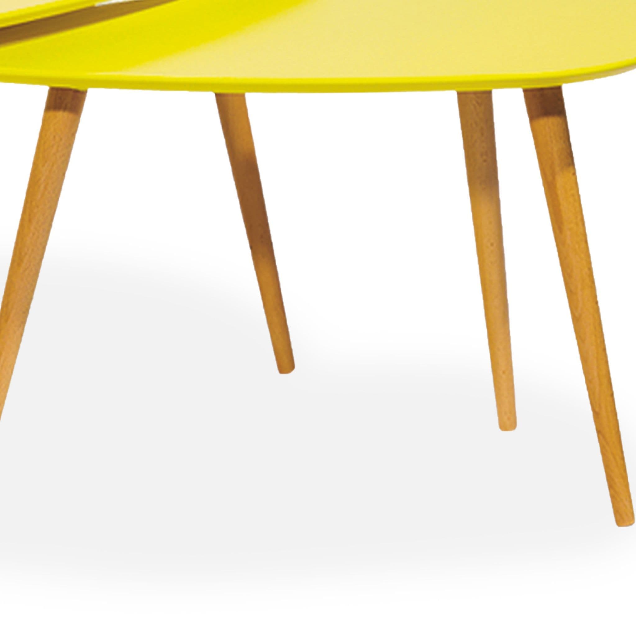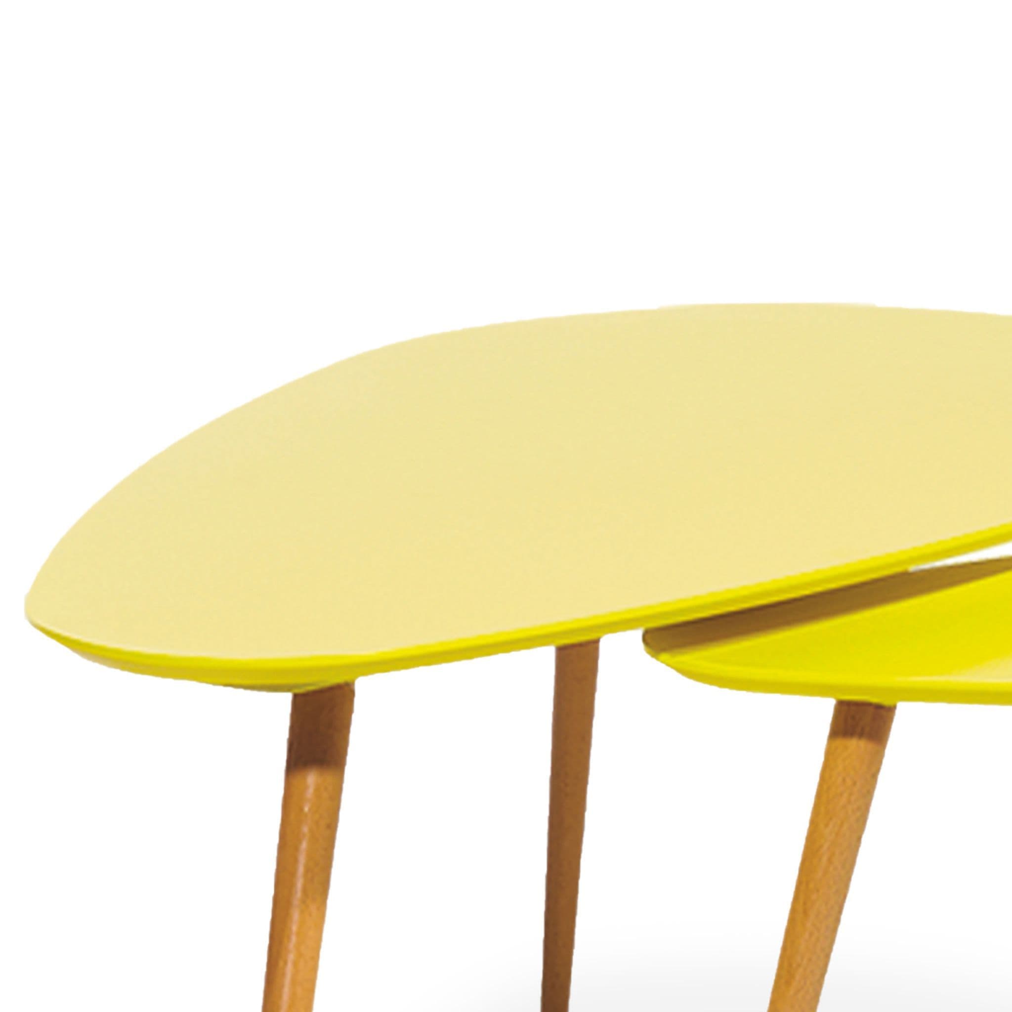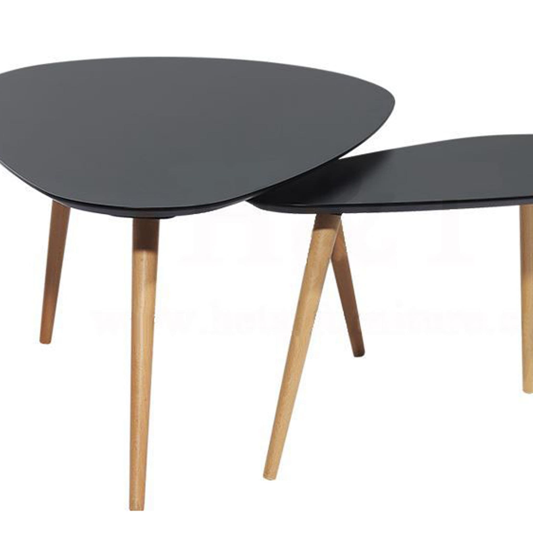 The Petal Nesting Coffee Table Set is a versatile two-piece set. Each table features a smooth triangular top in your choice of all-white or solid black. The tops are made from durable matte-gloss MDF, and each table stands on three premium beech-wood legs.