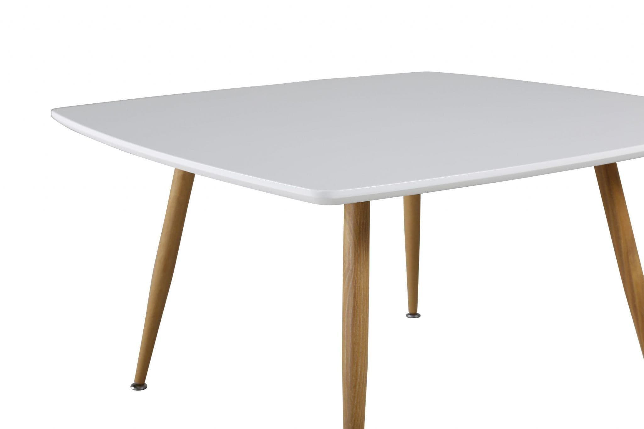 With Plaza, you get a timeless coffee table in clean colors! The table features a white MDF tabletop and legs made of metal. The wood – colored legs provide a warm impression and nicely complement the white tabletop. The simple and airy design offers the opportunity to enhance the interior with decorations to place on the coffee table.
