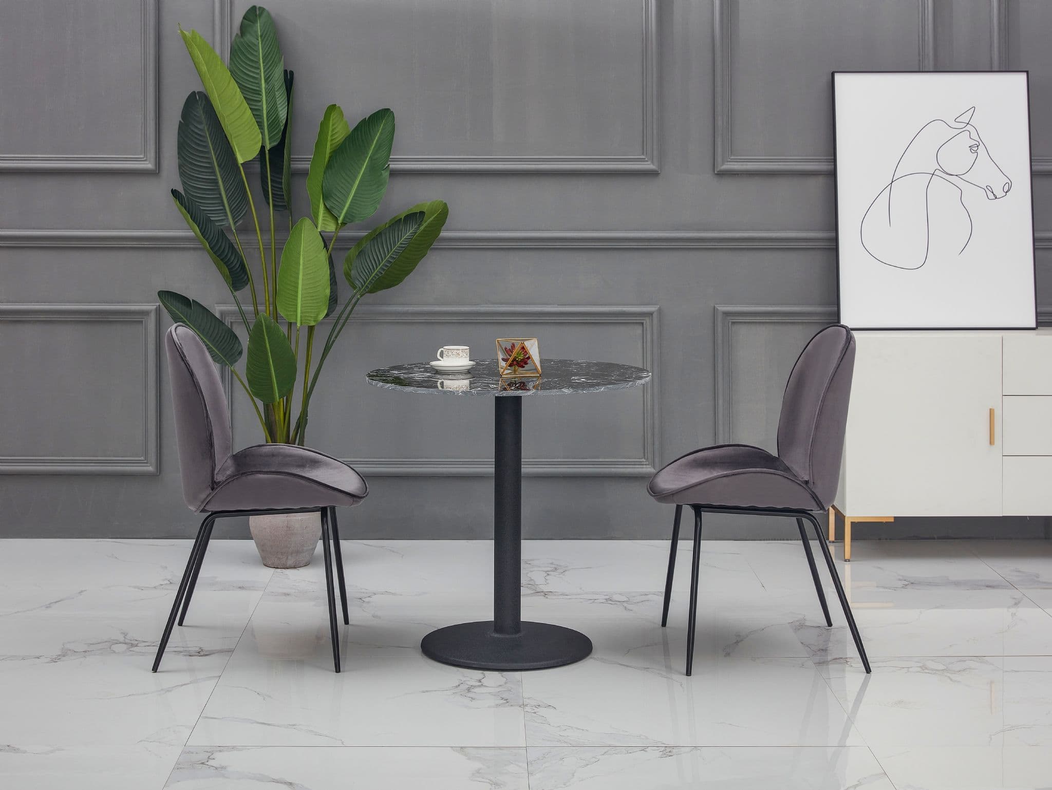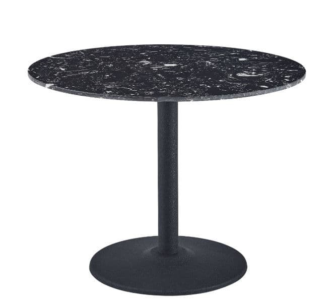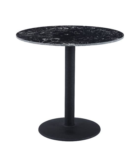 This sleek and sophisticated piece is sure to impress The design conception was modelled after the Belgian Black and its extraordinary aesthetic With a supremely crafted engineered marble top this table echoes superior character Each highly polished table top comes with a singular table leg available in black or gold The wide sturdy base completes the composition These truly interchangeable tables are a delightful addition to any room Diameter 100cm Height 75cm.
