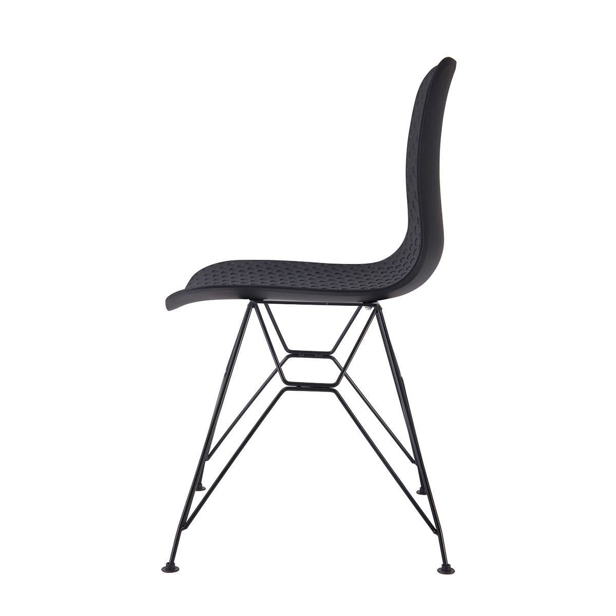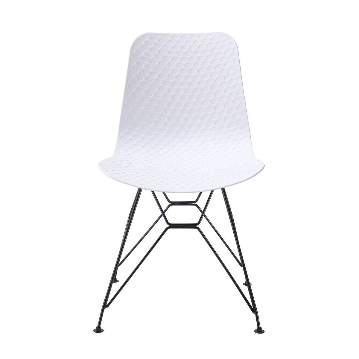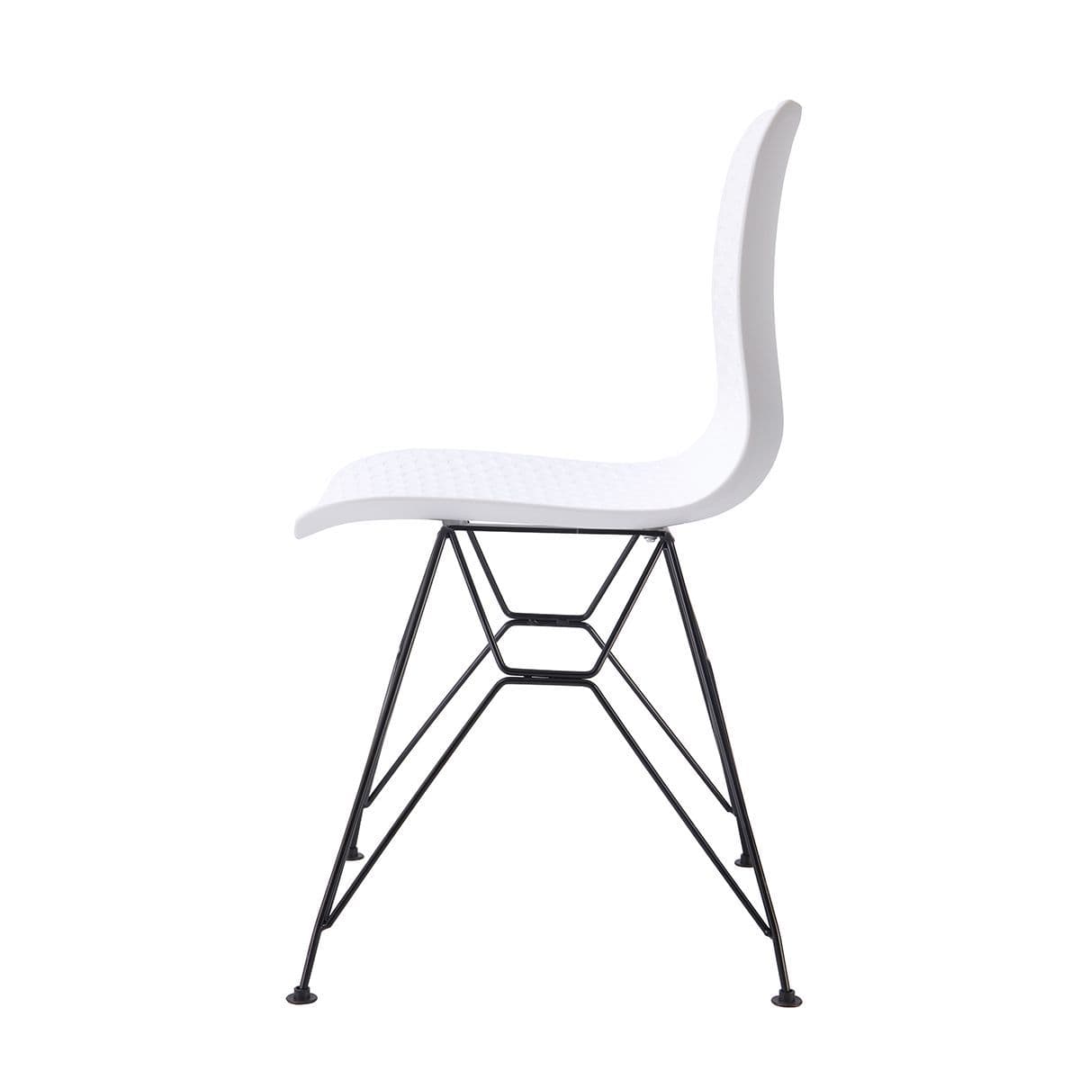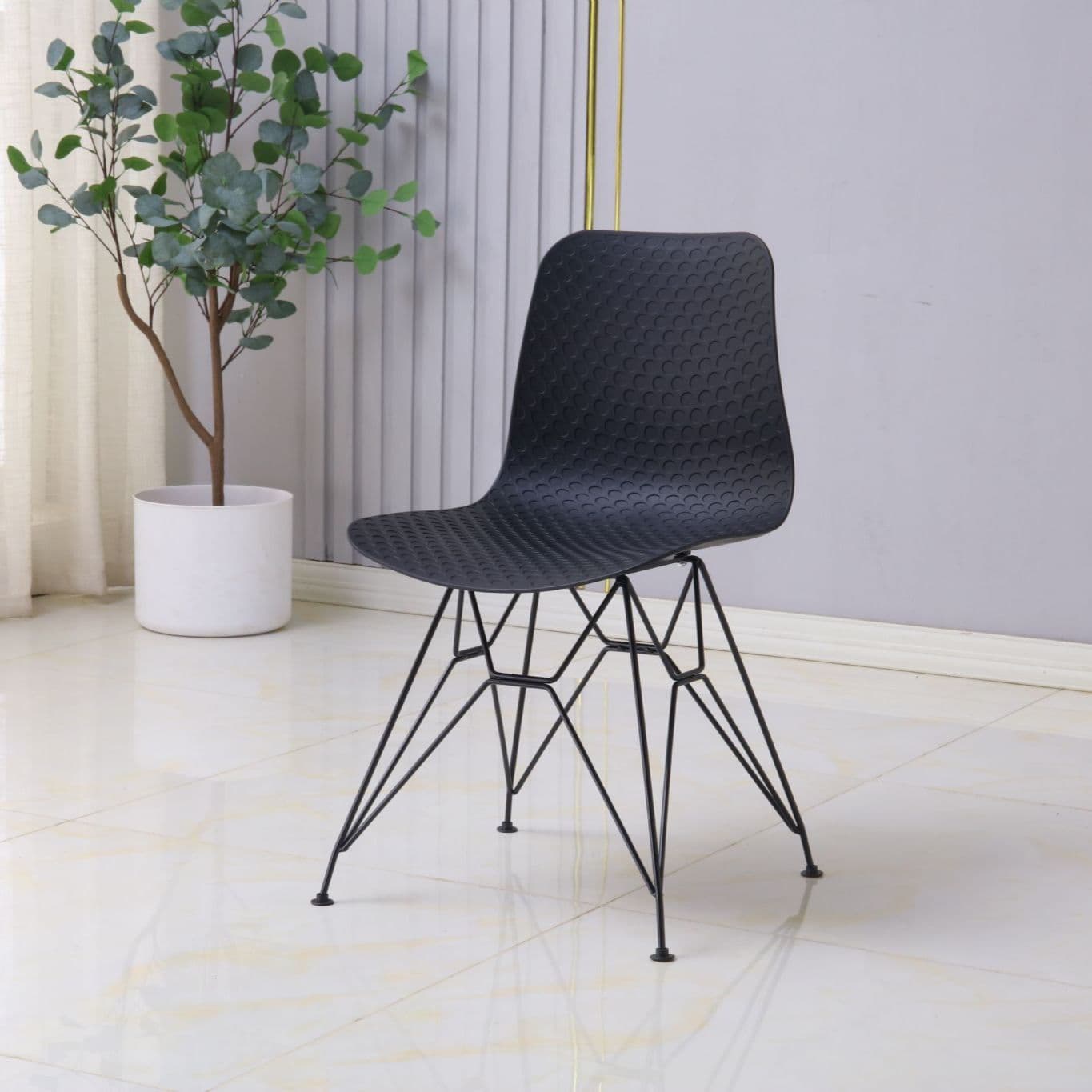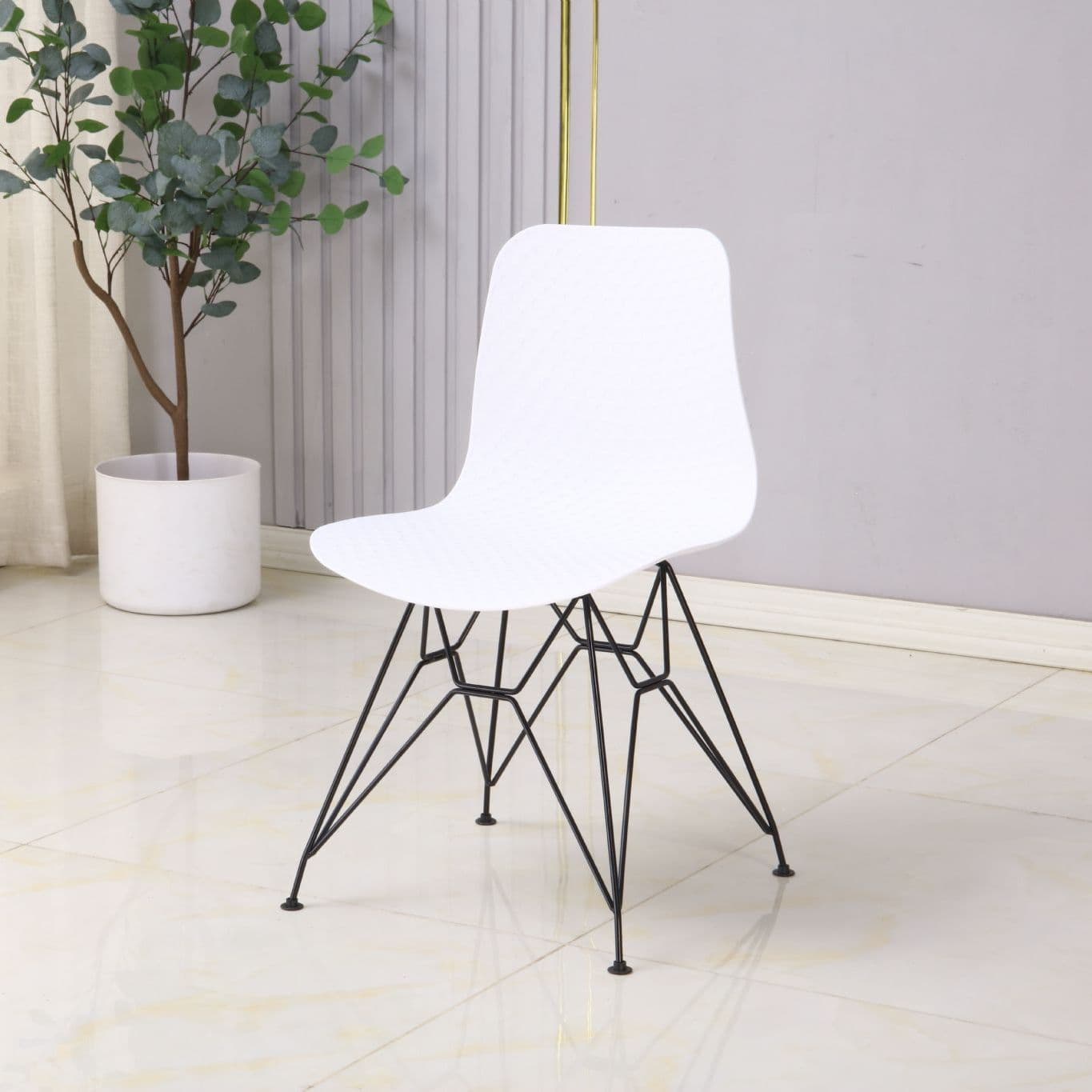 Versatile Modern Design The textured pattern adds a unique touch and texture to the chairs aesthetic enhancing its visual appeal while also providing a tactile dimension to the design Perfect for any modern interior these chairs boast a simple yet ergonomic design tailored for comfort ideal for extended office hours or casual dining Sturdy Construction Eiffel style base is crafted with sturdy metal frame ensuring exceptional support and durability Rubber protection feet are incorporated to safeguard floors while supporting the polypropylene seat Easy Maintenance The chairs easy to clean surface ensures it maintains its contemporary appeal even after extended use making upkeep hassle free Colour Options Available in sleek Black and White variations to suit different interior styles and preferences.