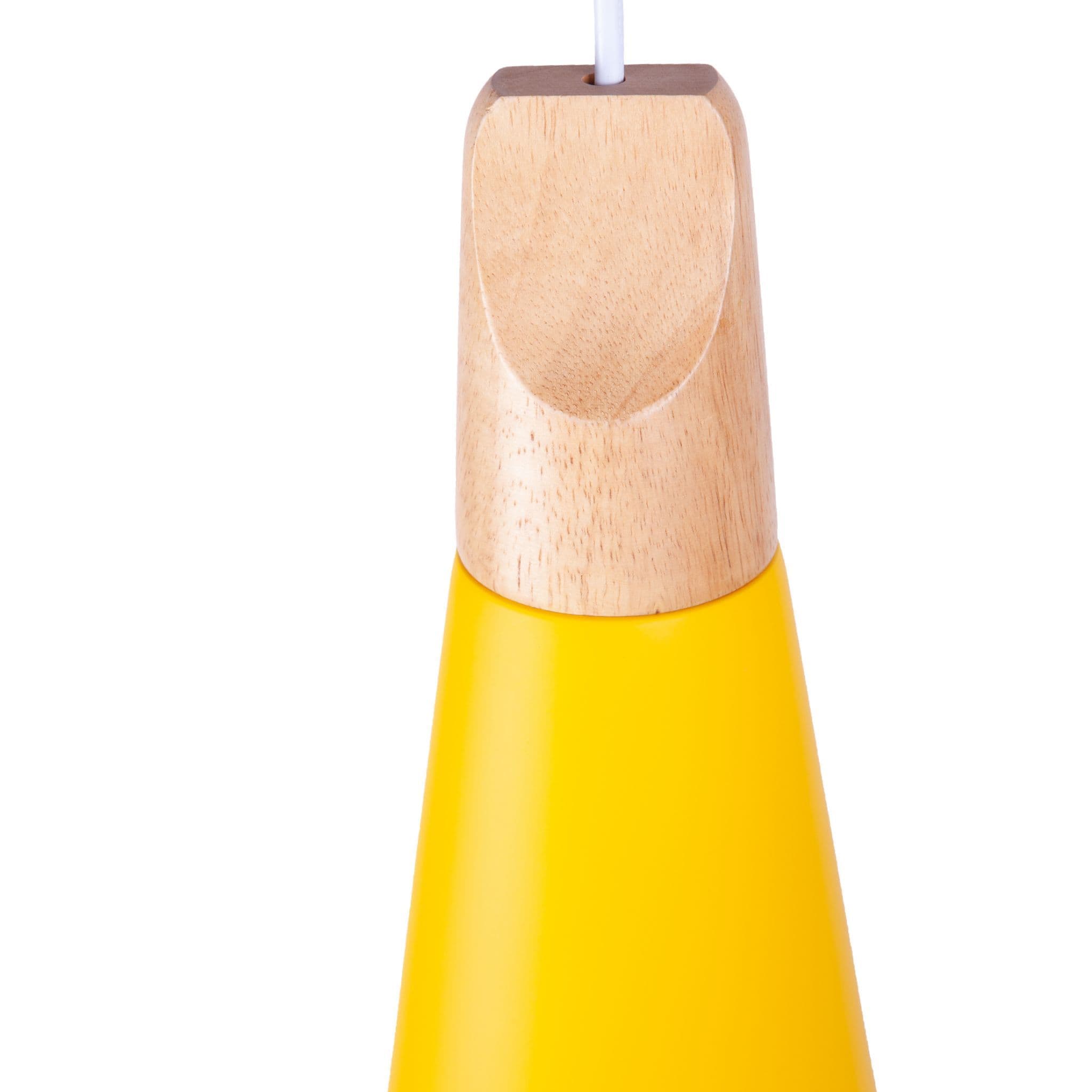 This minimalist pendant light is a perfect accent piece for any living room, bedroom, kitchen or dining room. Inspired by Scandinavian design this simple pendant will compliment any contemporary environment, abailable in white, grey and yellow. The cone shape is topped with a wooden detail and illuminated your interiors with a warm glow. Instantly upgrade your home with Liniear, clean and modern Mmilo Design. Voltage: 110-240 VBulb not included Cord Length- 120(cm).