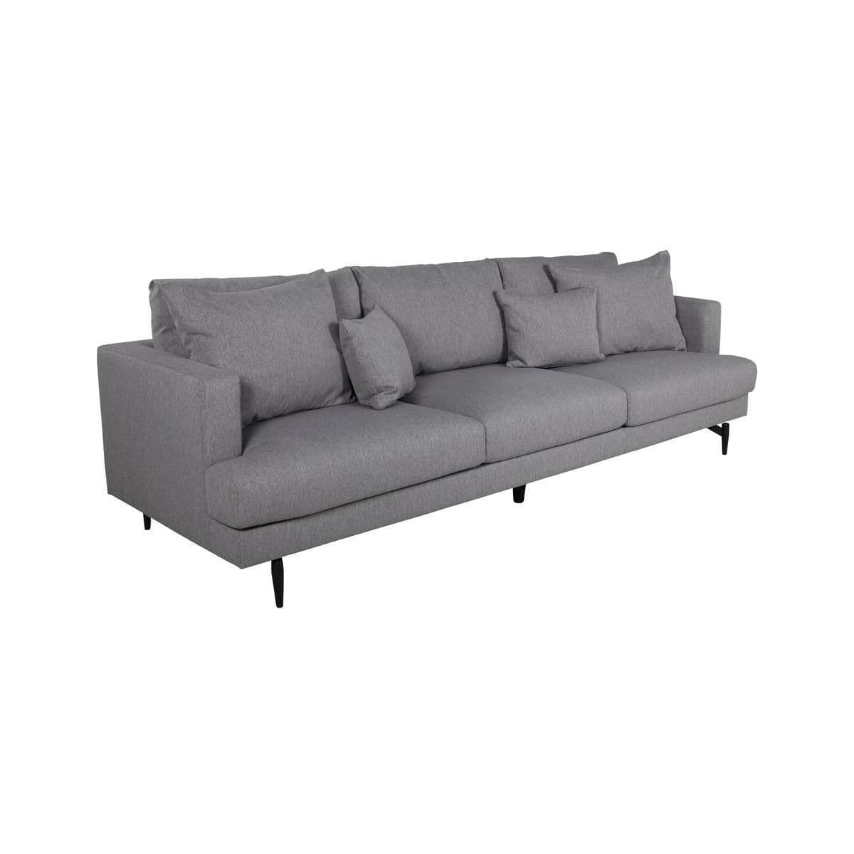 Decorate the living room stylishly, invitingly, and charmingly with a 3-seat sofa from the Sofia series! This gray sofa dream combines an elegant design language and straight Nordic design with a charming impression that creates an inviting eye-catcher. The narrow metal legs give the sofa a smart, decorative lift that enables easy vacuuming underneath. Make time for relaxation get cozy with the family or stretch out alone! Care advice: Make sure your furniture is not in direct sunlight. Use textile spray to impregnate the textile before you start using it; it will also make any dirt and stains easier to remove in the future. Remove stains right away; do not rub, but try to gently soak up with a cloth.