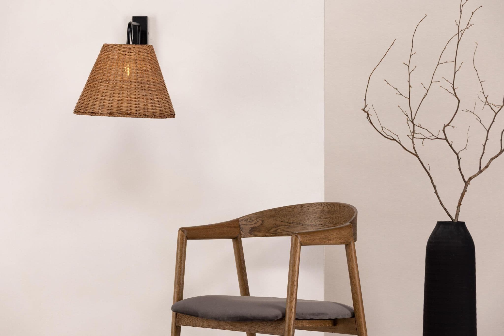 Create a warm and cozy feel in the room with the wall lamp Stala! The lamp has a stylish black bracket in iron and a lampshade in natural colored rattan. With this lamp you can be sure to be fully in line with the trends. The down – to – earth colors and pleasant light create a calm expression that makes this lamp perfect to place next to the bed in the bedroom for tonight’s reading times. The lamp belongs to wind. During installation: A so – called fixed installation is required, which may only be carried out by an electrician.