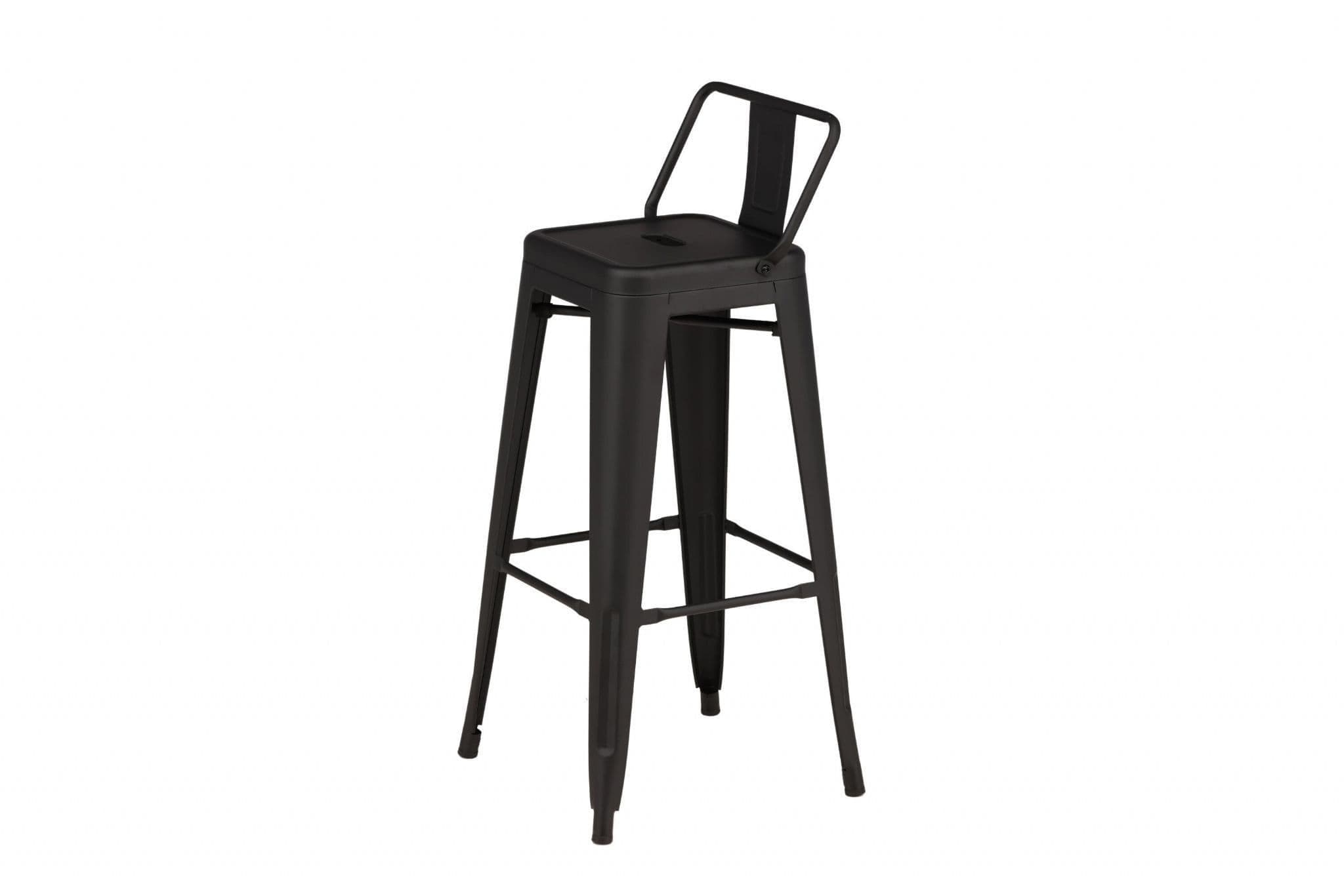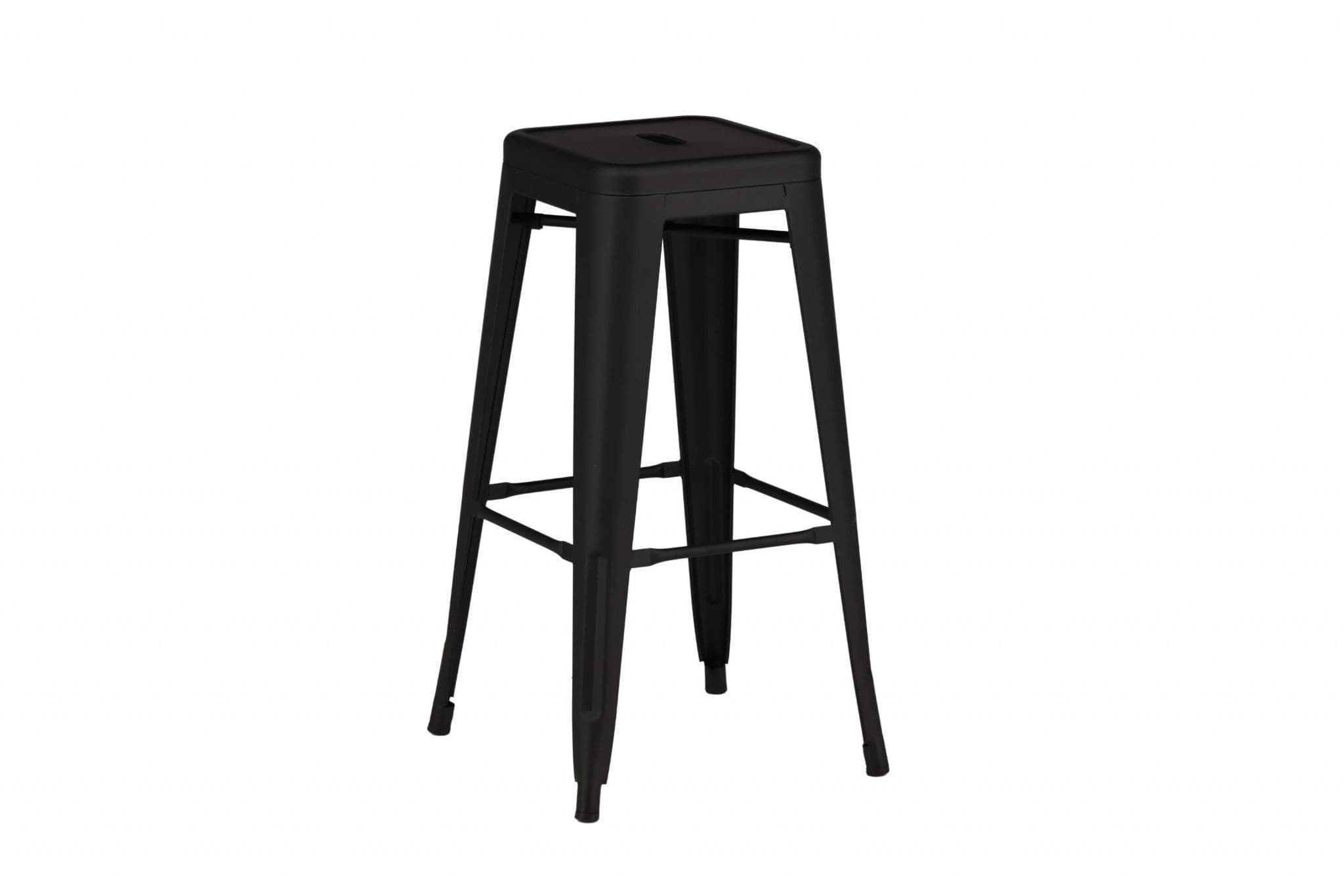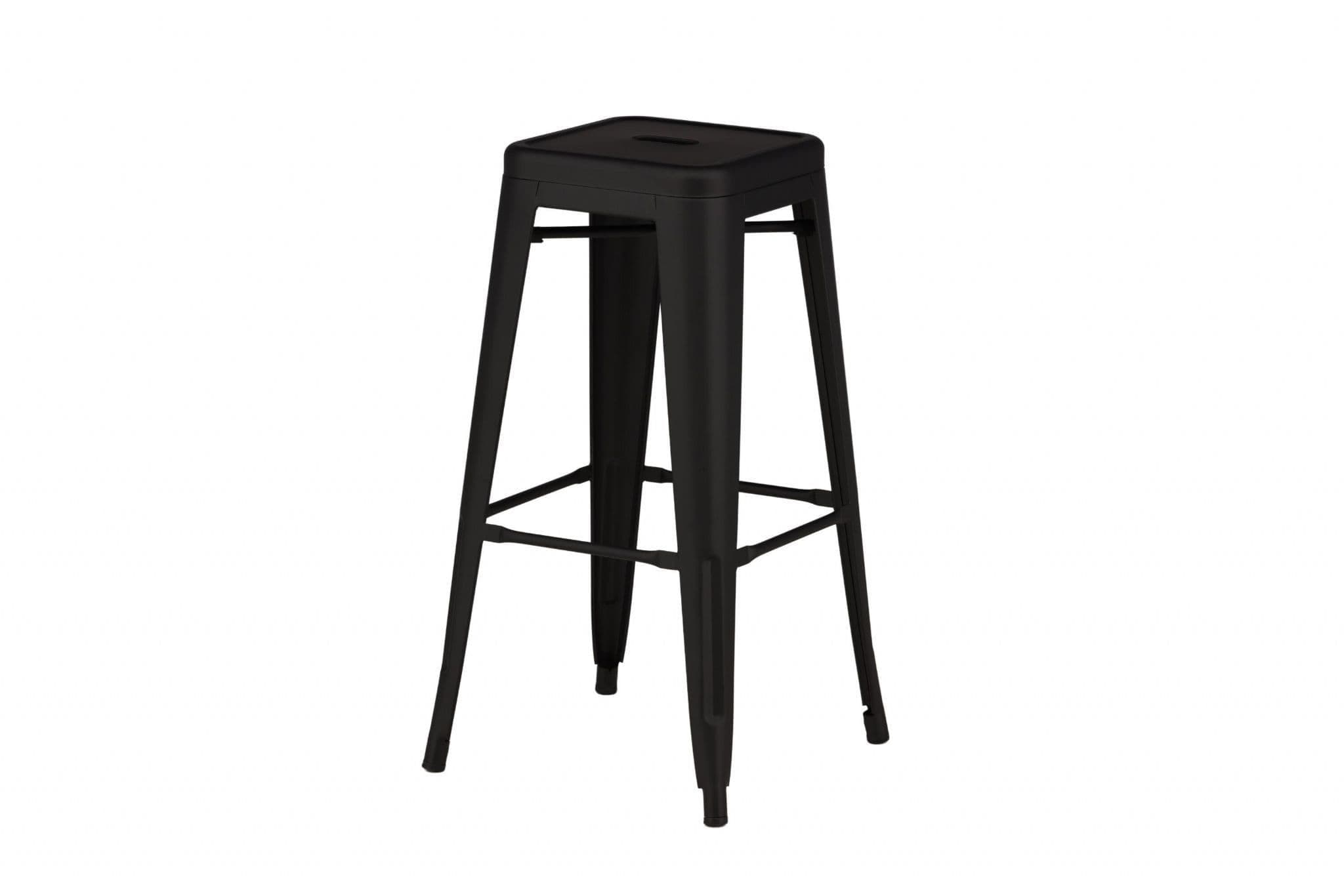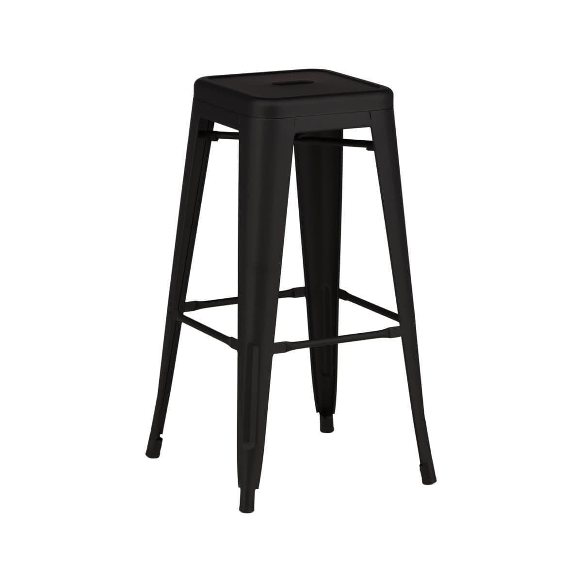 Tempe barstool (Deep Grey), 4-pack: classic high-stool silhouette with lightly flared legs and footrest frame; durable dark-grey steel. Ideal for open-plan kitchens or high dining tables.